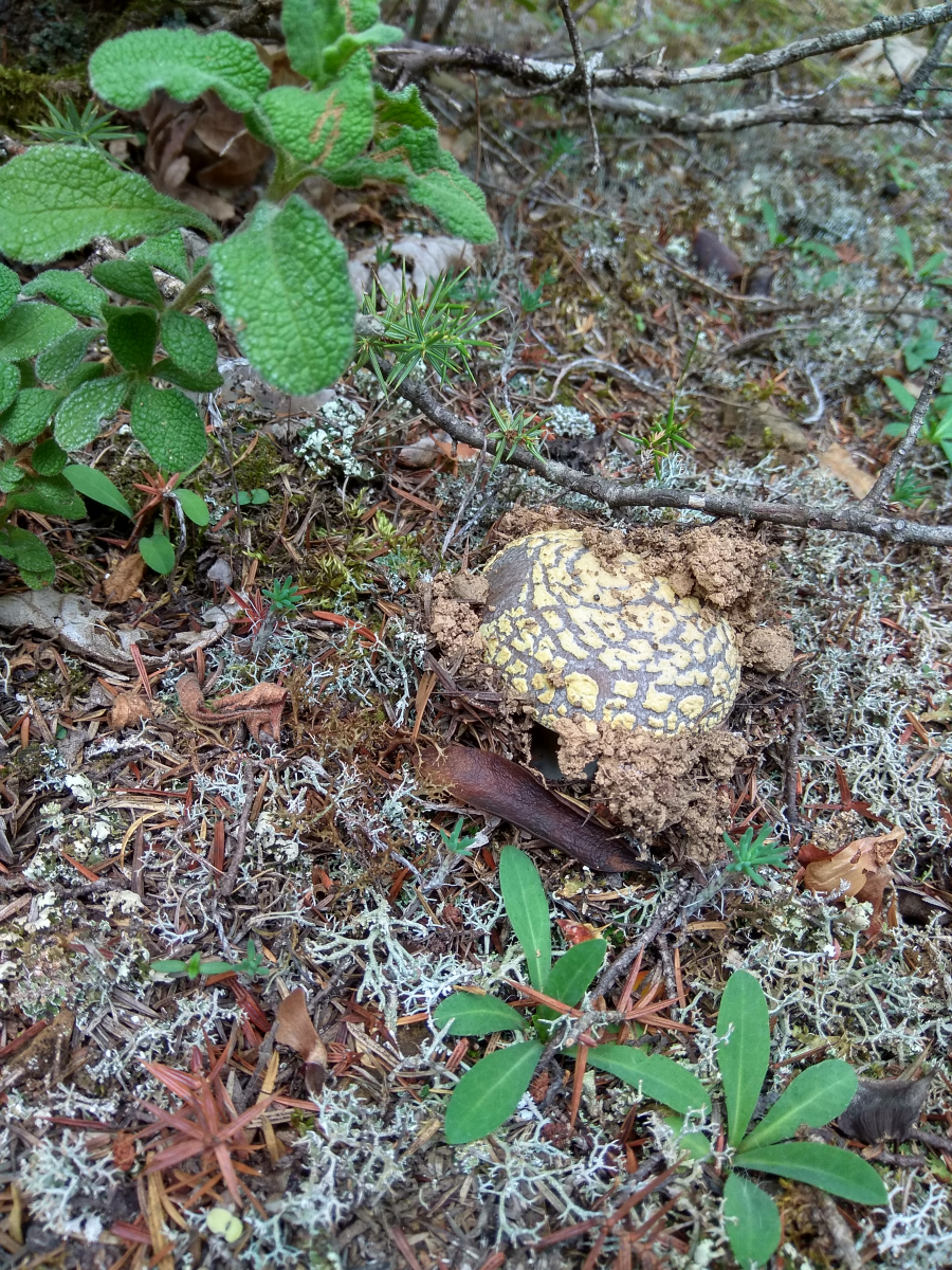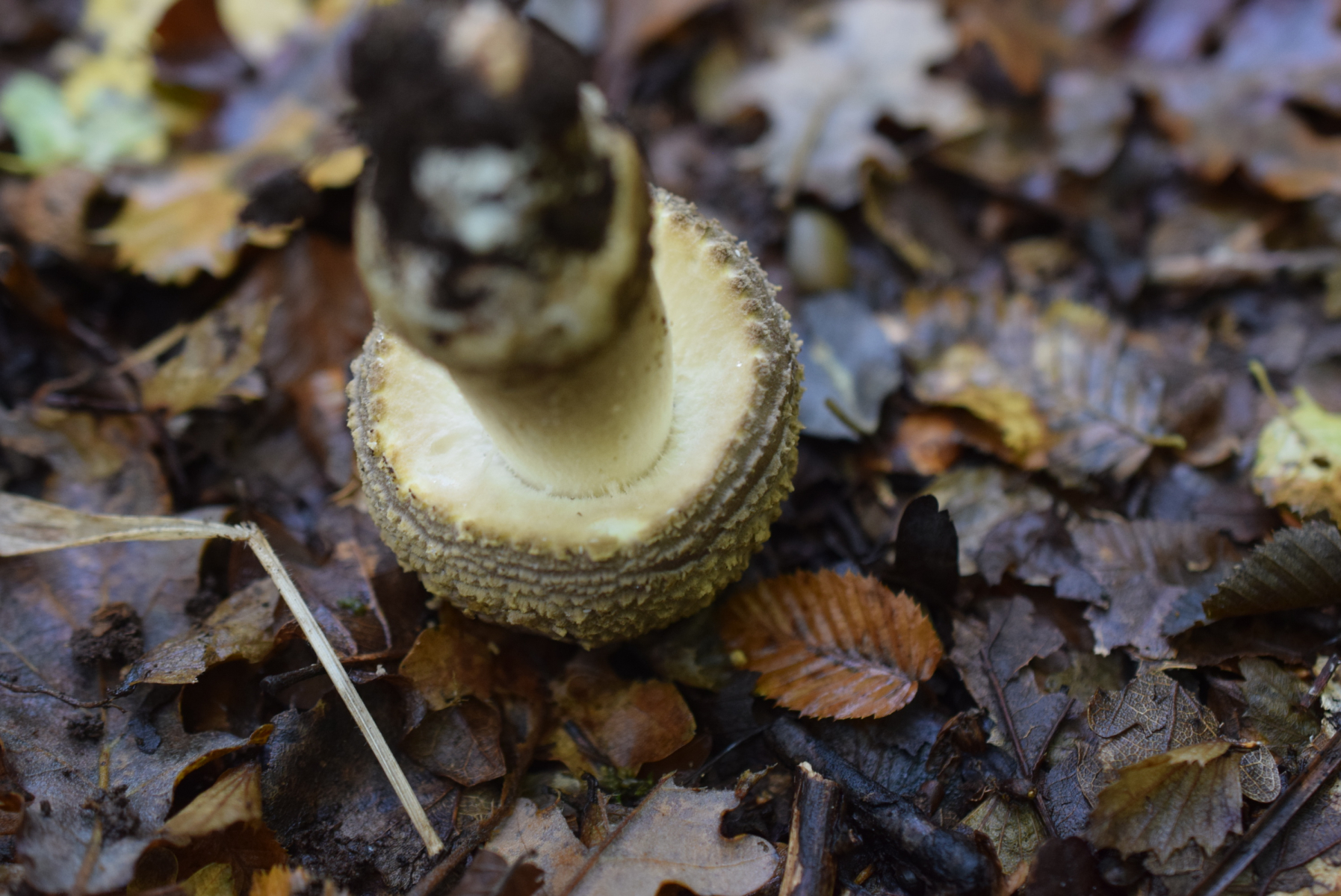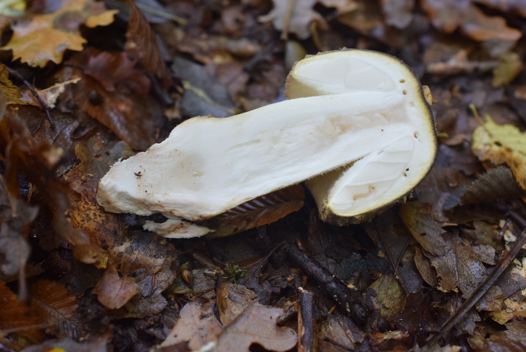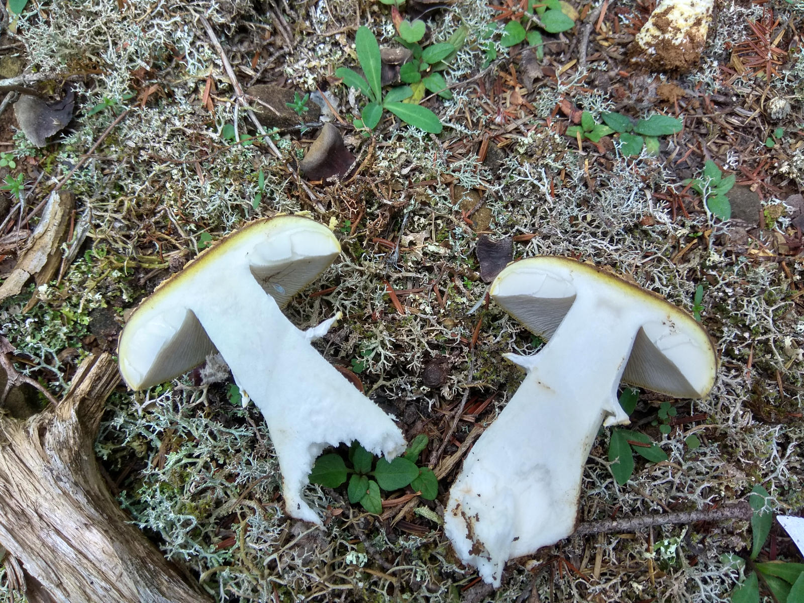 Die gelbliche Farbe unter der Huthaut im Schnitt ist bemerkenswert. Das wäre eigentlich ein Merkmal für Amanita regalis, aber dein Fud sieht ansonsten doch so gar nicht danach aus, und auch die Ökologie passt doch nicht dazu?