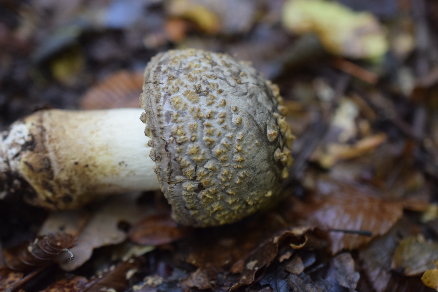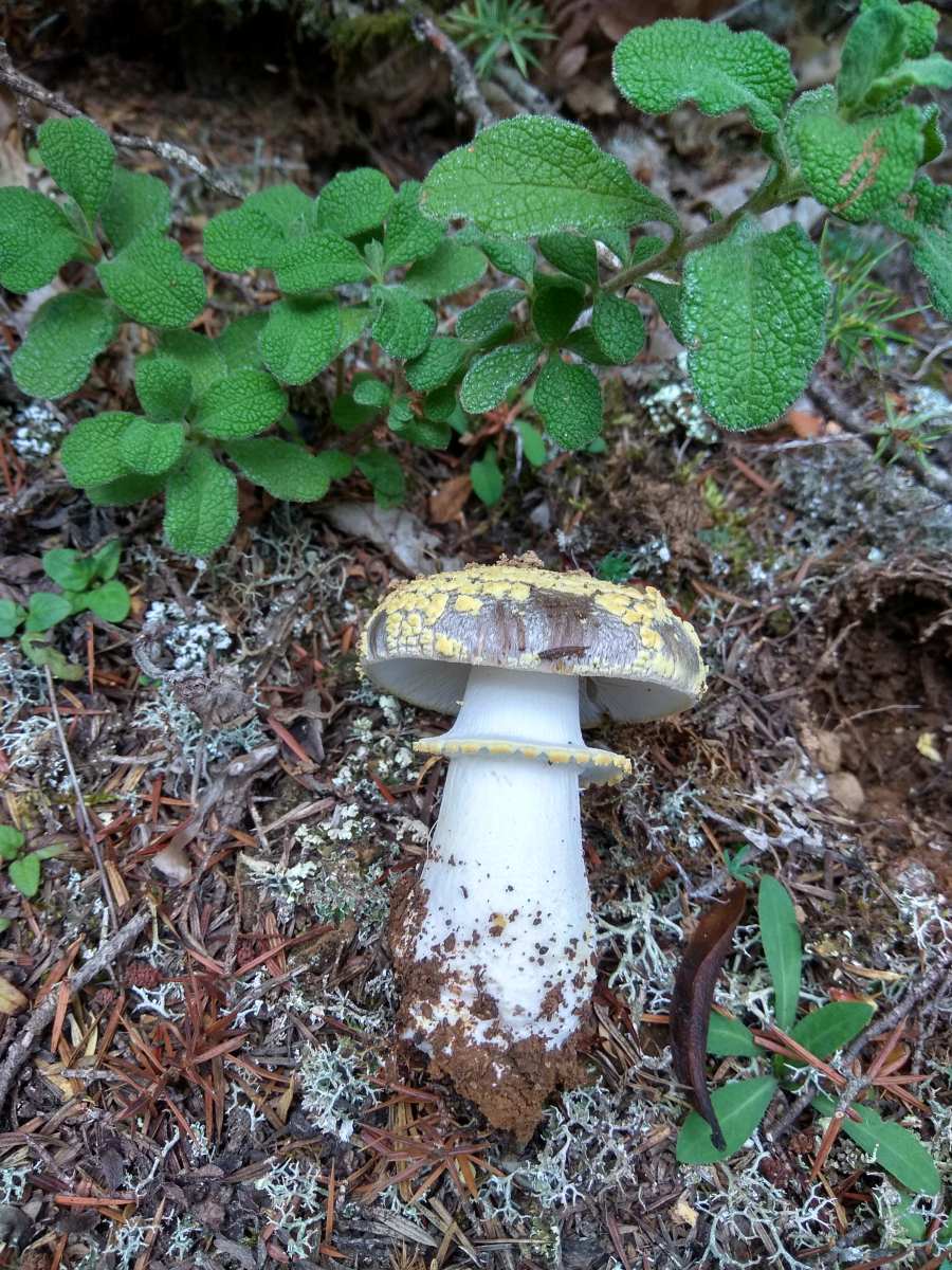Hut mit dunkelblautöne . Hat etwas gelbliche schuppen wie bei Amanita franchetii aber meine das um ein andere Art gehet . Hab mehrere mall A. franchetii gefunden .