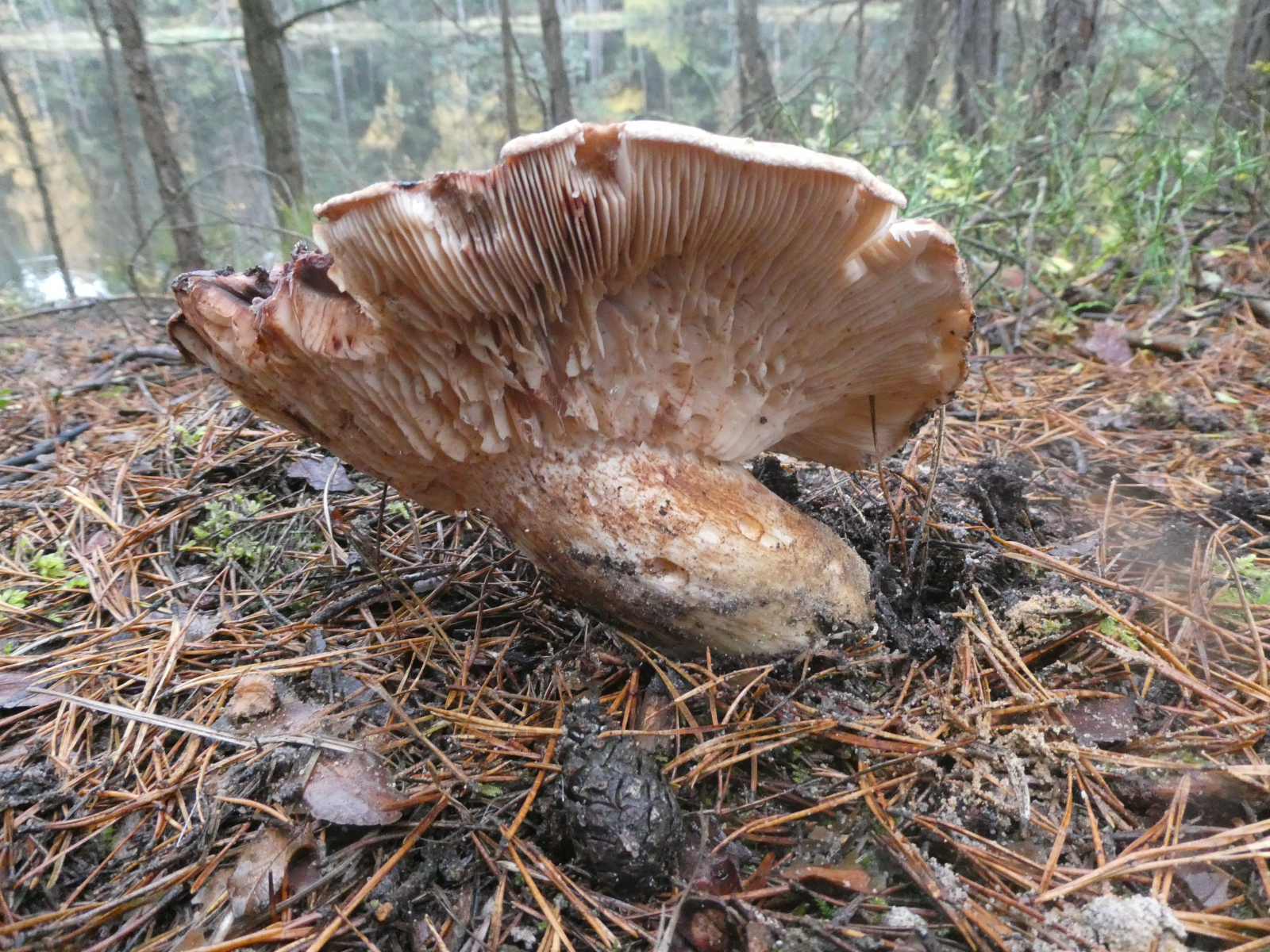 ich war unterwegs in einem Oberpfälzer Sandkiefernwald. Der Boden war offen und nicht wie sonst durch Überdüngung von dichtem Moos bedeckt. Am Ufer eines Teiches fanden sich neben Korkstachelingen diese Ritterlinge: