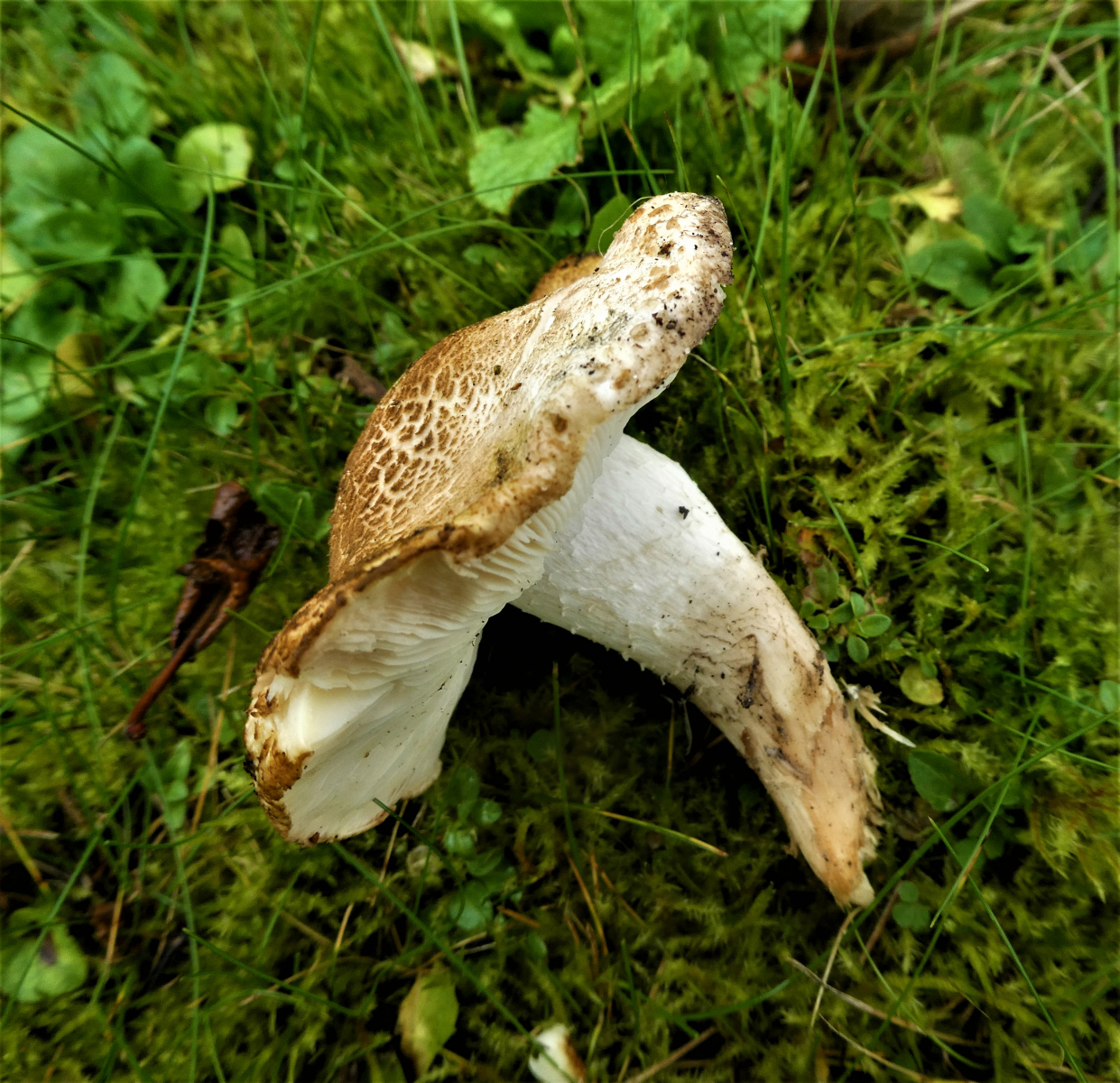 In der Nähe dann, tief in den Boden eingegraben, ein Riesenritterling.