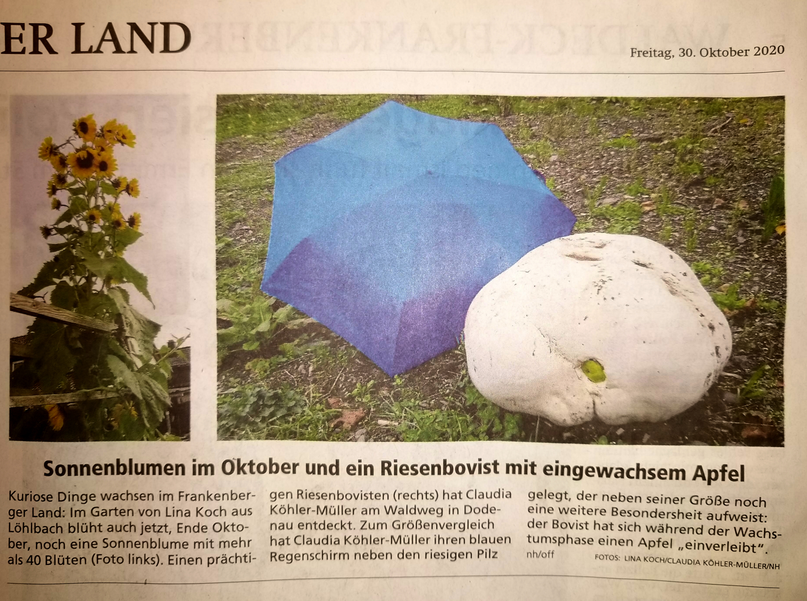 Und was sehe ich heute? Fund eines Riesenbovisten mit eingewachsenem Apfel!