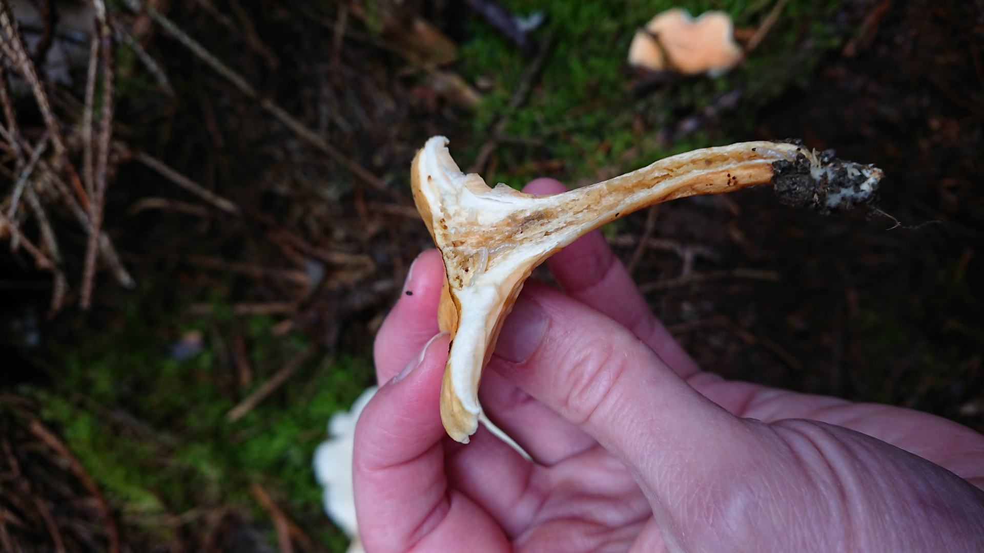 3. Echter oder falscher Pfifferling? ich meine, Lamellen zu sehen, also wohl eher der falsche. Ich hatte noch nie die Gelegenheit, beide direkt nebeneinander zu vergleichen, deshalb fühle ich mich da immer noch unsicher.