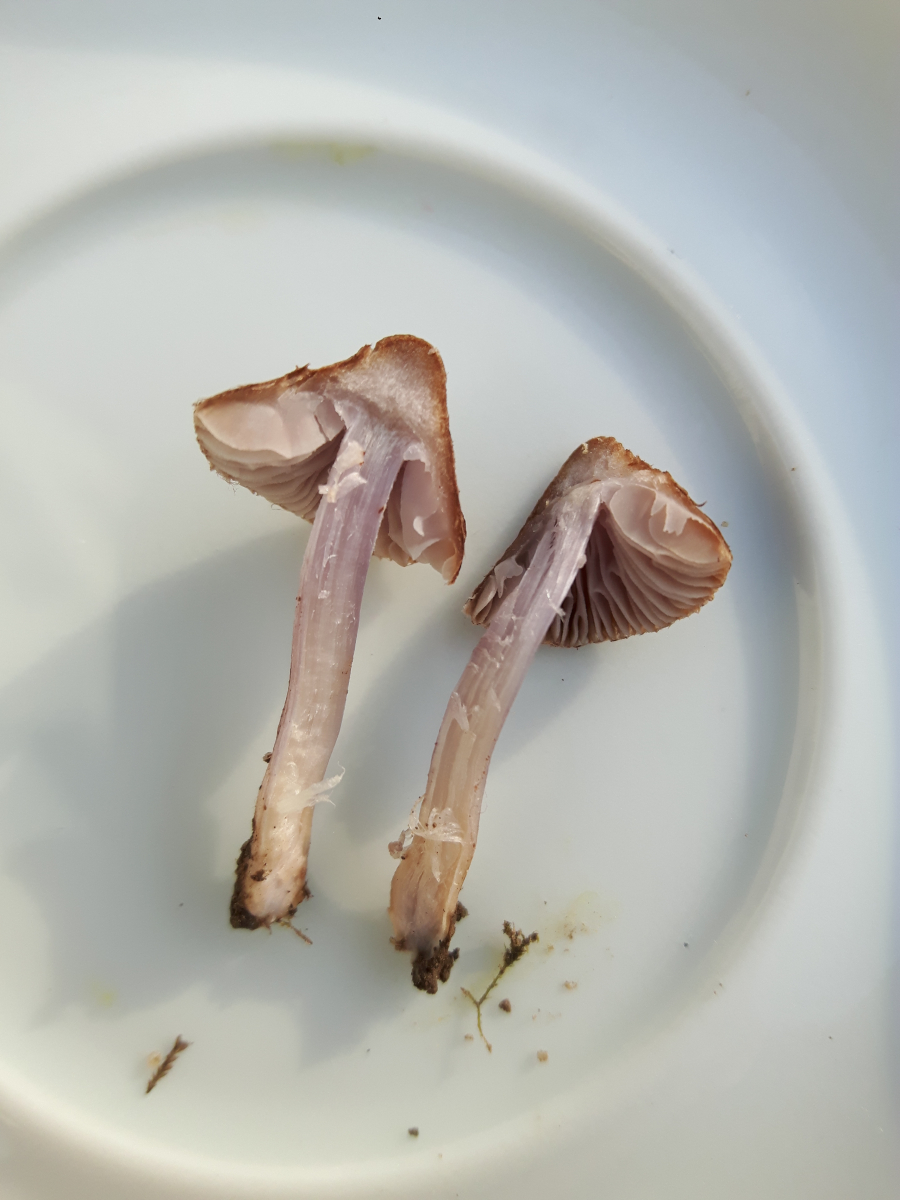 Sie haben einen leicht lila Stiel, Hutbreite 1 bis 5 cm, riecht nach etwas - spermatisch?