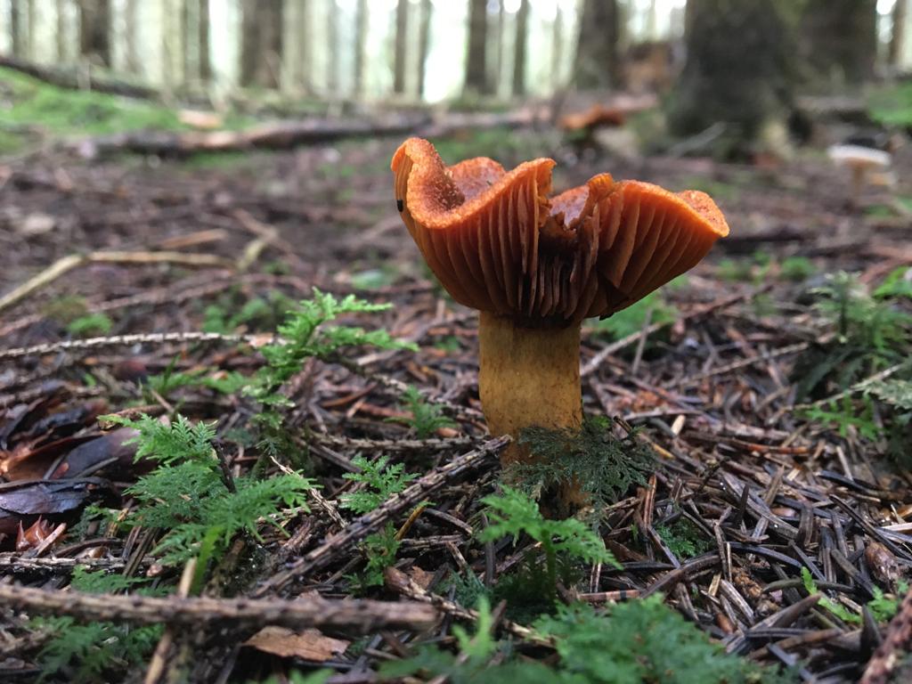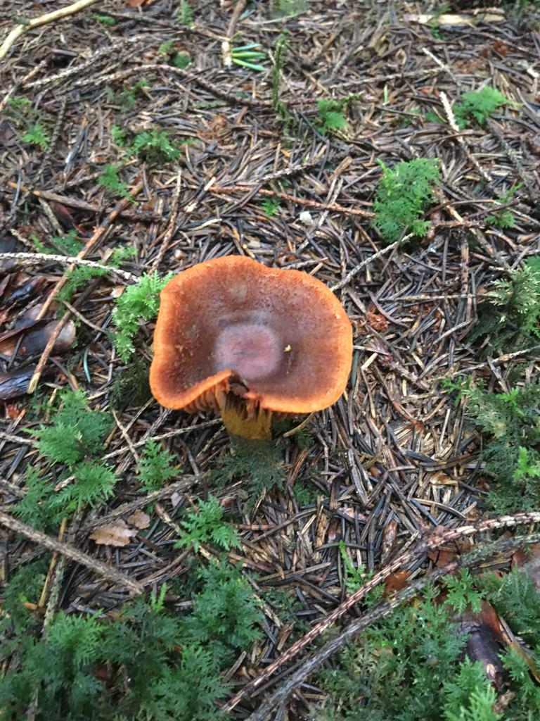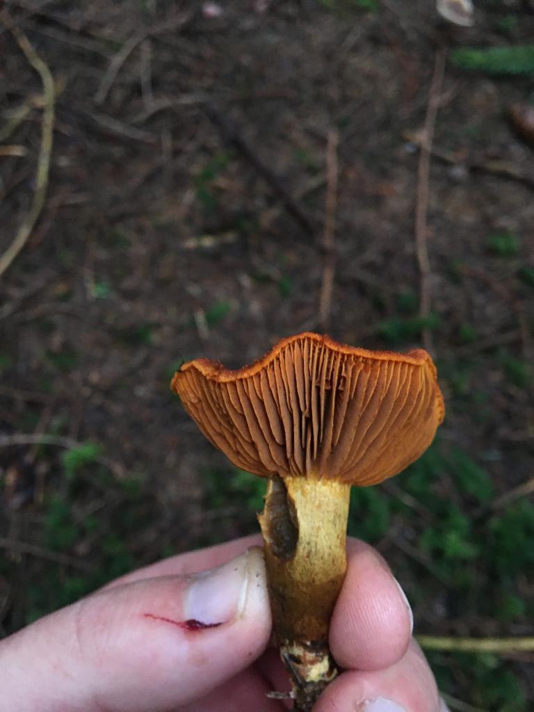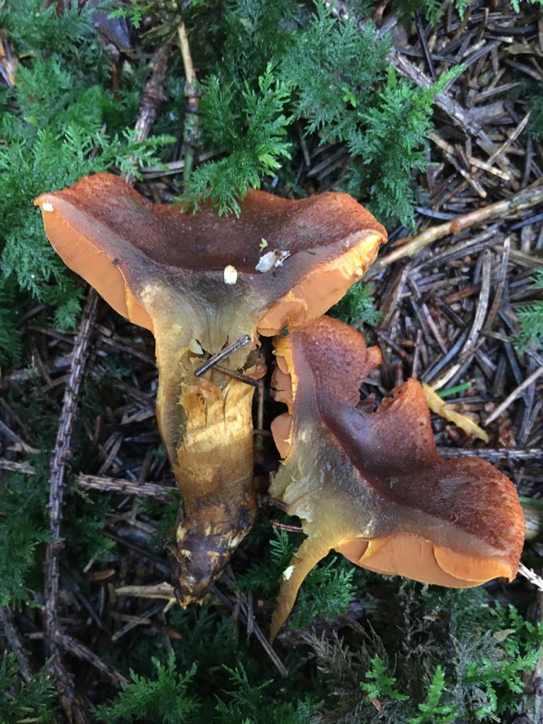 Jung sind die Lamellen leuchtend Orange, das Stielfleisch im Schnitt aber Oliv