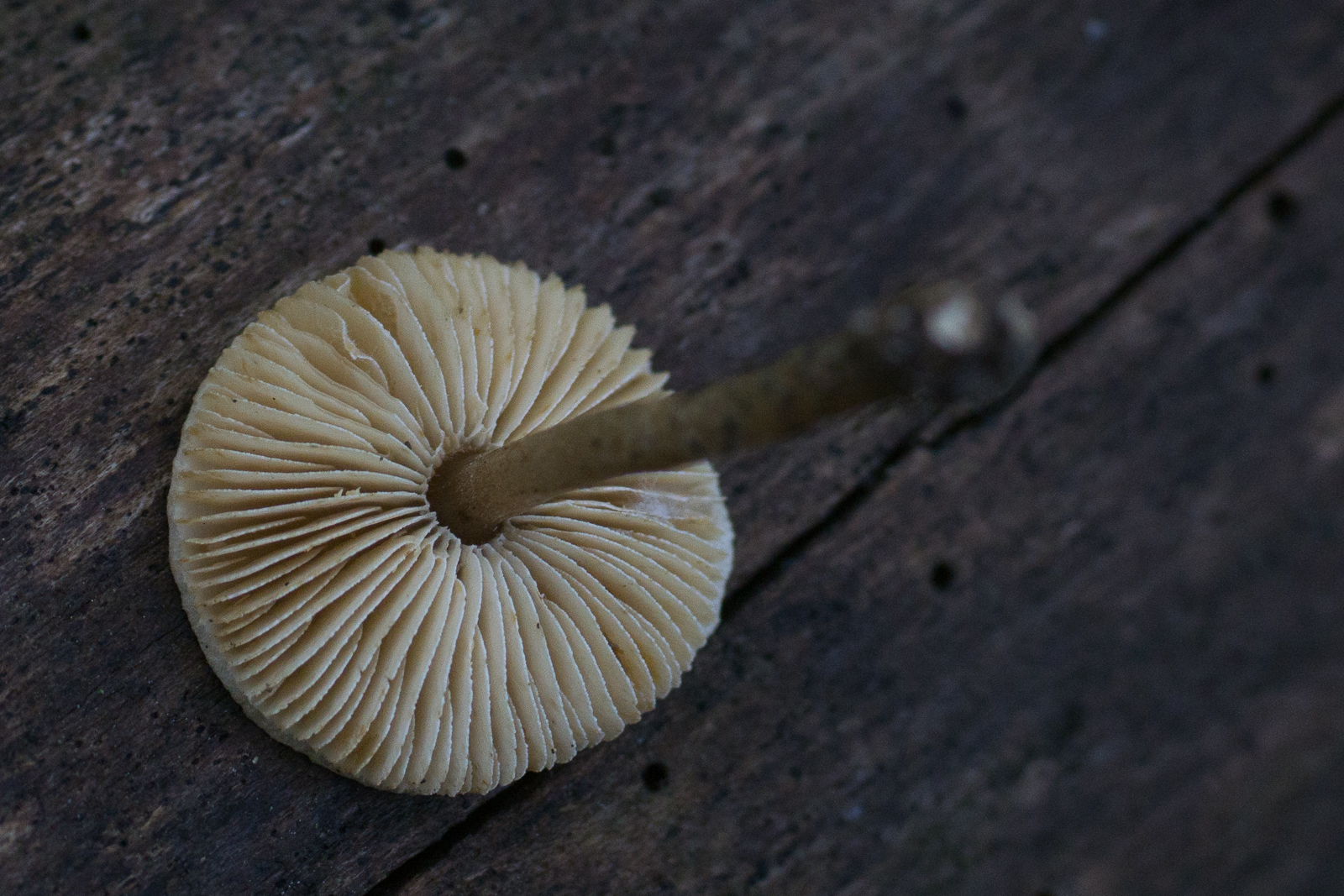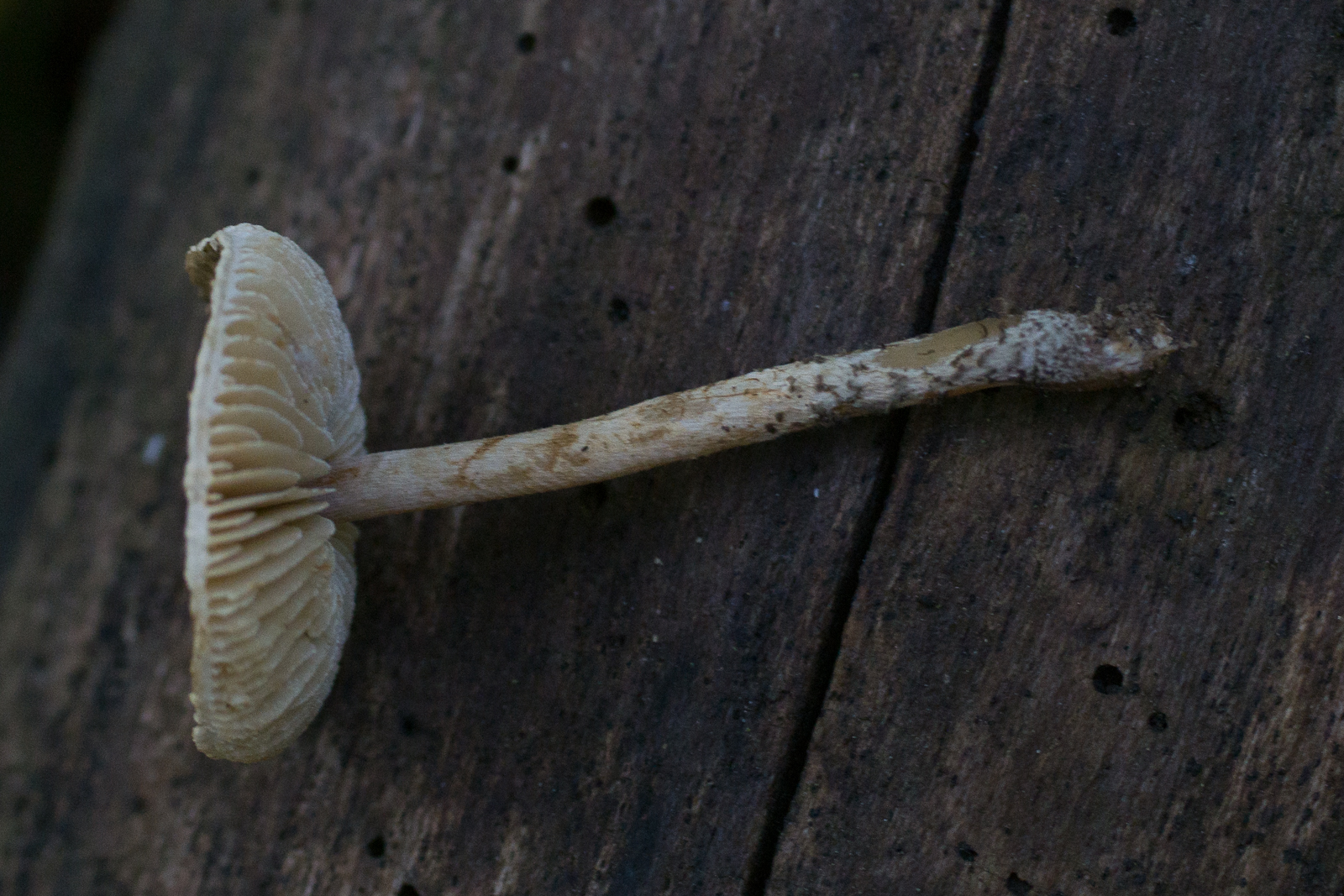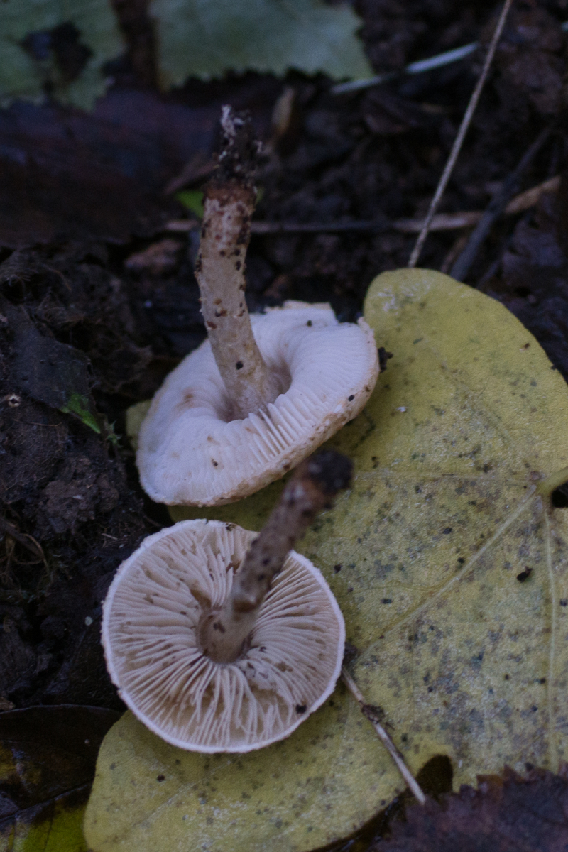 2. Geruch unangenehm künstlich (vlt. Gummi?). Weiße Lamellenschneiden. Hut mit schwarzem Buckel und mit feinen olivschwarzen Körnchen. 2cm Hutdurchmesser.