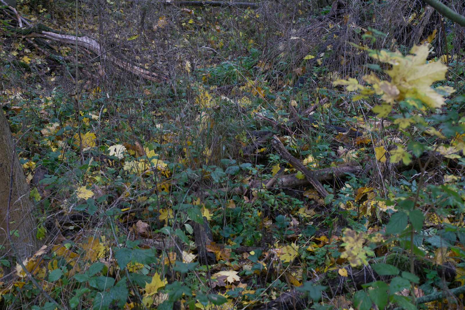 Sie standen auf lehmigem Boden bei viel Totholz. Nur Laubbäume in der Nähe.