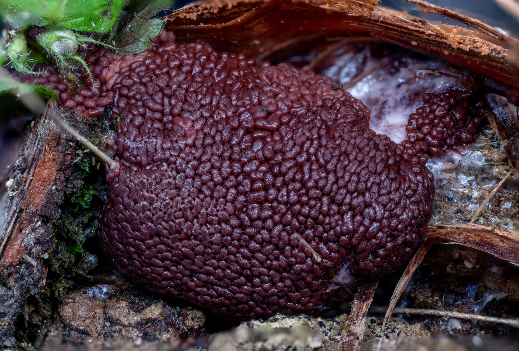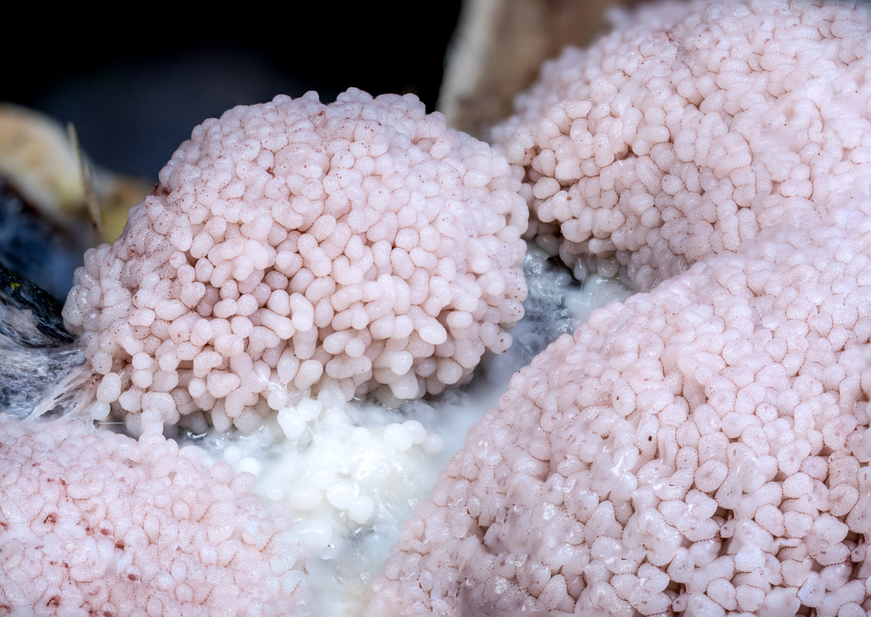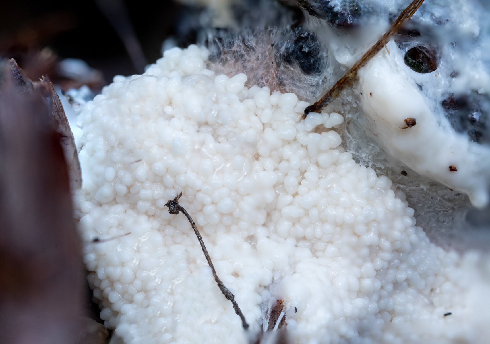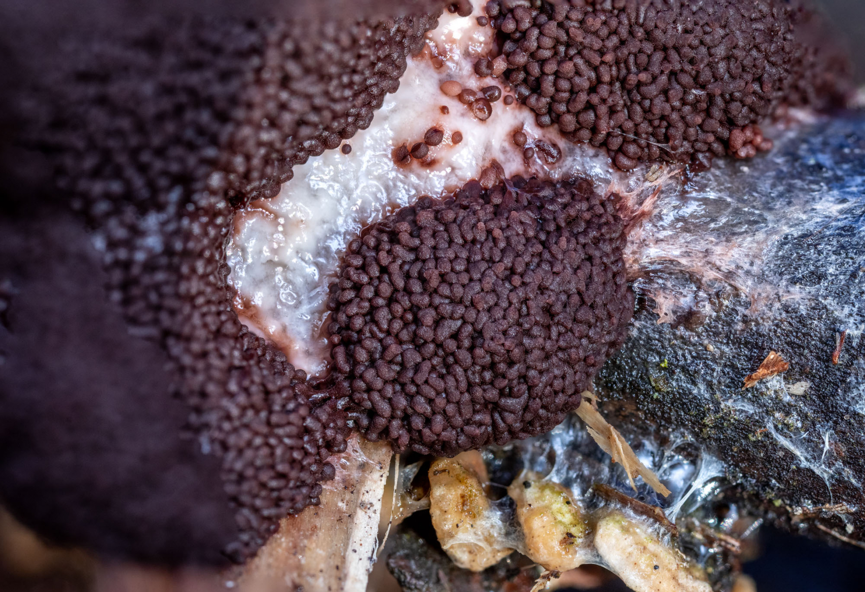 Erst mit der Reife und unter dem Mikroskop ließ sich die Art sicher zuordnen: Brefeldia maxima.
