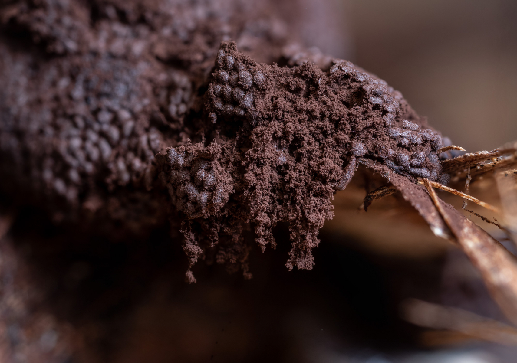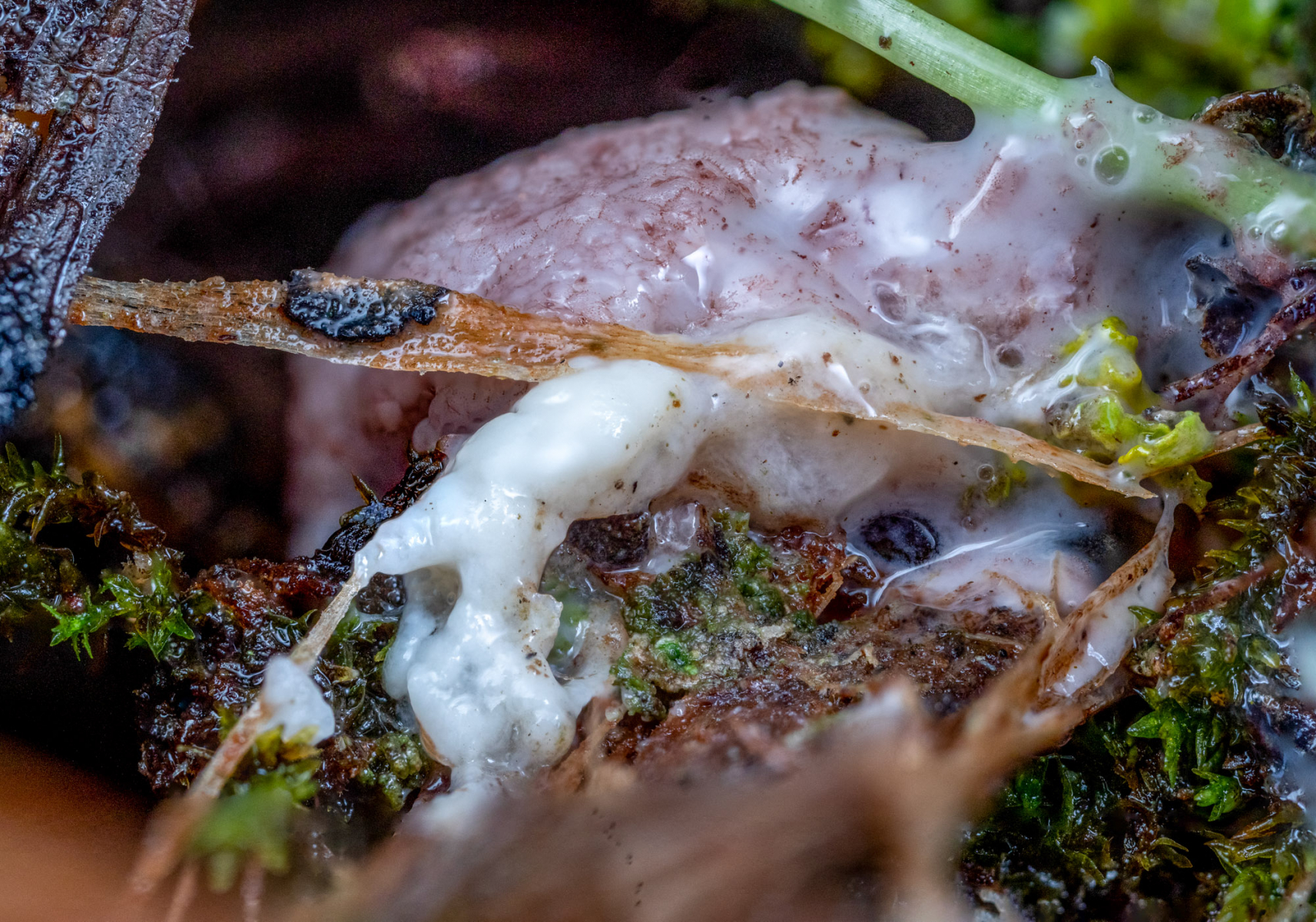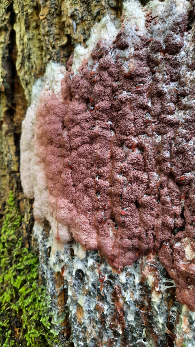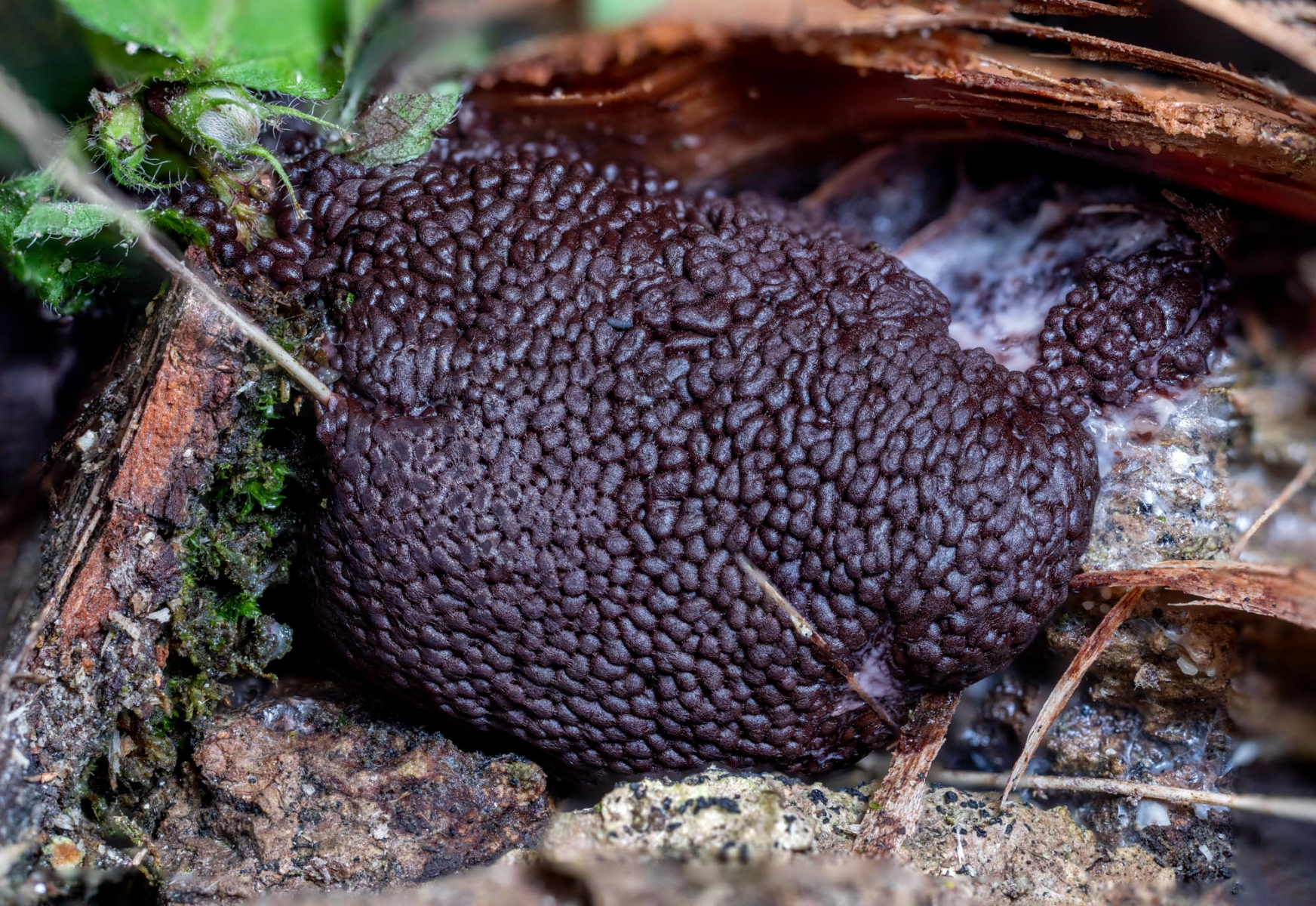 Erst mit der Reife und unter dem Mikroskop ließ sich die Art sicher zuordnen: Brefeldia maxima.