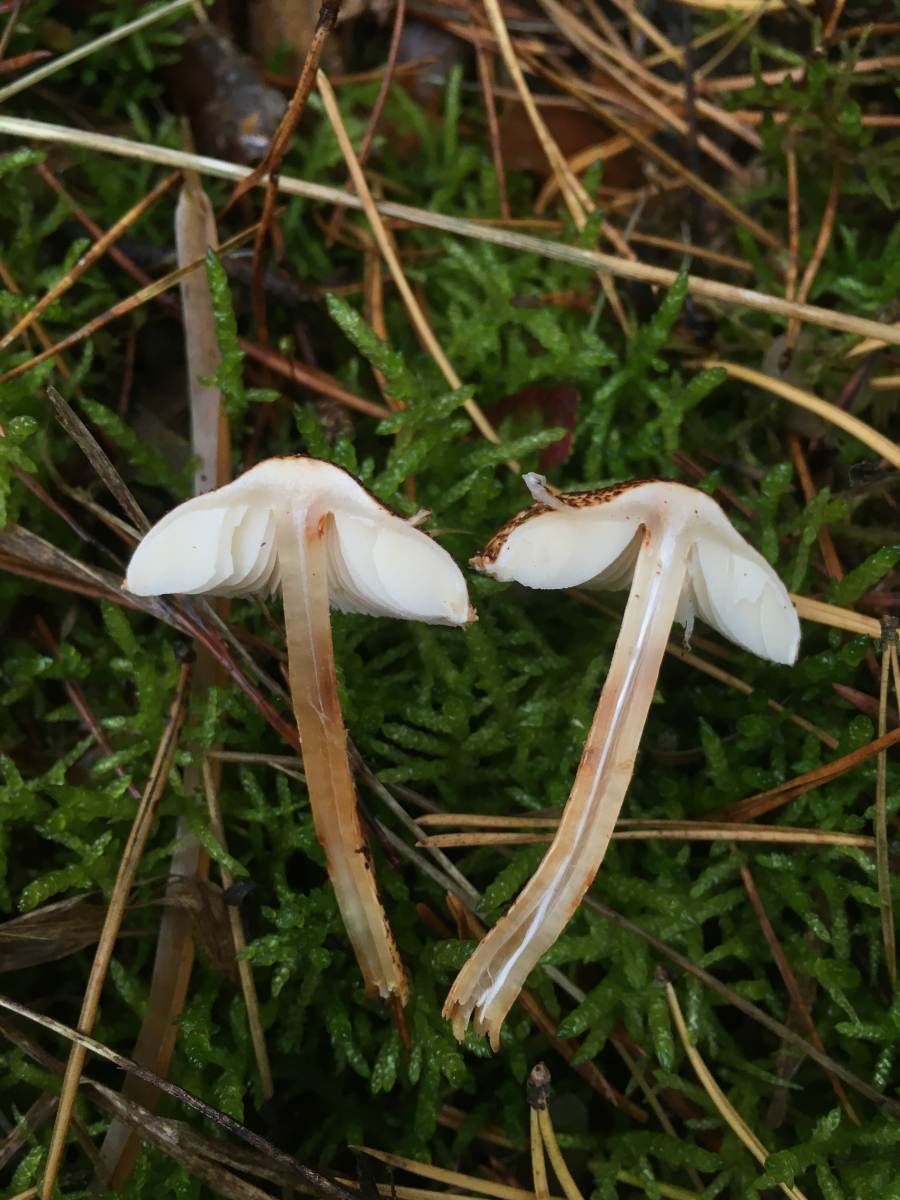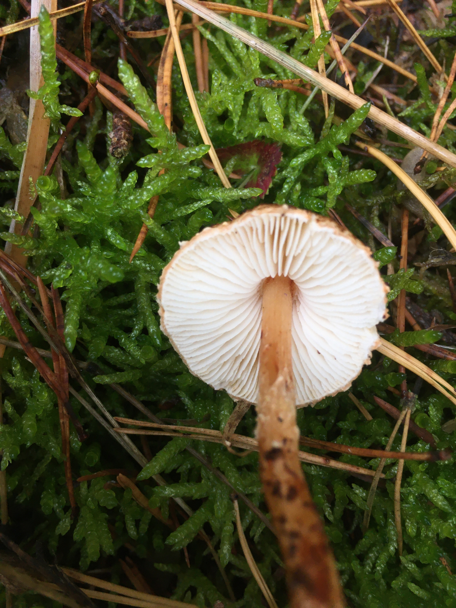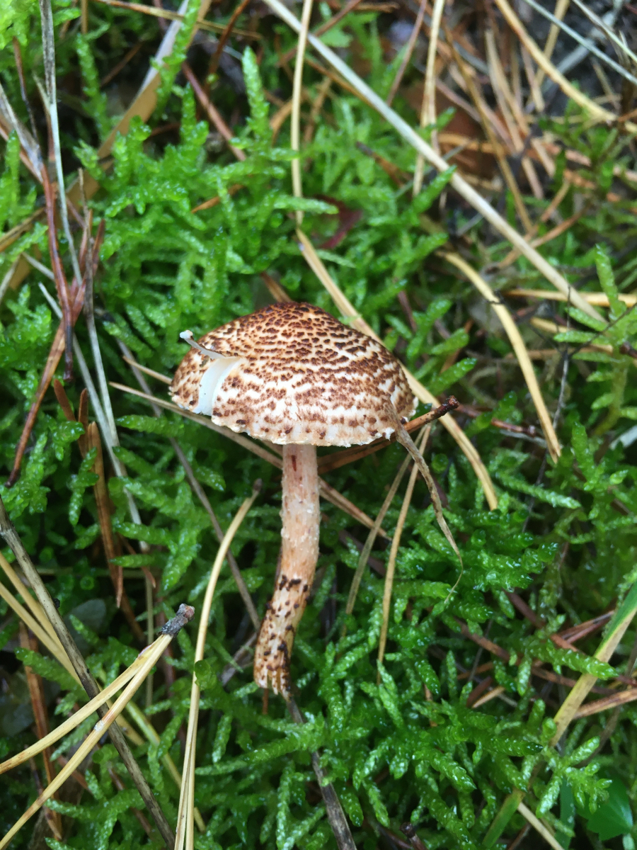 1) im Kiefernwald im Moos auf Sandboden, dort auch einzelnes Laubgehölz wie Heckenkirsche. Ca 1,5cm messender Minischirmling mit braunen Schüppchen. Beim Versuch einen Geruch wahrzunehmen hätte ich ihn fast geschnupft. Leider trotzdem kein irgendwie auffälliger Geruch. Leider war er zudem der Einzige seiner Art. Und falls er einen Ring besessen haben sollte hatte er ihn auch schon eingebüßt. Der Stiel war etwas bräunend und hohl.