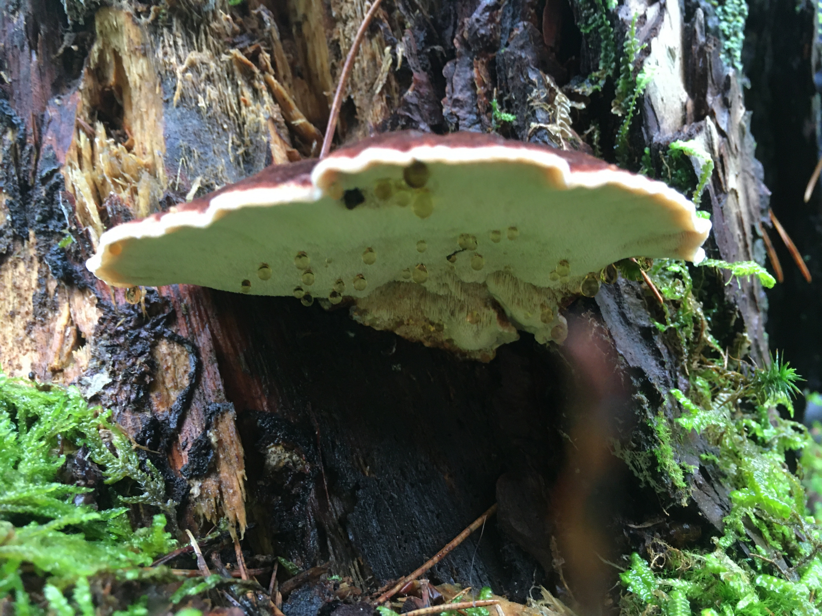 4) zum Schluss noch was handfestes, nur zur Absicherung weil ich den auch noch nicht in der Hand hatte. Nadelholzharzporling/ Ischnoderma benzoinum? (der Zapfhahn tropft)