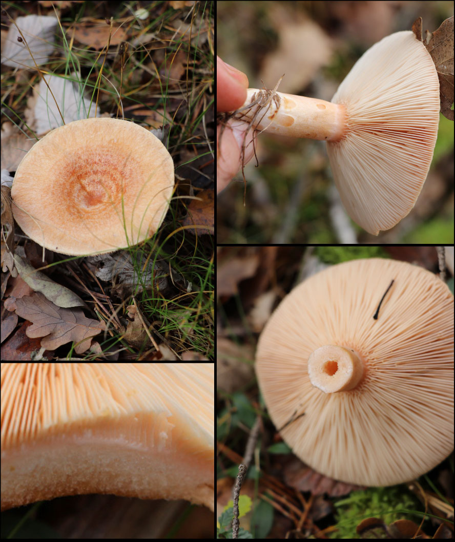 Pilz 3: Klar ein Milchling mit weisser Milch. Wegen des hohlen Stiels kein Brätling - ich tendiere auf Lärchen-Milchling oder Eichen-Milchling - kein Speisepilz