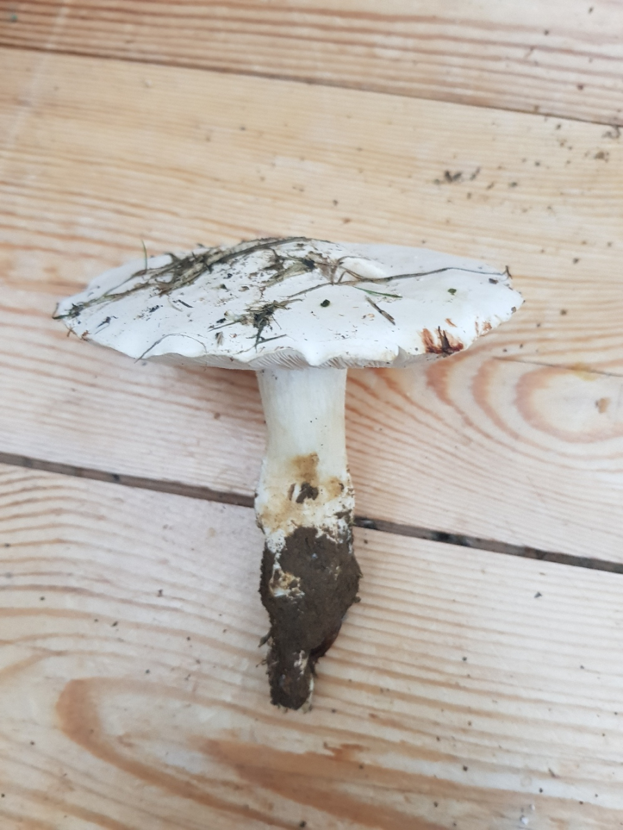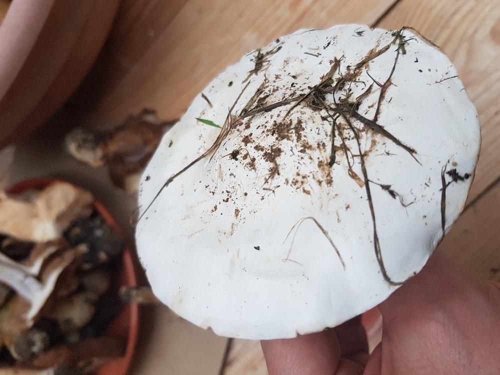 folgenden Pilz fand ich am Wochenende bei der Nachmittagsrunde mit der Familie. Viel mehr Zeit als Pflücken und zu Hause untersuchen blieb nicht. Dort blieb auch nicht viel Zeit für eine fundierte Untersuchung, daher müssen im folgenden Handy-Bilder reichen. ![]()