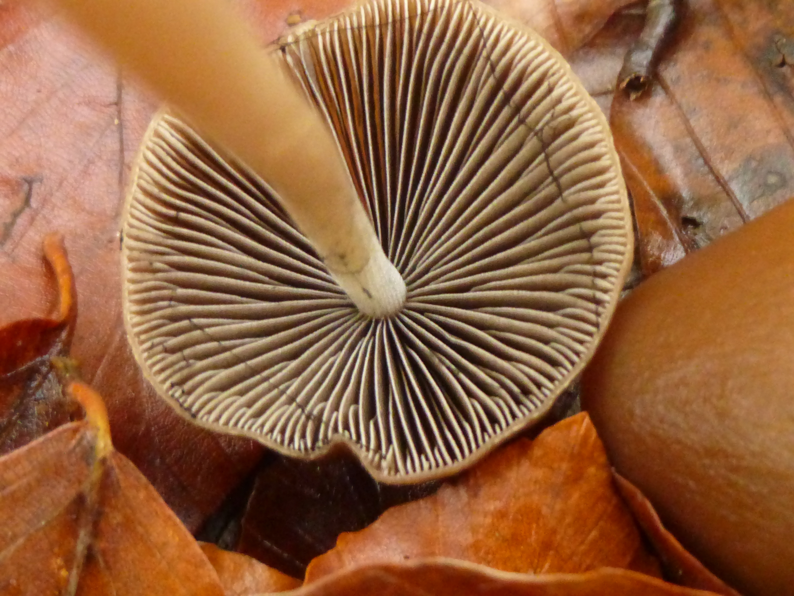Hut und vor allem Stiel ultra brüchig, dieser auch sehr faserig, sehr dünn und sehr hohl. ![]()
