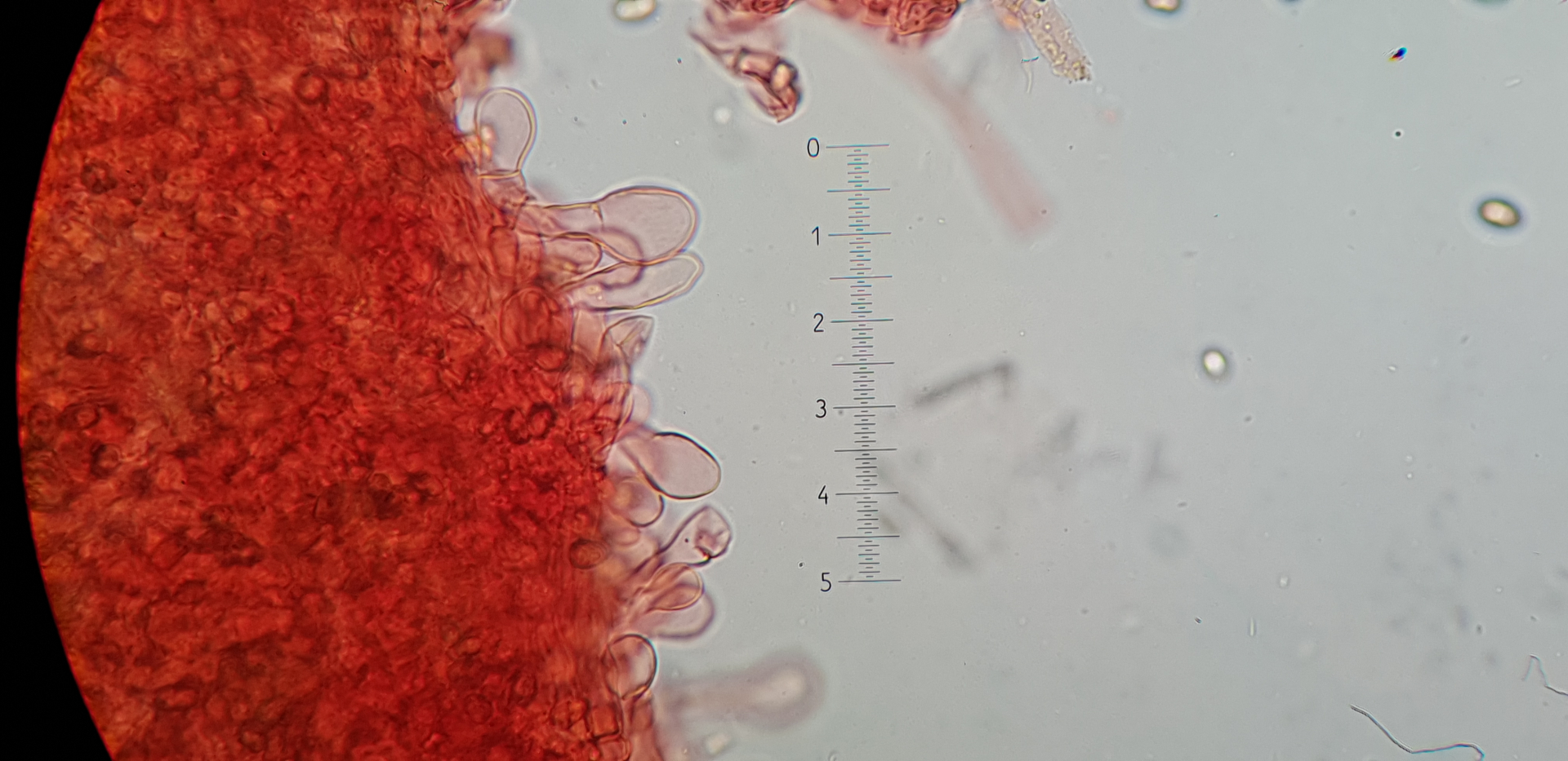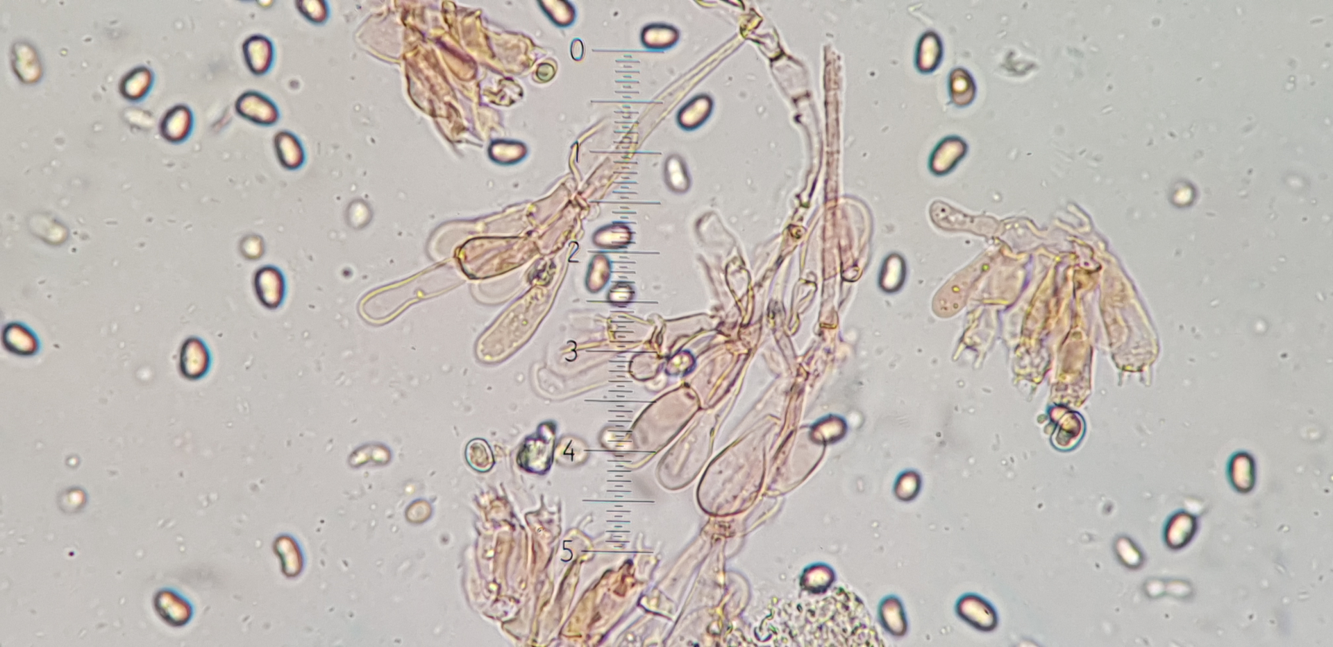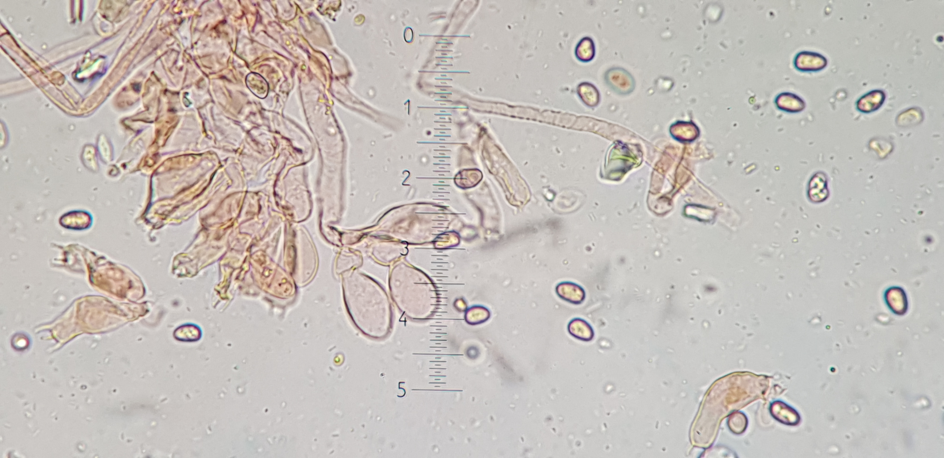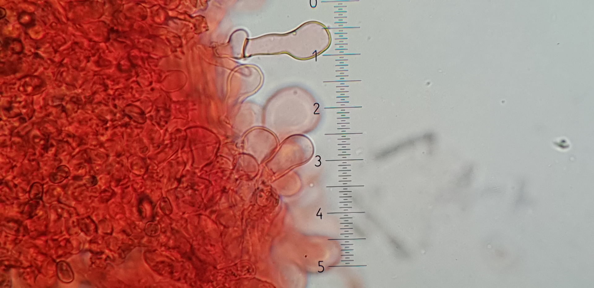 Auch das fand ich in der nähe der Stielspitze, ich denke das es sich aber um Cheilozystiden handelt.
