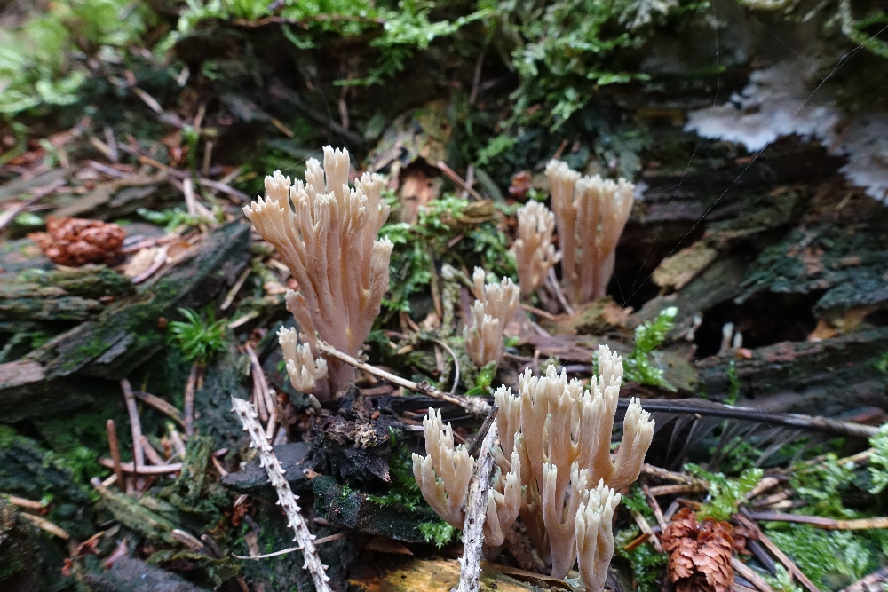 7) Eine schöne Koralle mit auffällig grünen Spitzen: die Grünspitzige Koralle (Ramaria apiculata); sie soll relativ selten sein.