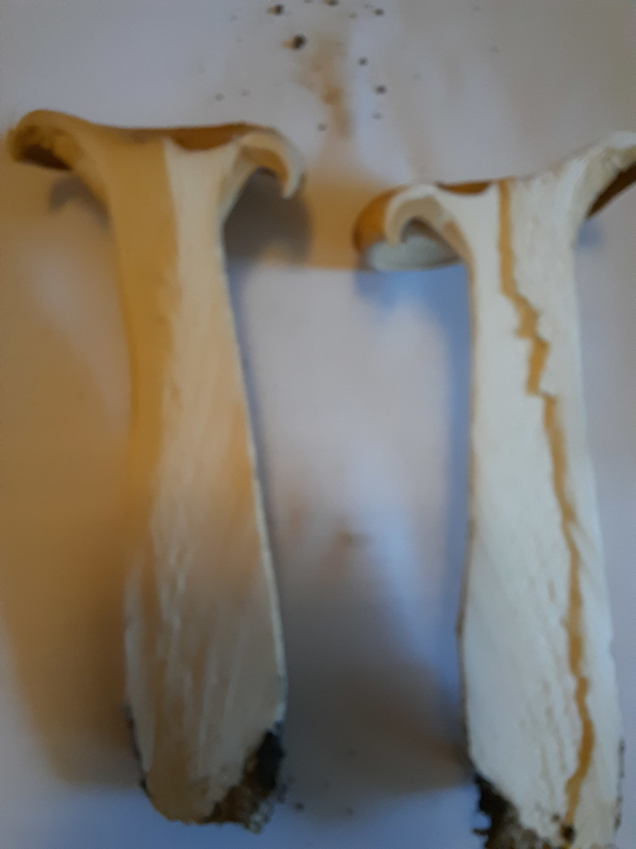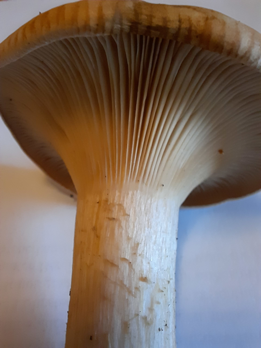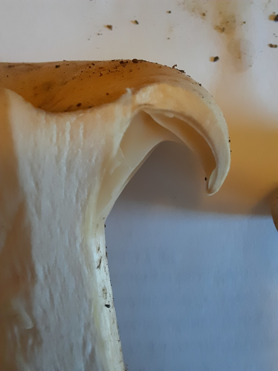 also ich seh da keinen Hutbuckel. Der wäre für den Mönchskopf typisch. Entweder liegt’s an den Bildern, oder er hat keinen. In letzterem Fall wär ich auch eher beim Riesenkrempentrichterling Leucopaxillus giganteus.