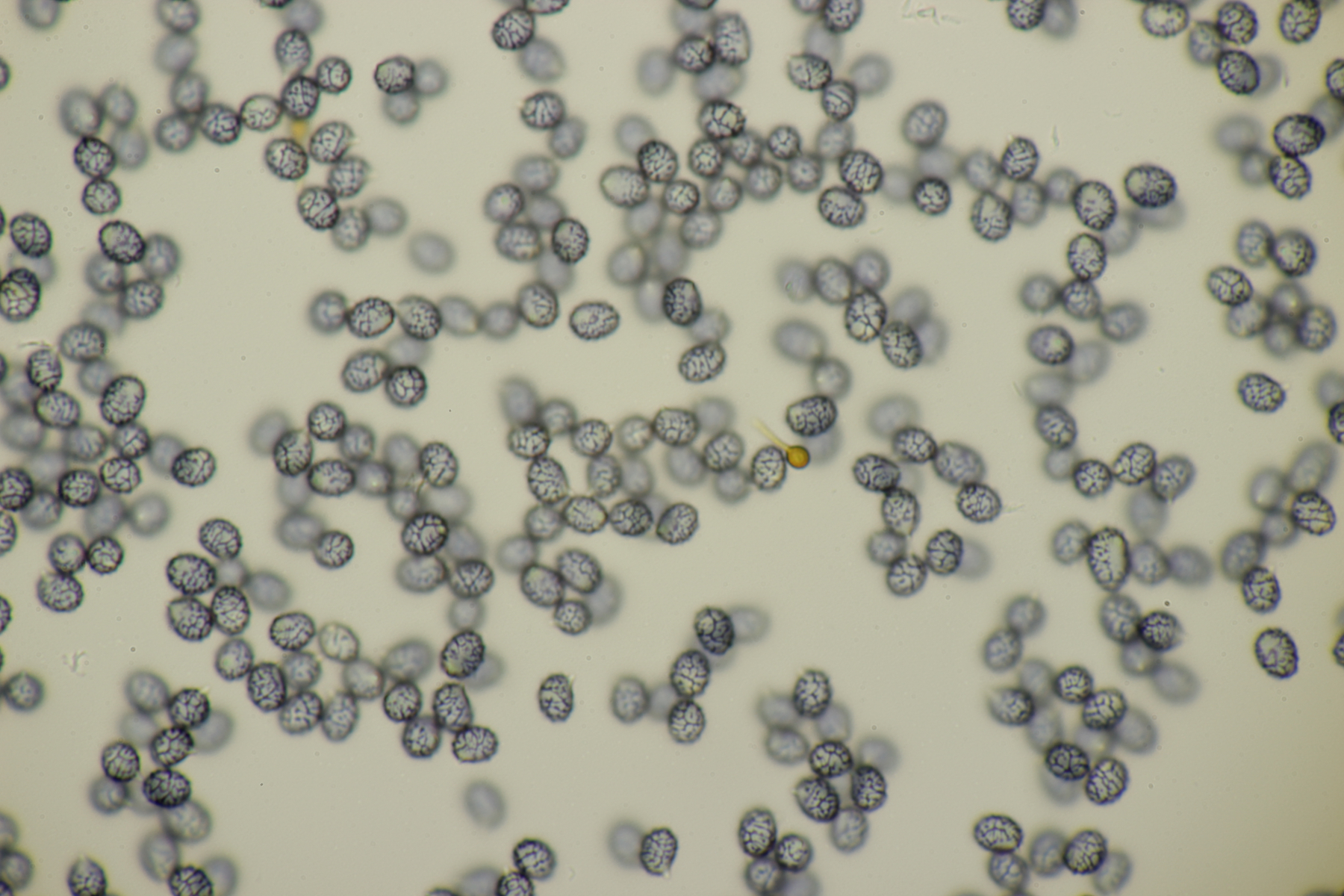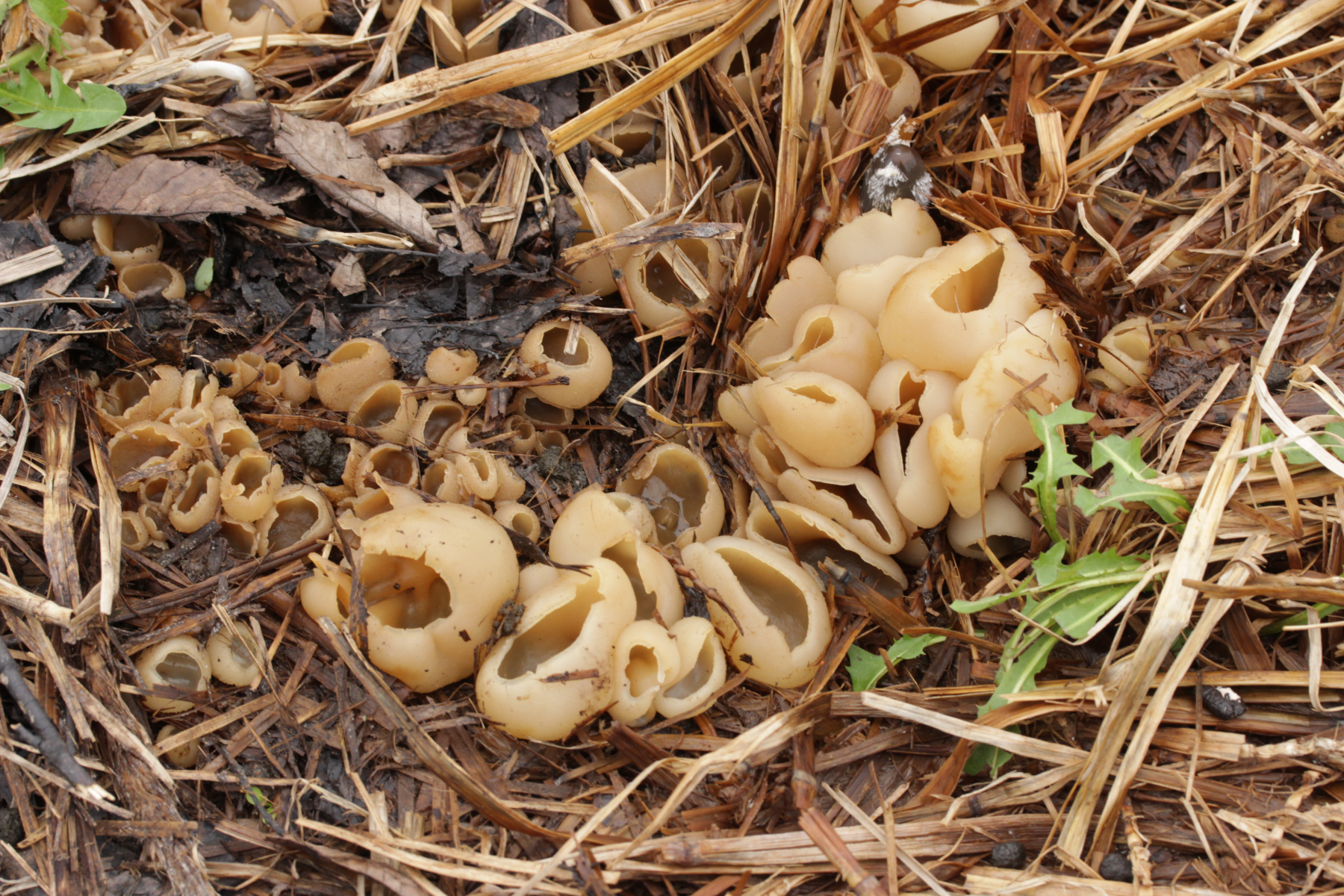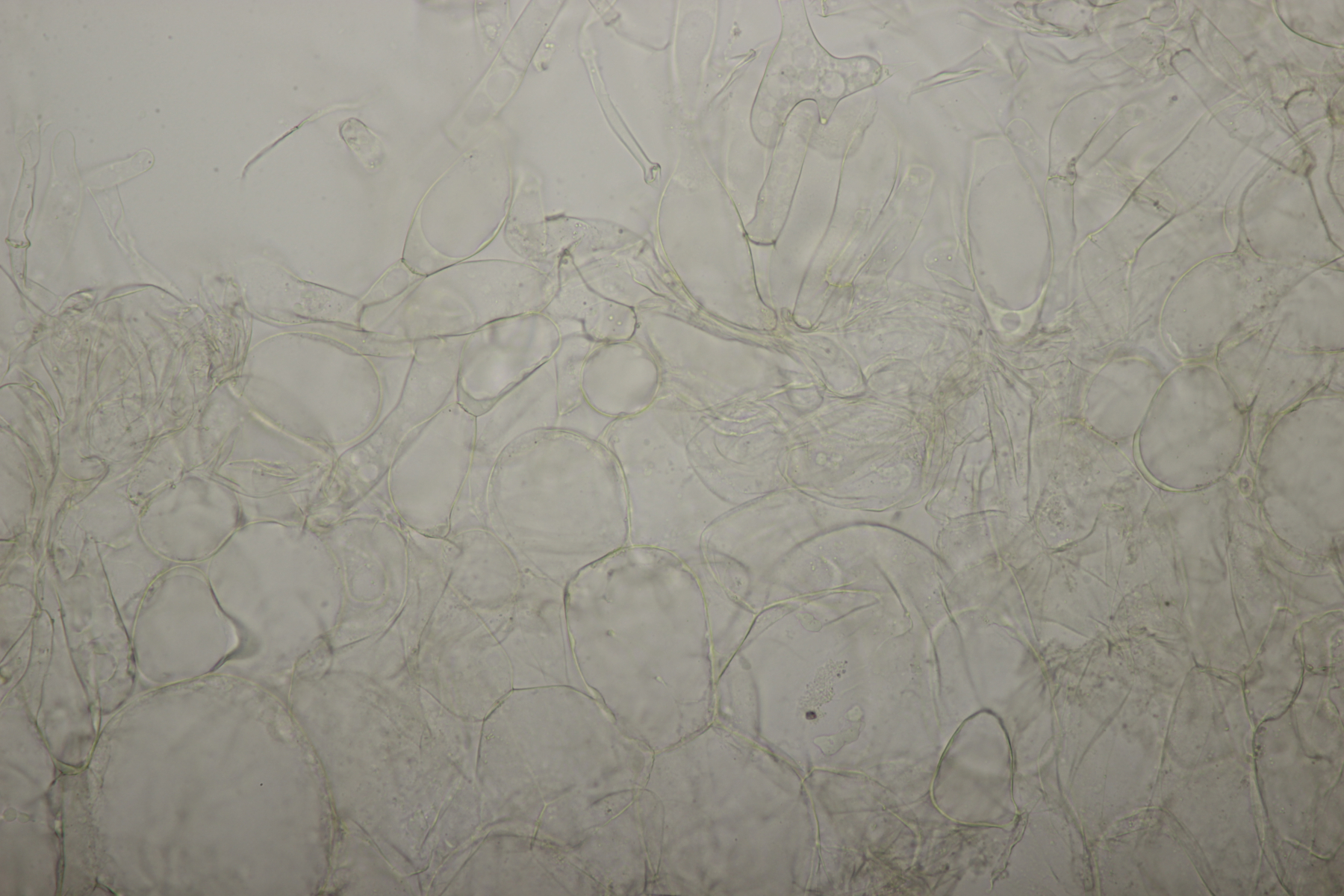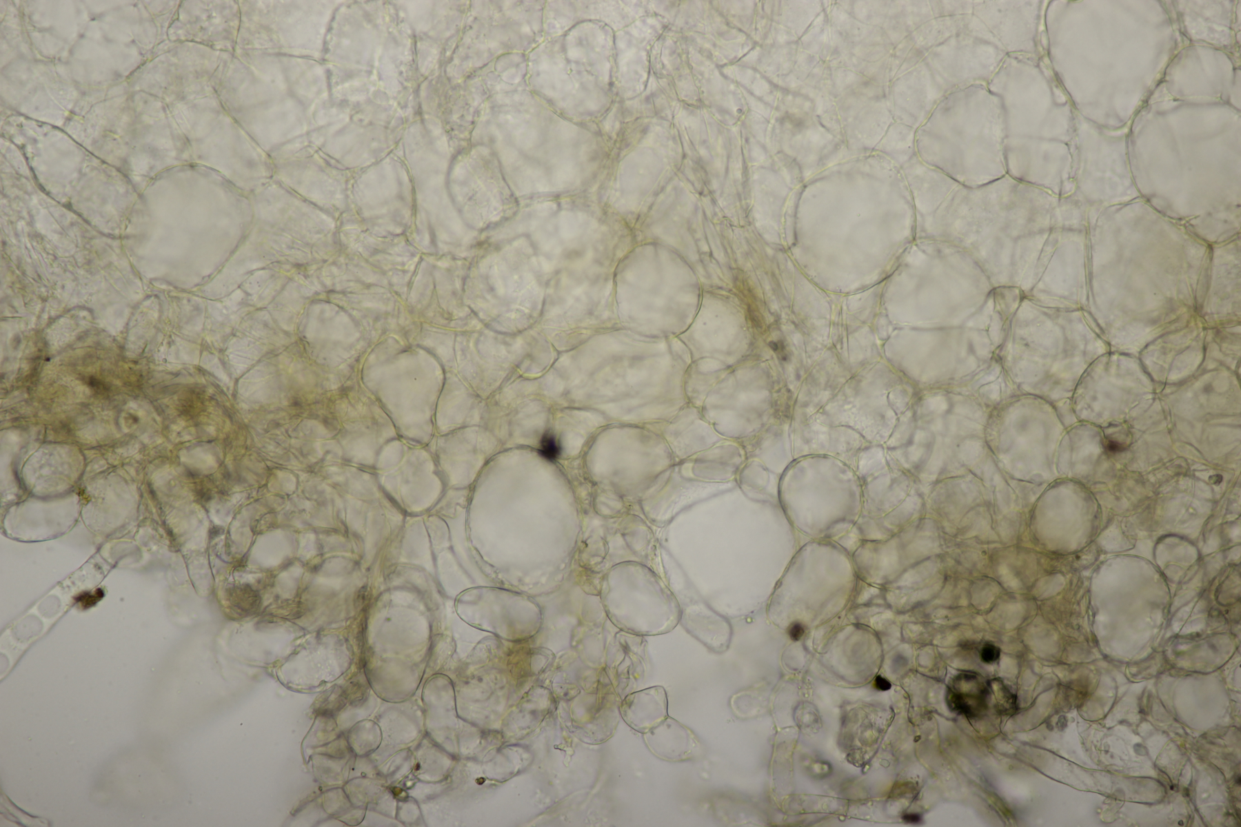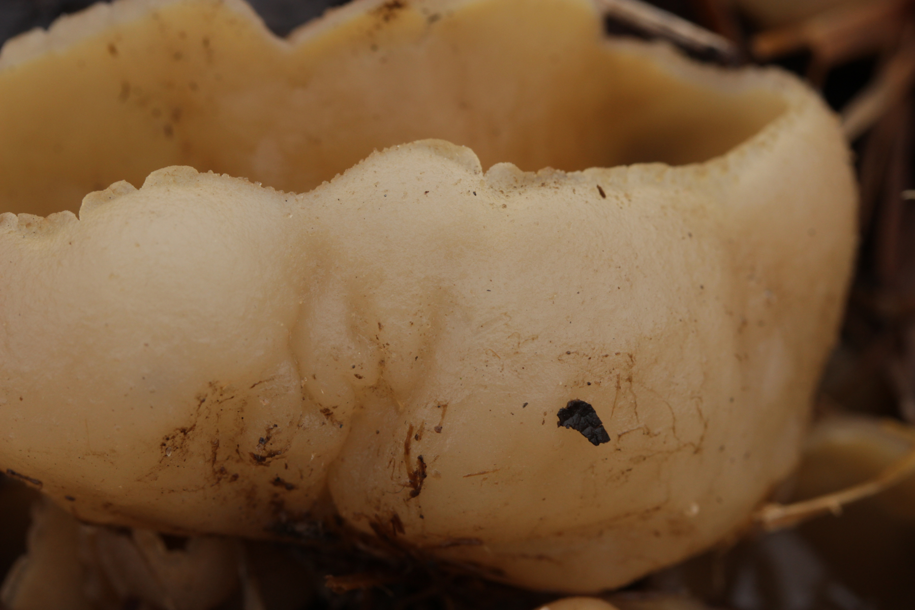 10. An Stroh (mit Pferdemist darunter?) dann eine Peziza. Die Sporen sehen ganz glatt aus, aber leider waren keine Sporen im Abwurf zu bekommen. Die Sporen in den Asci messen (17.5-20) µm x (9-11) µm, Q=1.7-2.0. Von der Sporengröße her würde das mit dem Schlüssel im Doveri am ehesten zu Peziza azorica (P. buxea in PD) passen. Oder wachsen die Sporen noch weiter und es wird am Ende eine Peziza vesiculosa? Was meint ihr?