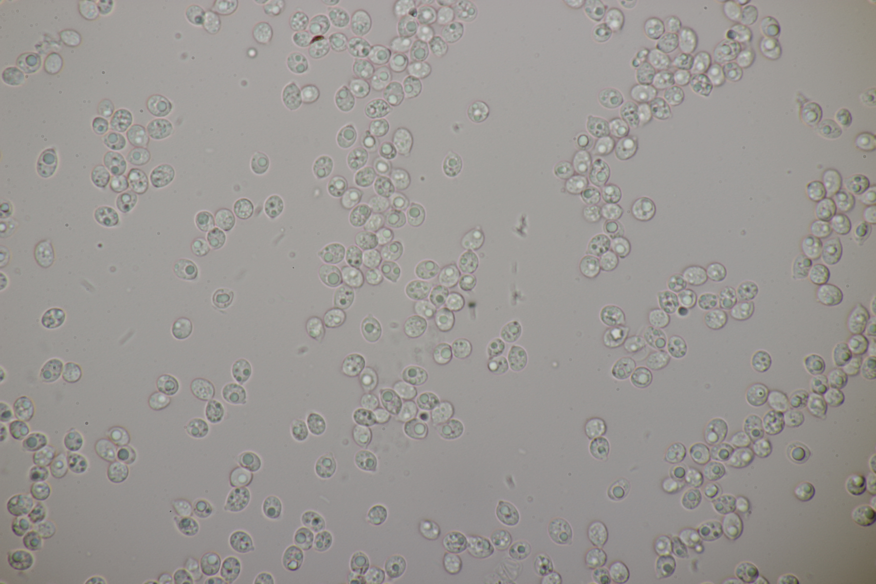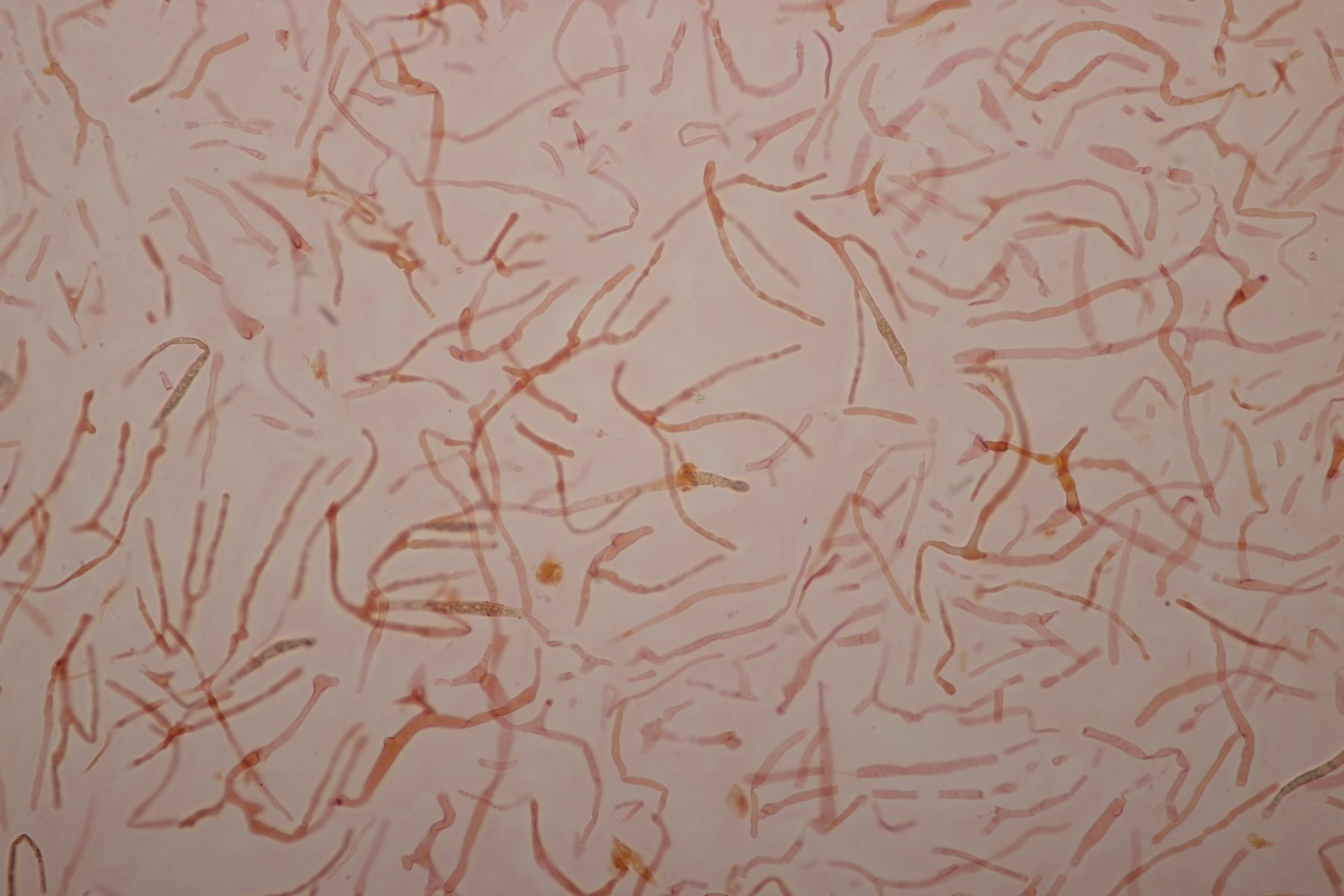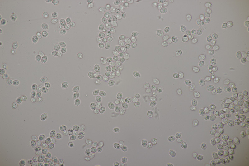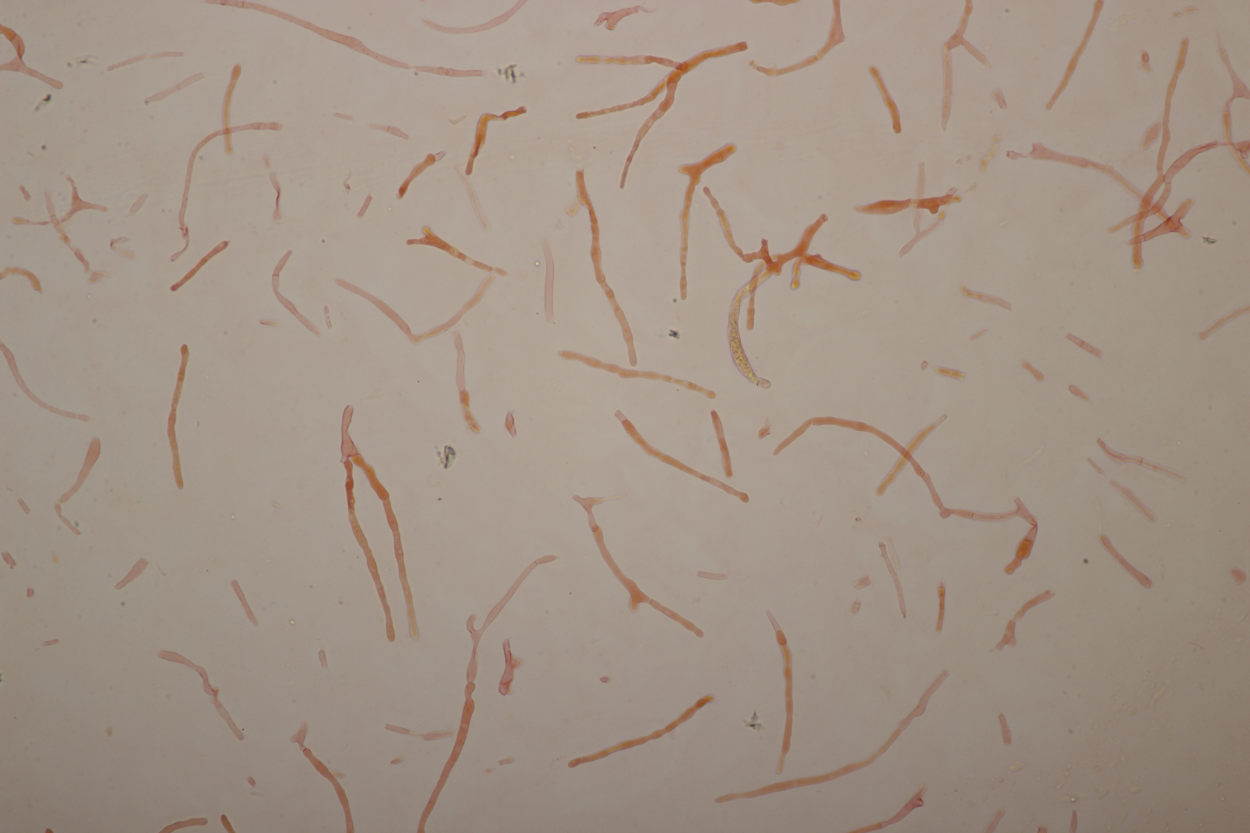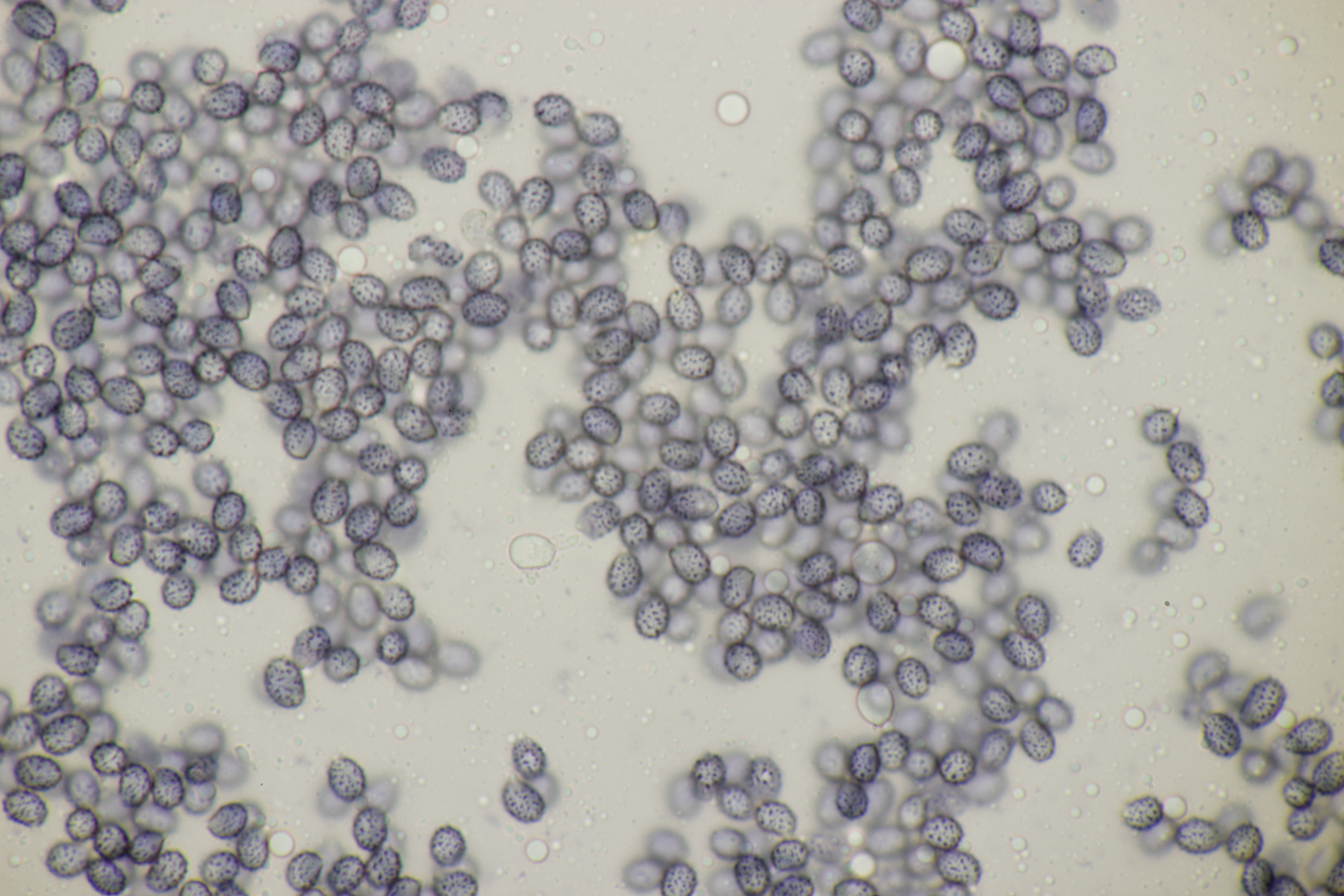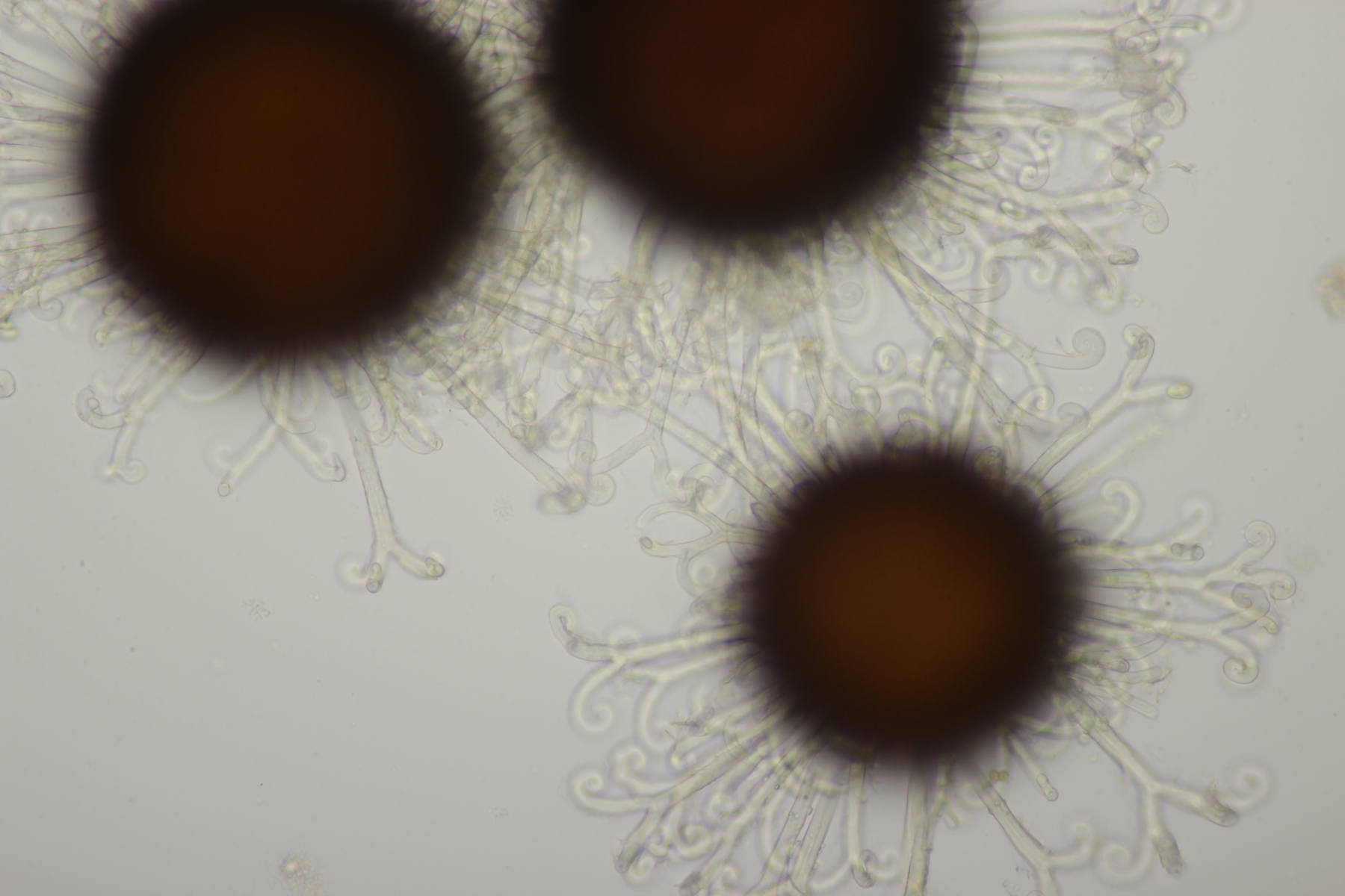 10. An Stroh (mit Pferdemist darunter?) dann eine Peziza. Die Sporen sehen ganz glatt aus, aber leider waren keine Sporen im Abwurf zu bekommen. Die Sporen in den Asci messen (17.5-20) µm x (9-11) µm, Q=1.7-2.0. Von der Sporengröße her würde das mit dem Schlüssel im Doveri am ehesten zu Peziza azorica (P. buxea in PD) passen. Oder wachsen die Sporen noch weiter und es wird am Ende eine Peziza vesiculosa? Was meint ihr?