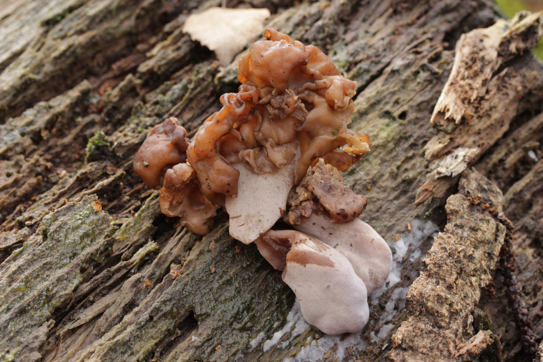 9. Gyromitra infula an einem Totholzstapel, an dem wir im letzten Jahr bei einer Exkursion schon Artomyces pyxidatus finden konnten.