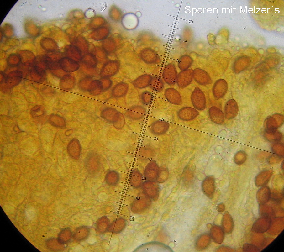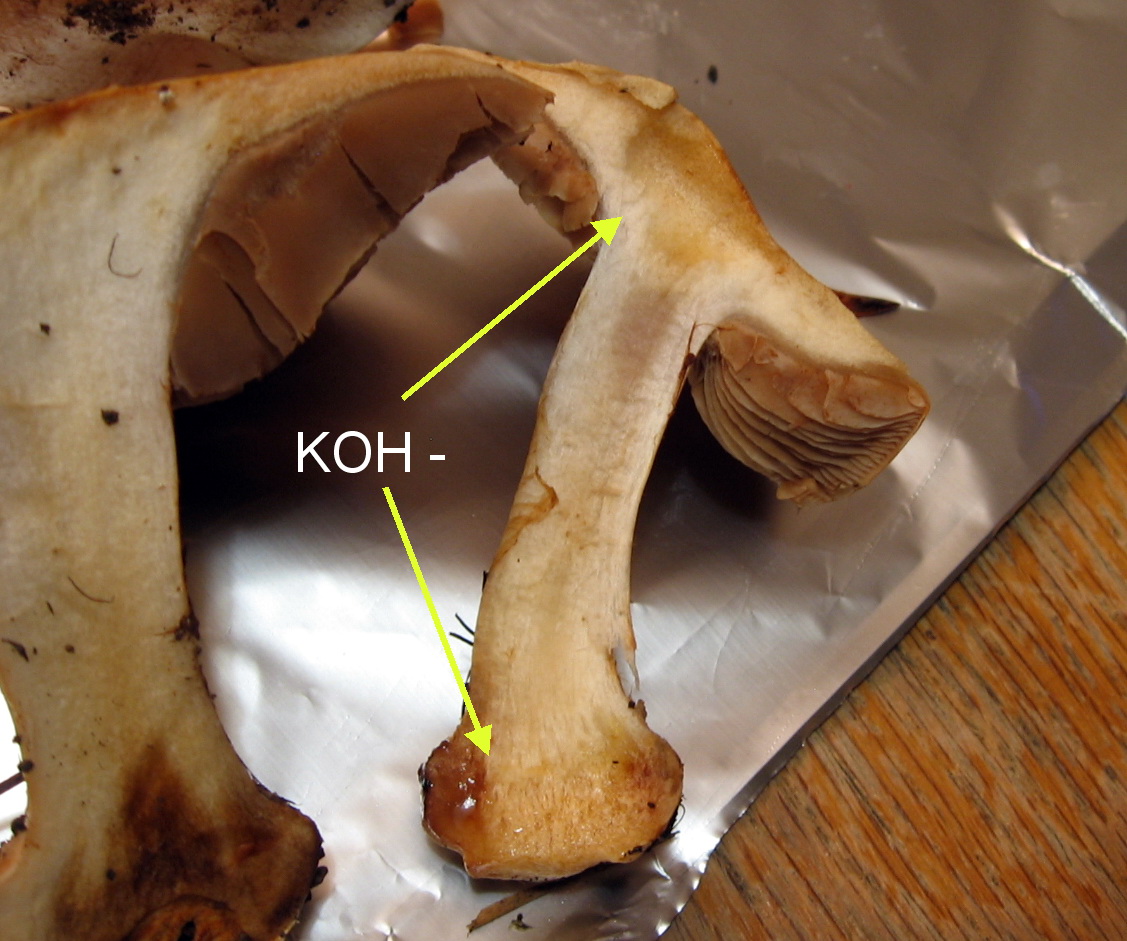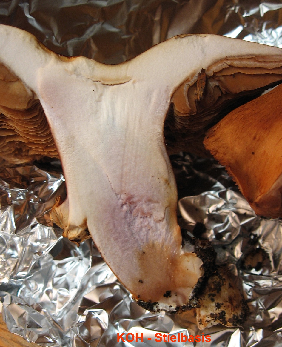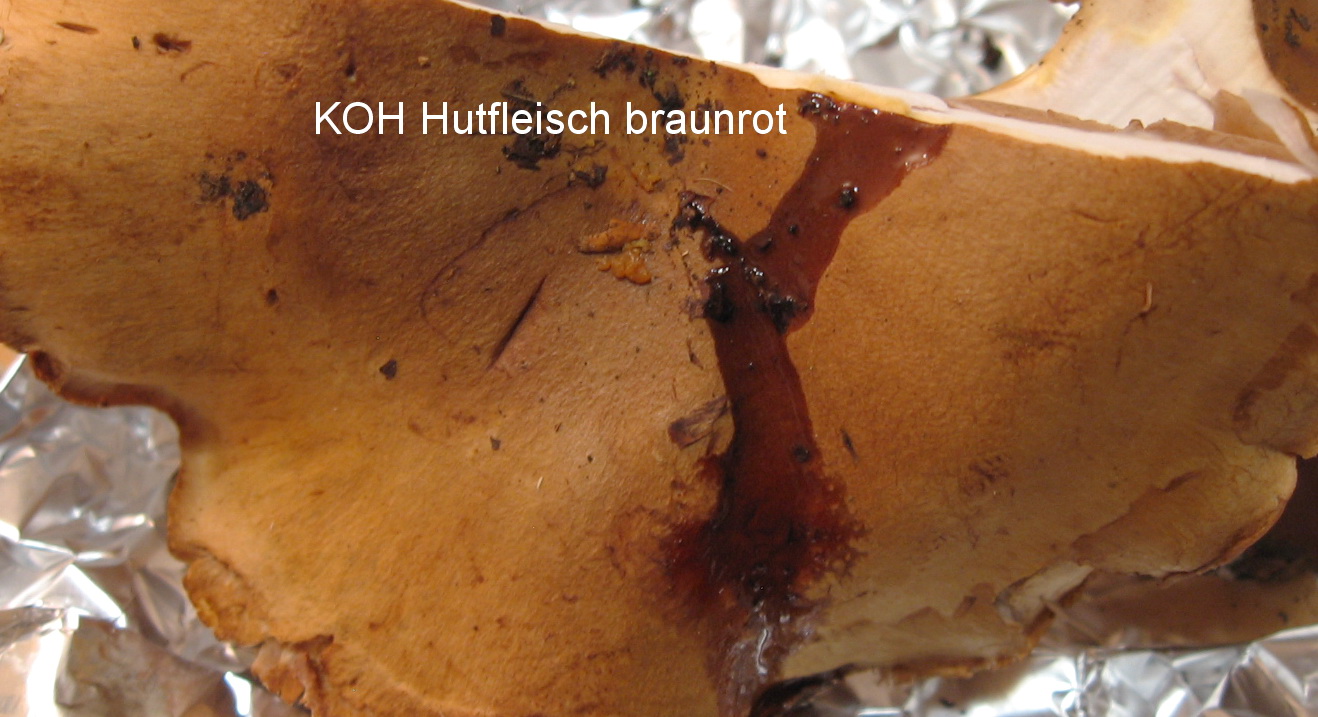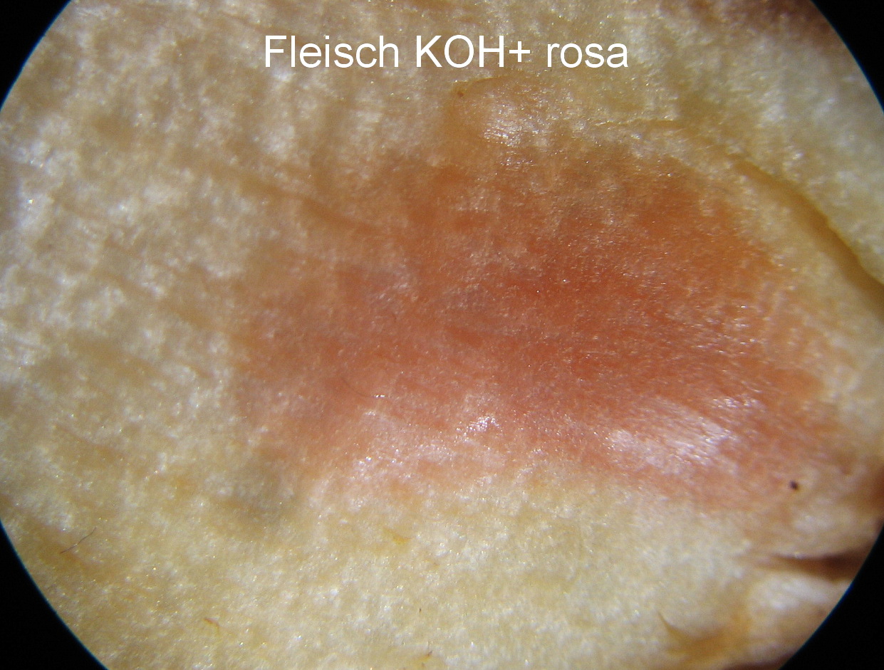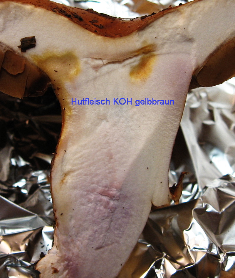 KOH im Fleisch nur leicht gelblich, Stielbasis mit KOH schwach bräunlich, Huthaut bräunlich