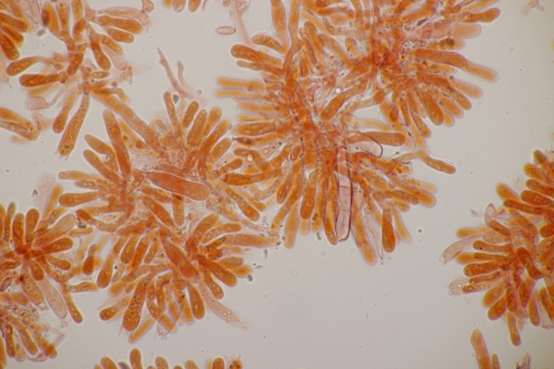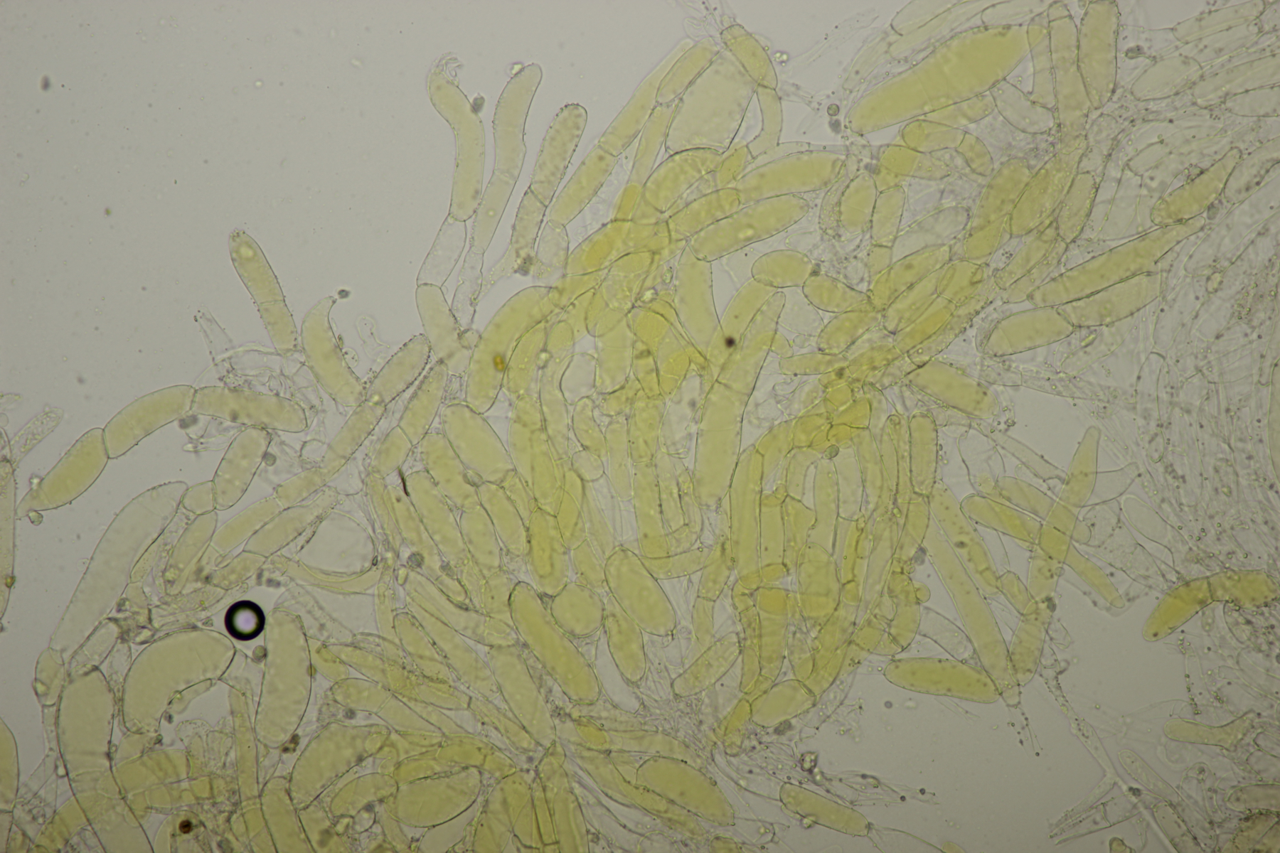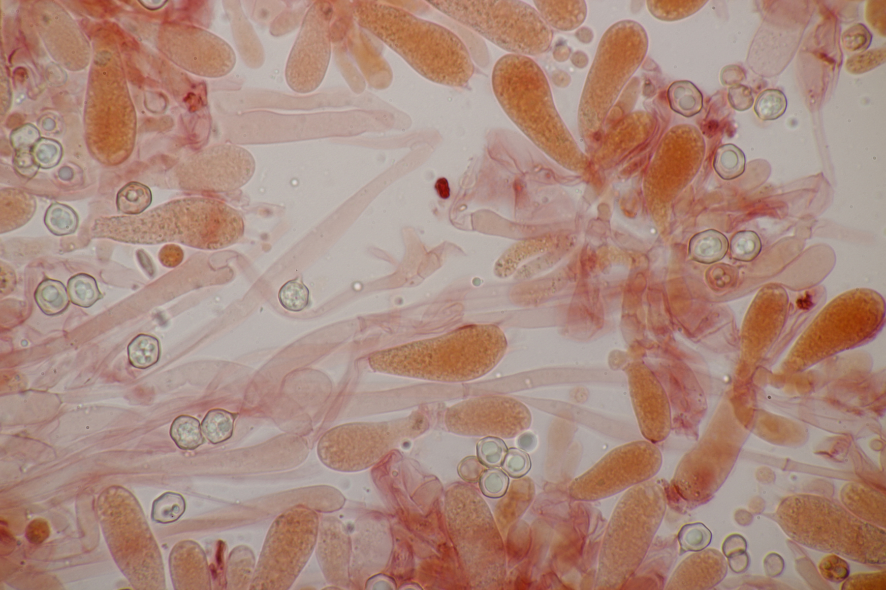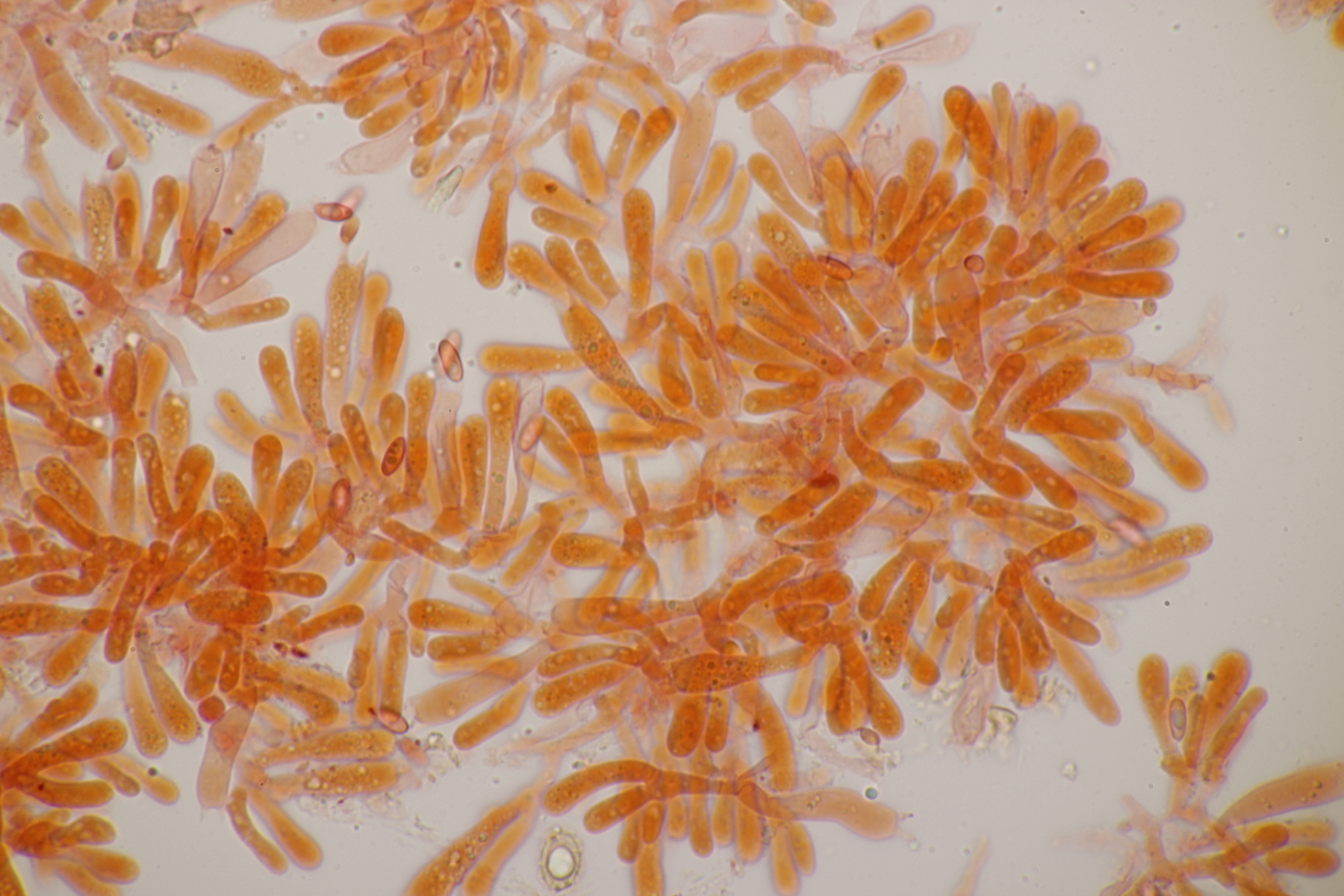 6. Clavaria falcata, Sporen (9.2+-0.4) µm x (6.0+-0.6) µm, Q=1.5+-0.1 bzw. (8.7-10.0) µm x (4.8-7.4) µm, Q=1.3-1.8