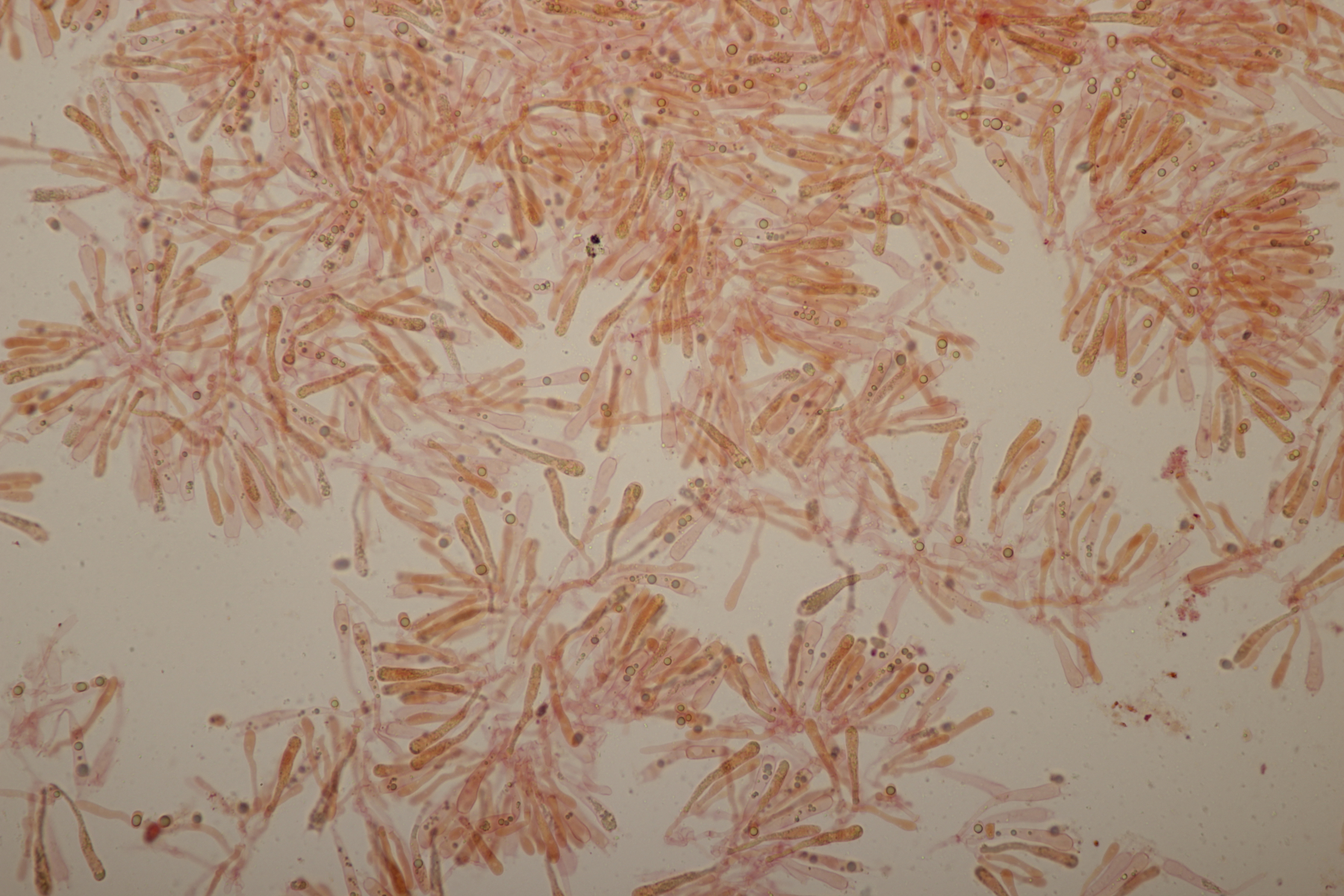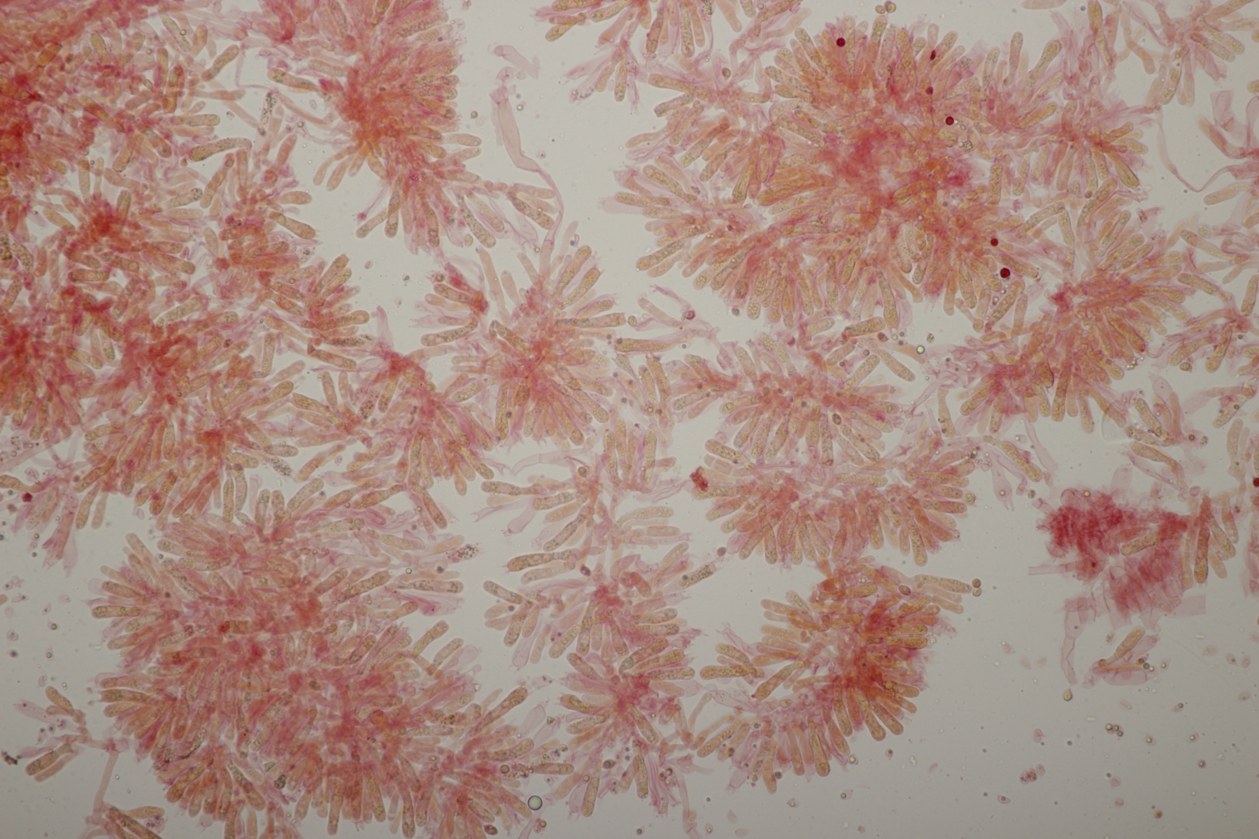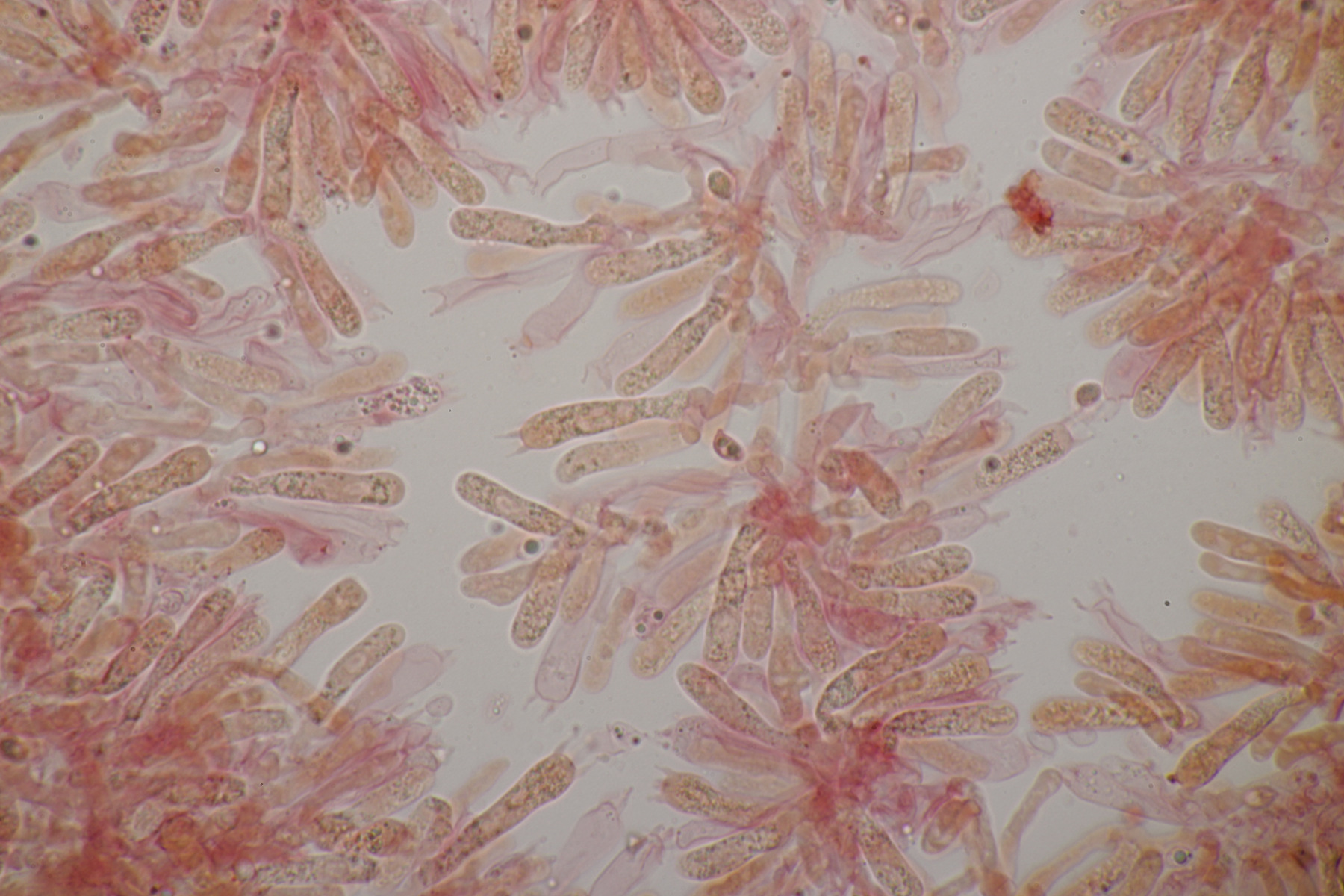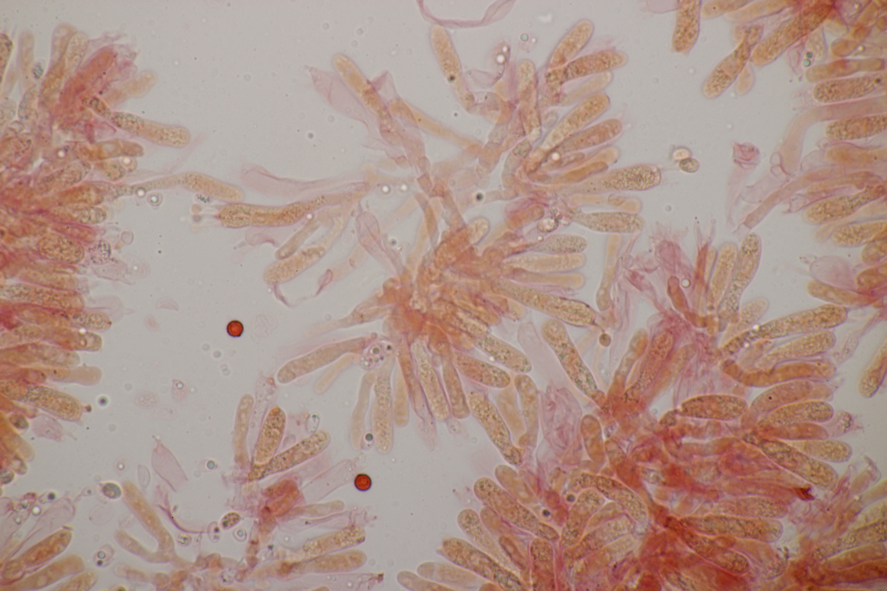 6. Clavaria falcata, Sporen (9.2+-0.4) µm x (6.0+-0.6) µm, Q=1.5+-0.1 bzw. (8.7-10.0) µm x (4.8-7.4) µm, Q=1.3-1.8