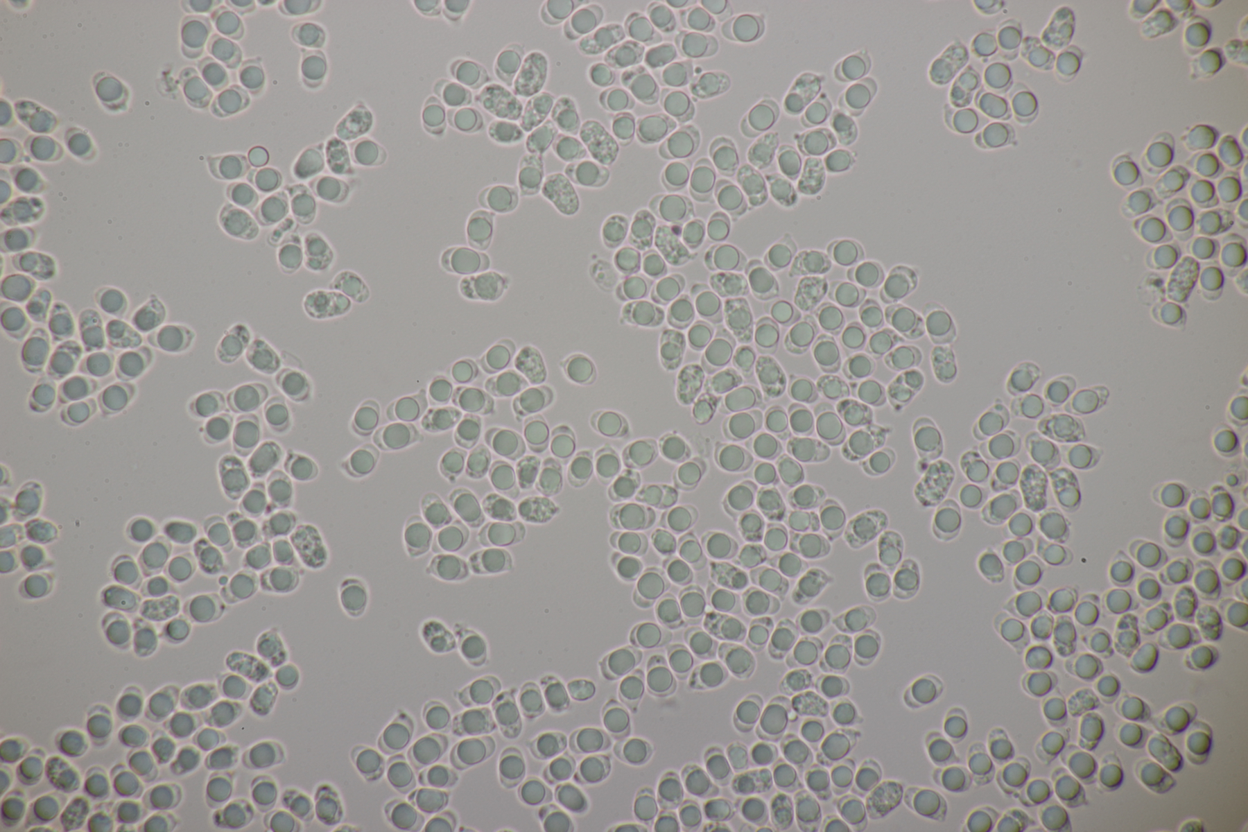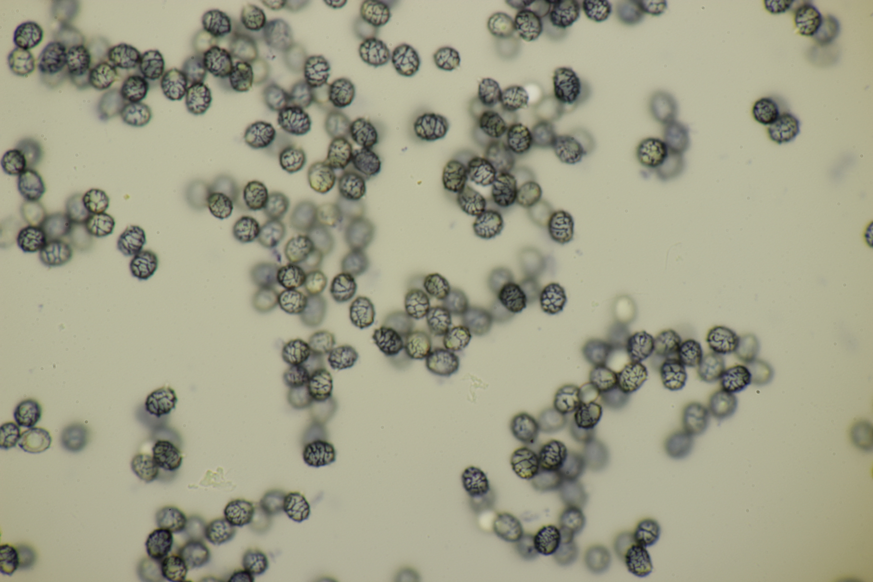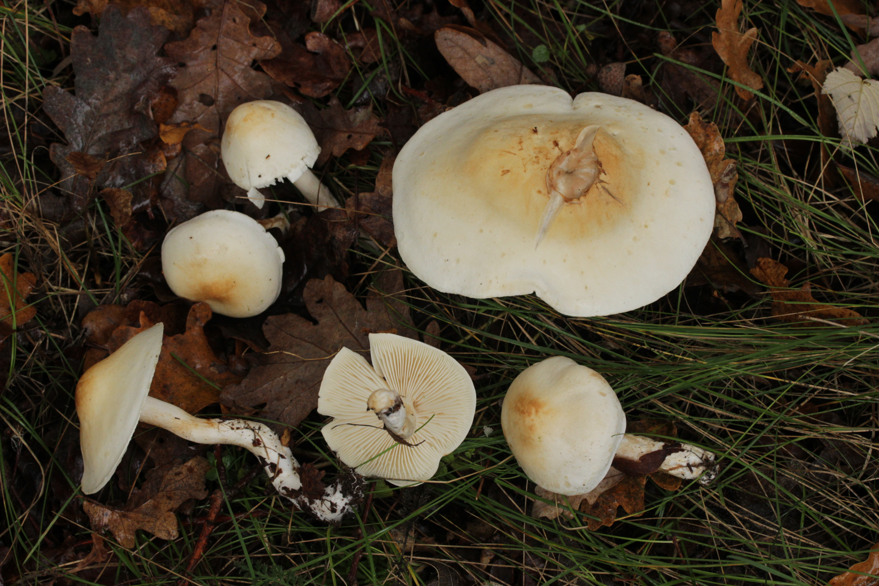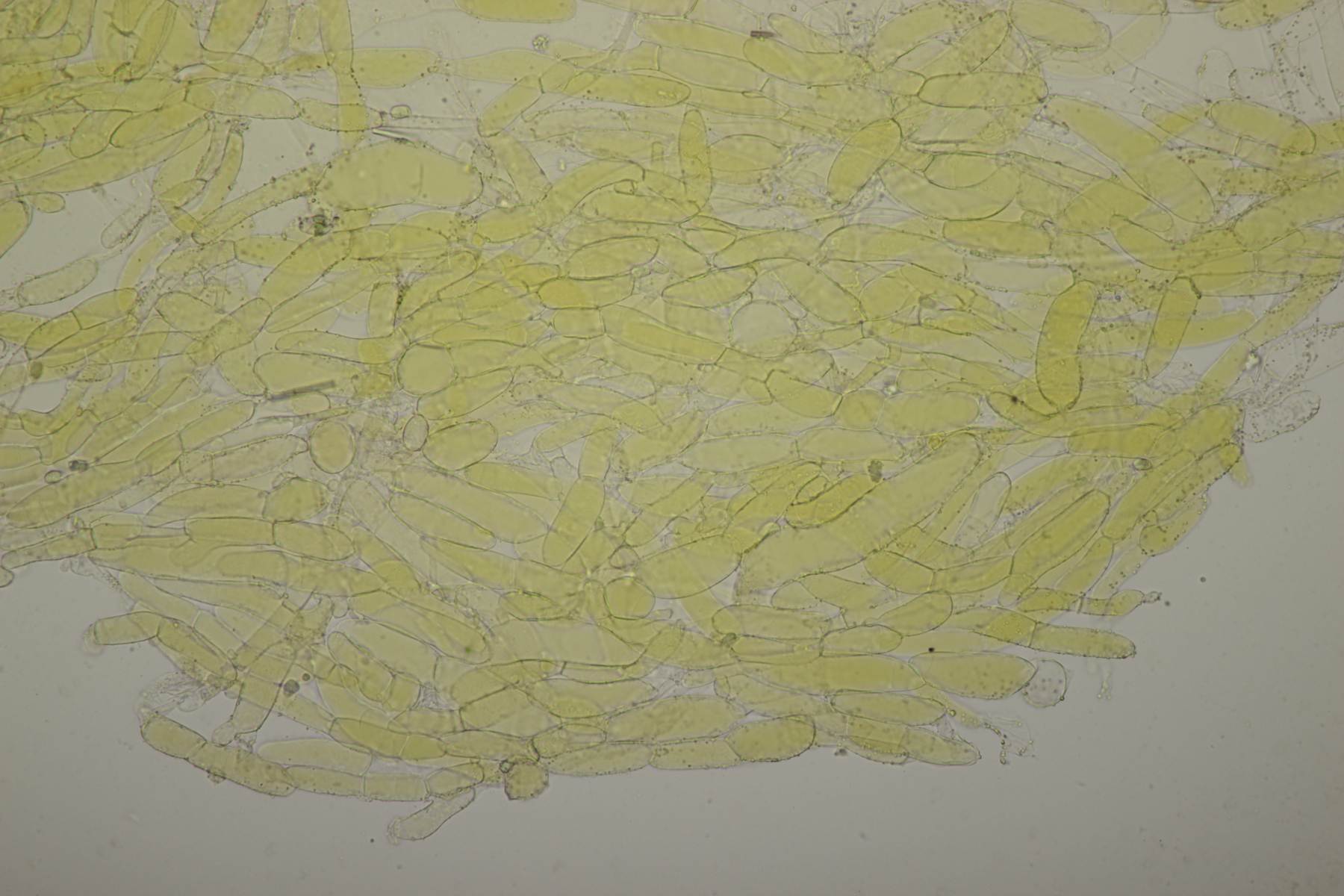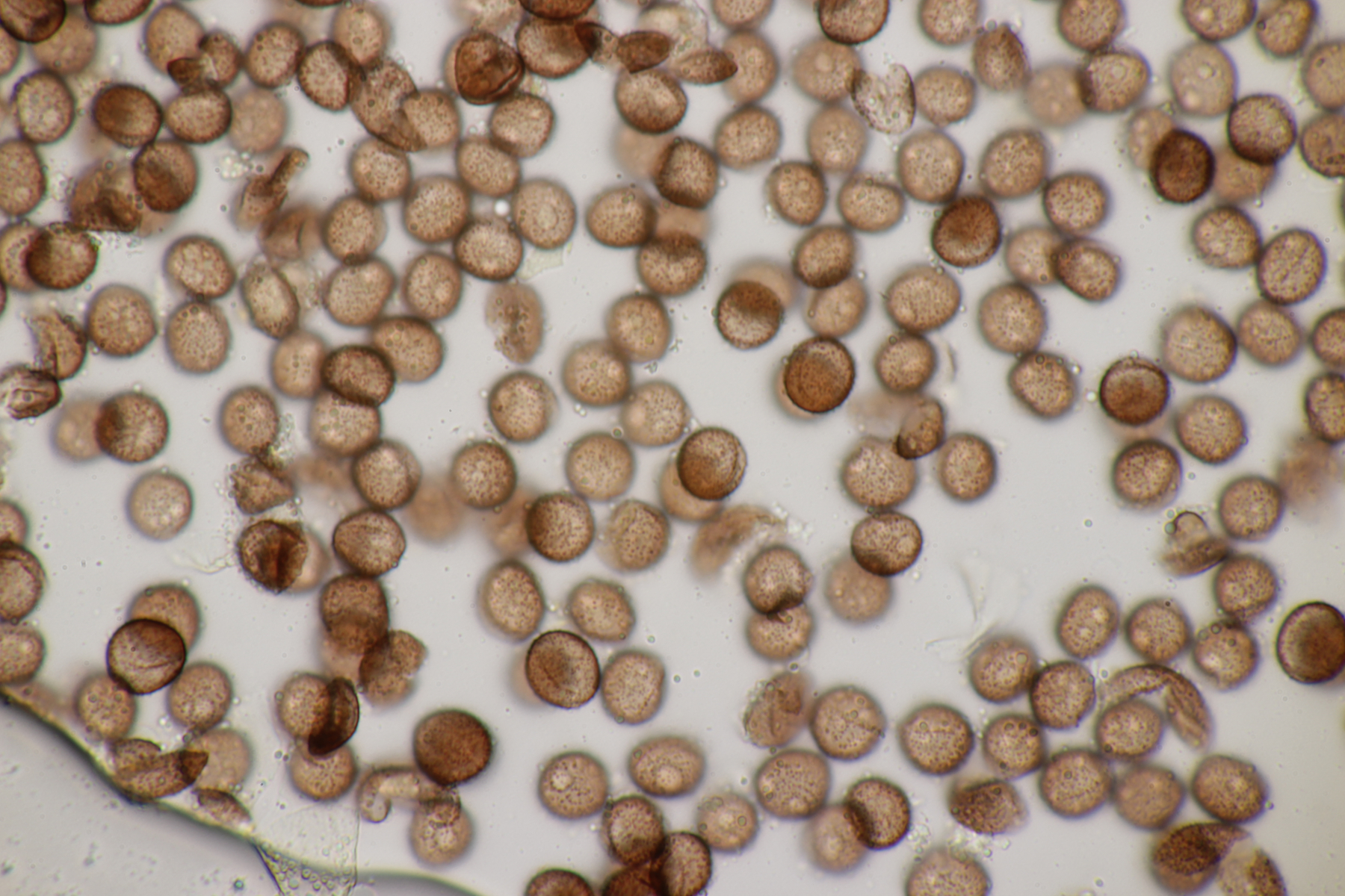 4. Eine weiße Tricholoma unter Quercus. Der Geruch war eher angenehm, so daß ich den Fund unter Tricholoma album ablegen würde. Sporengröße (6.1+-0.4) µm x (3.8+-0.2) µm, Q=1.6+-0.1 bzw. (5.3-6.8) µm x (3.4-4.2) µm, Q=1.4-1.7