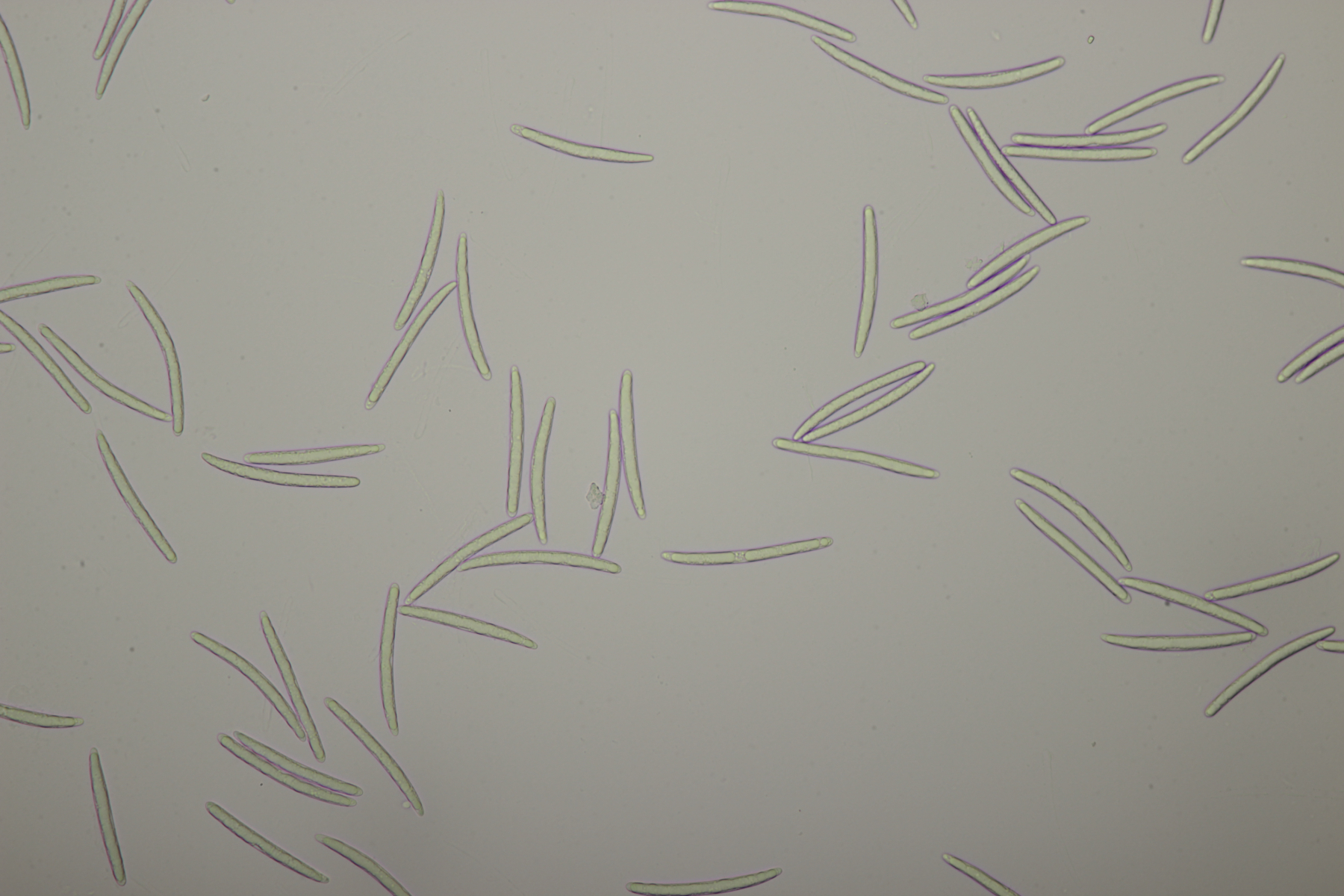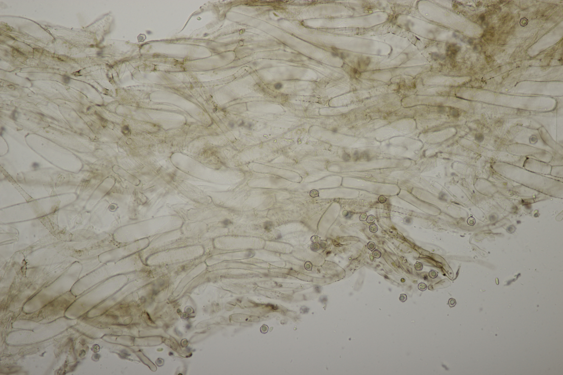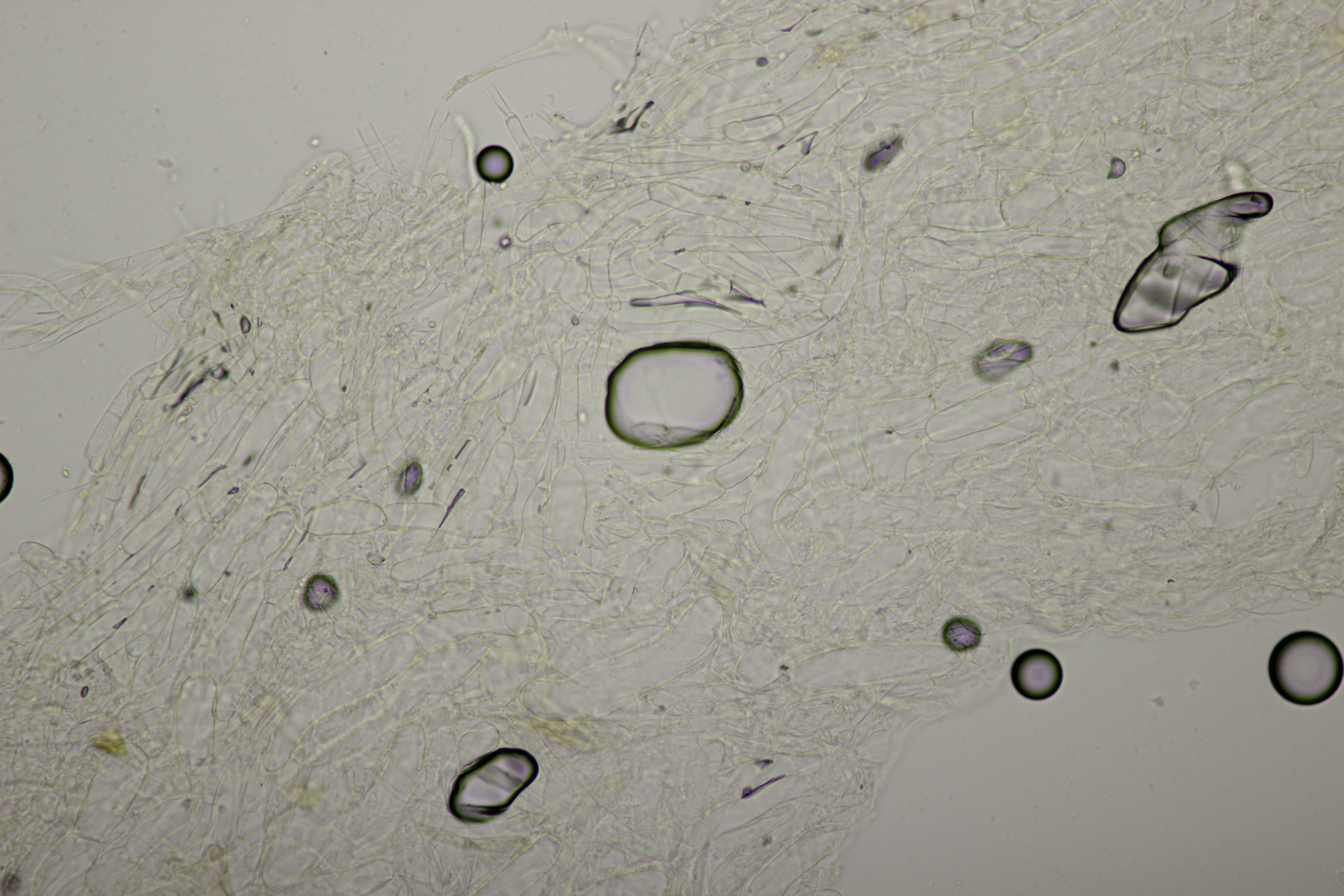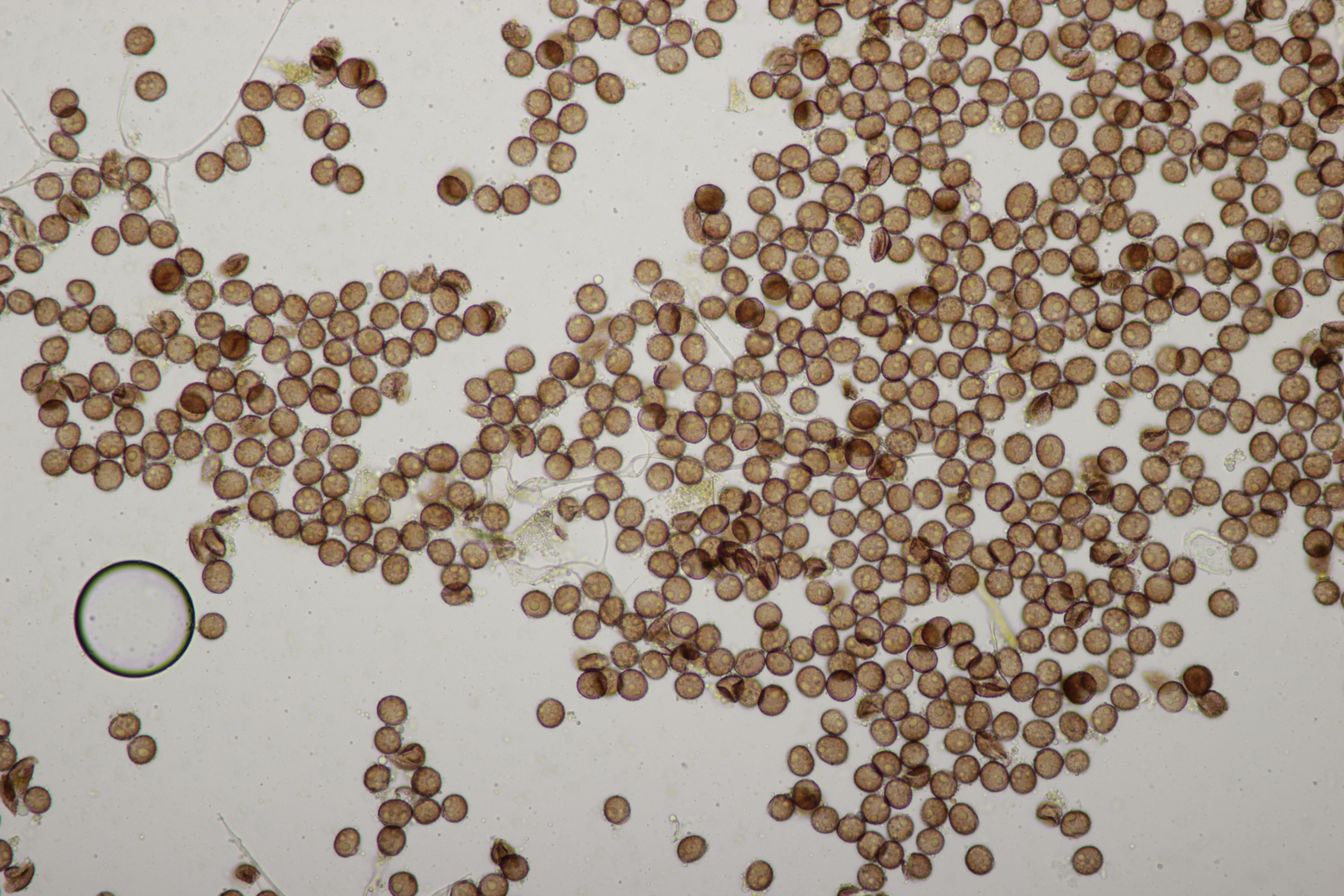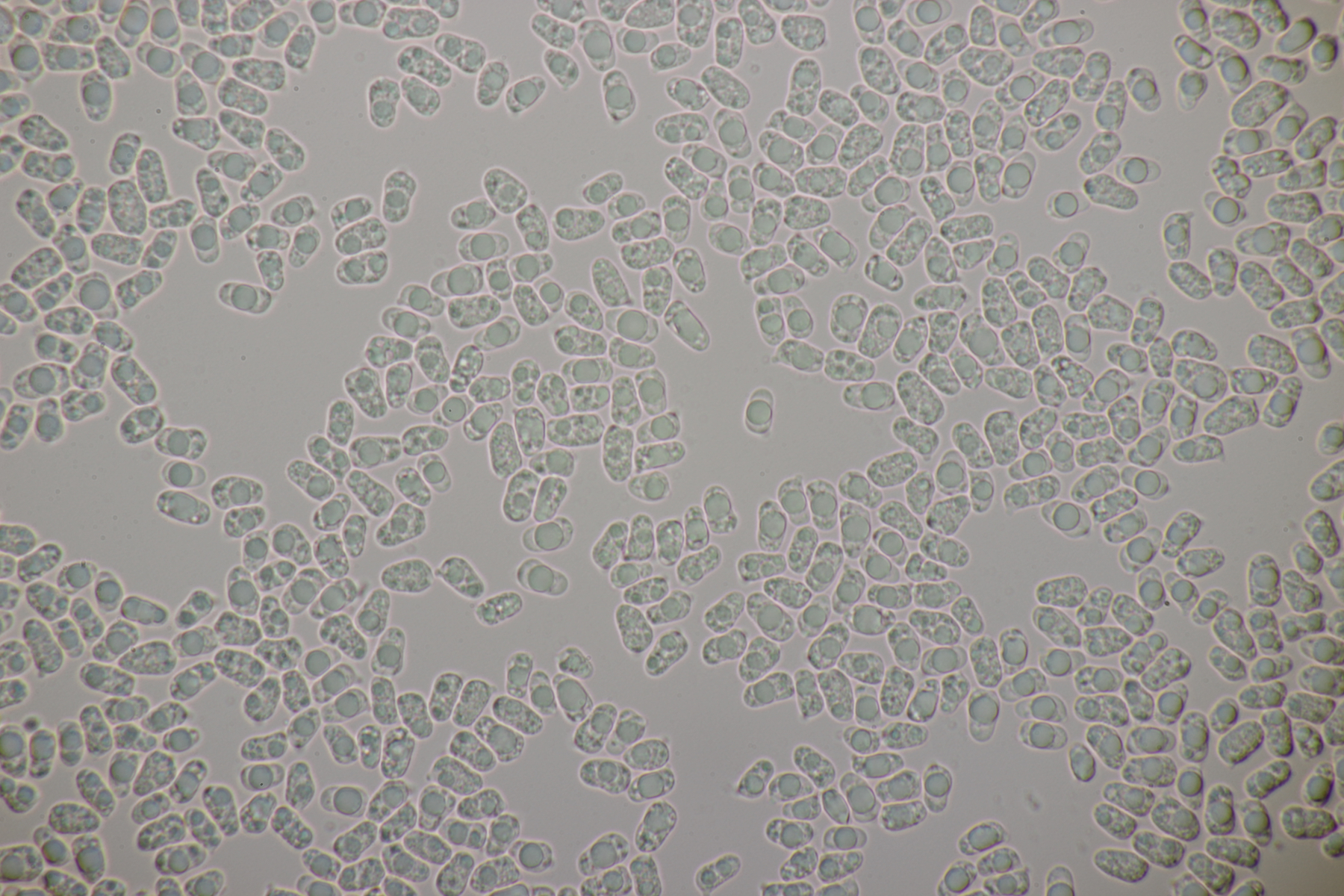 4. Eine weiße Tricholoma unter Quercus. Der Geruch war eher angenehm, so daß ich den Fund unter Tricholoma album ablegen würde. Sporengröße (6.1+-0.4) µm x (3.8+-0.2) µm, Q=1.6+-0.1 bzw. (5.3-6.8) µm x (3.4-4.2) µm, Q=1.4-1.7