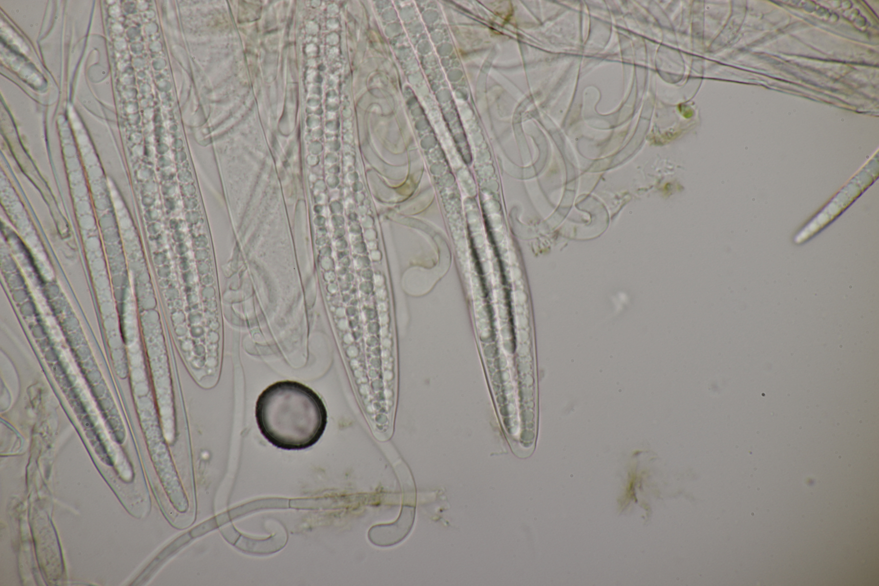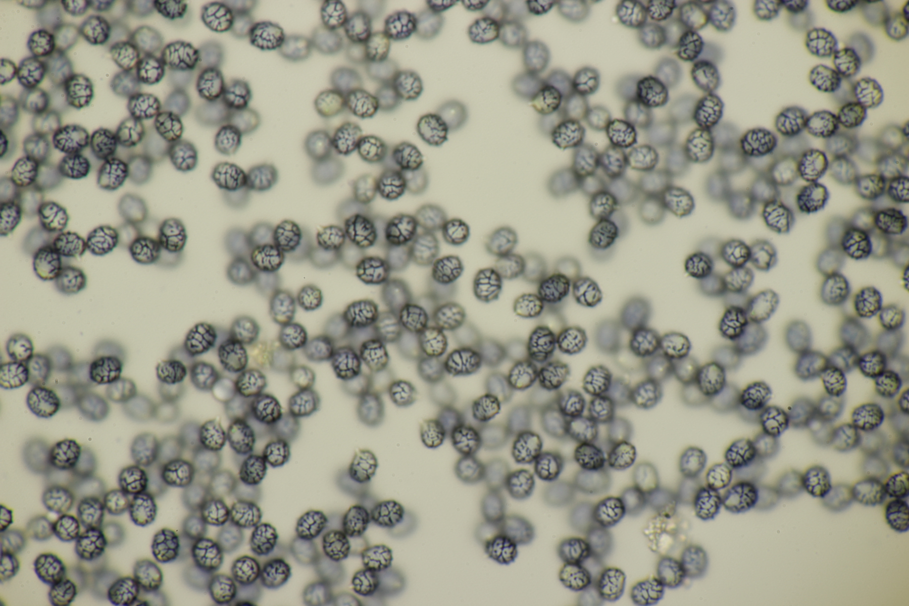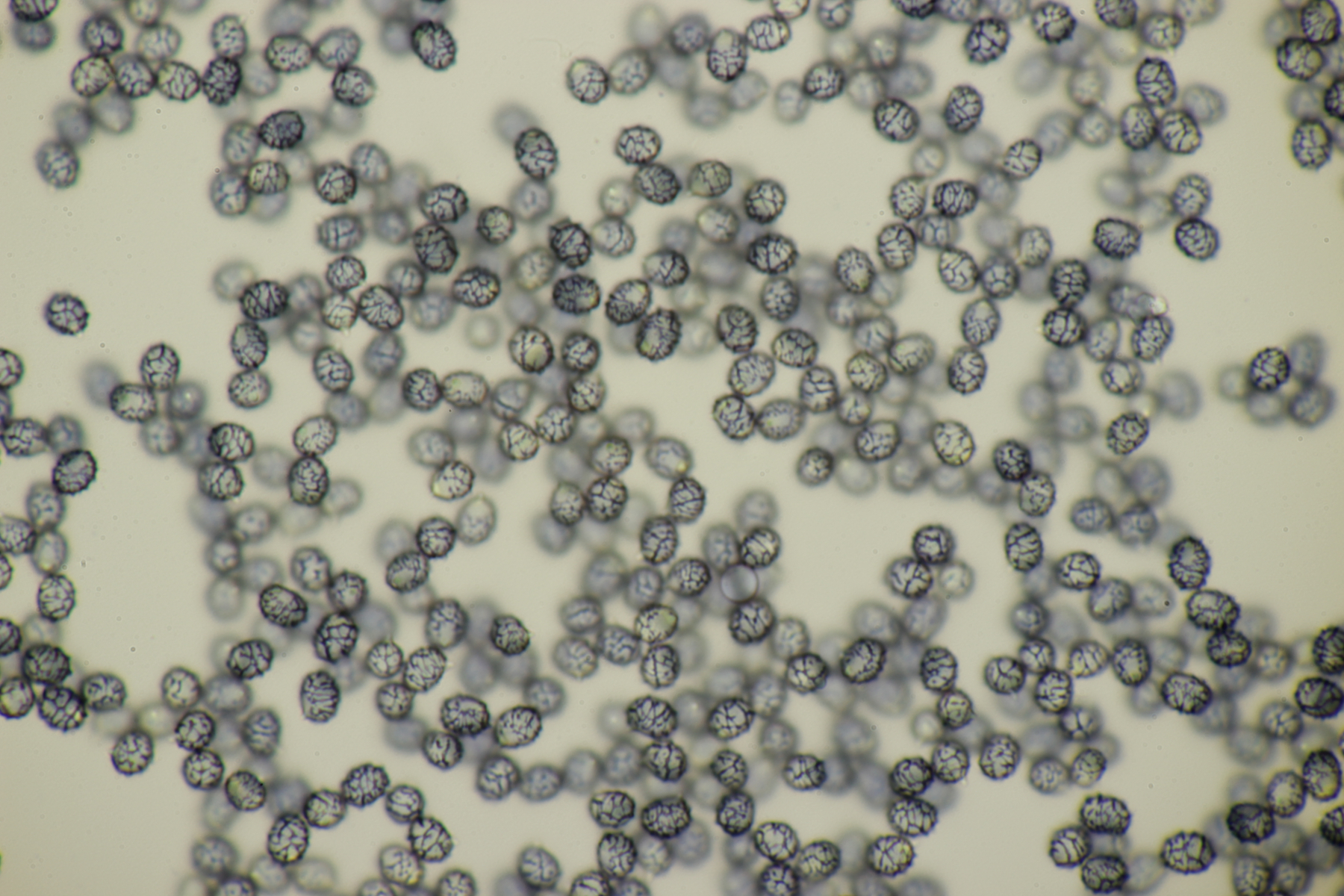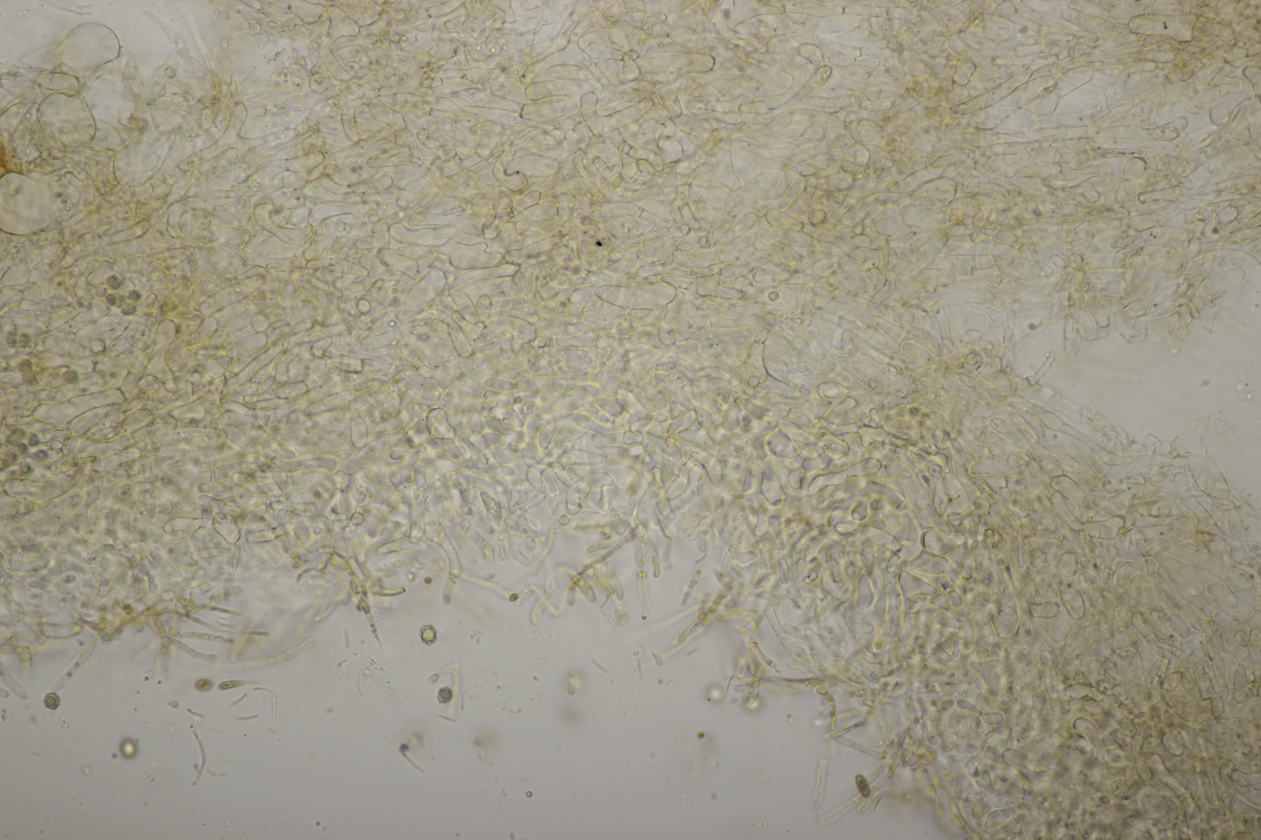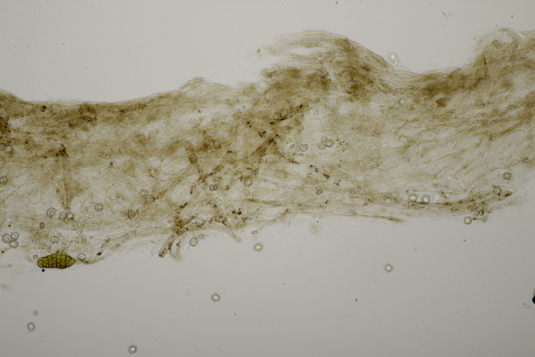 4. Eine weiße Tricholoma unter Quercus. Der Geruch war eher angenehm, so daß ich den Fund unter Tricholoma album ablegen würde. Sporengröße (6.1+-0.4) µm x (3.8+-0.2) µm, Q=1.6+-0.1 bzw. (5.3-6.8) µm x (3.4-4.2) µm, Q=1.4-1.7