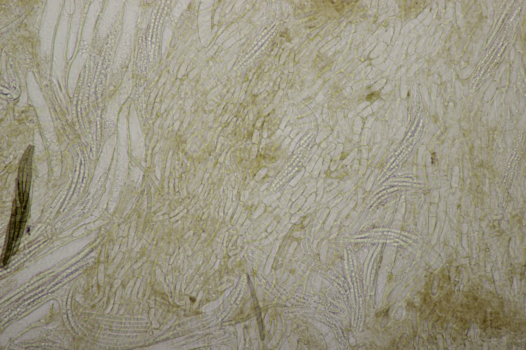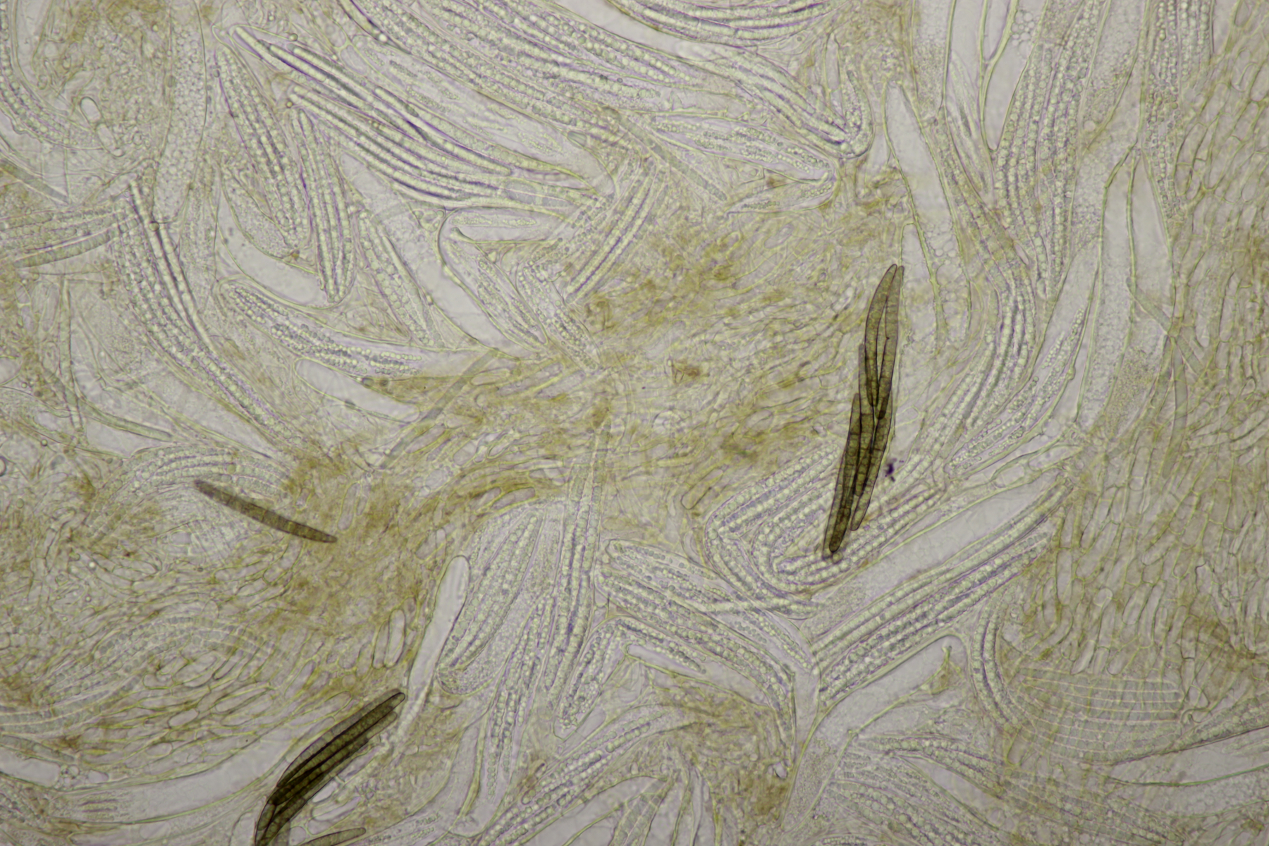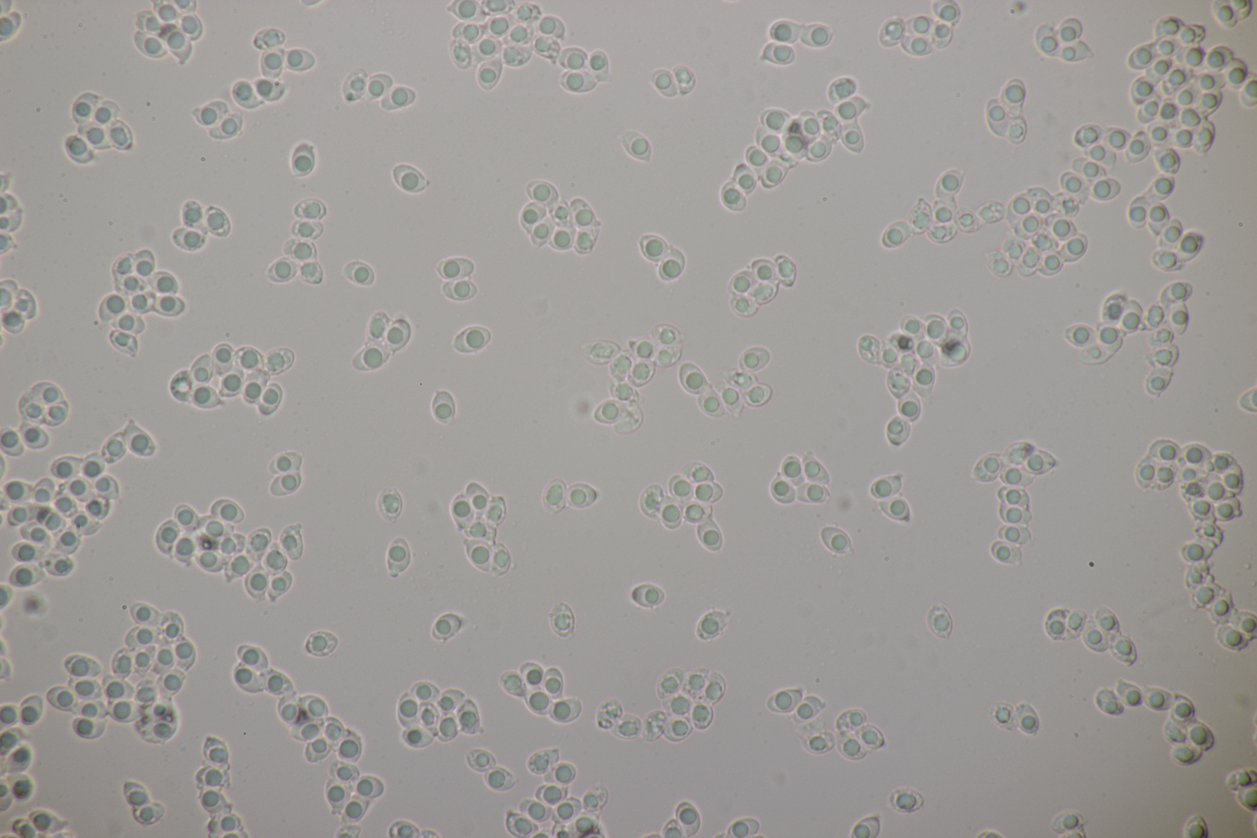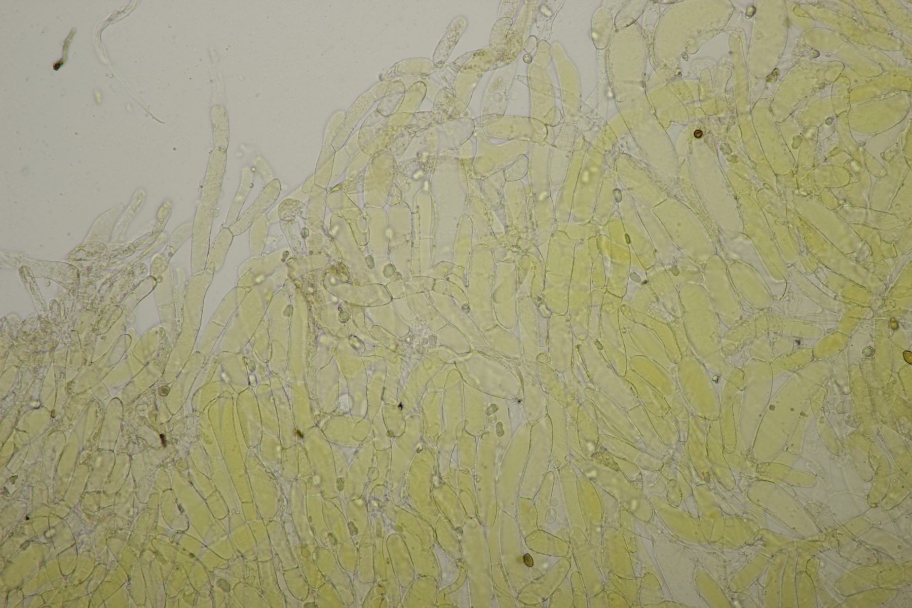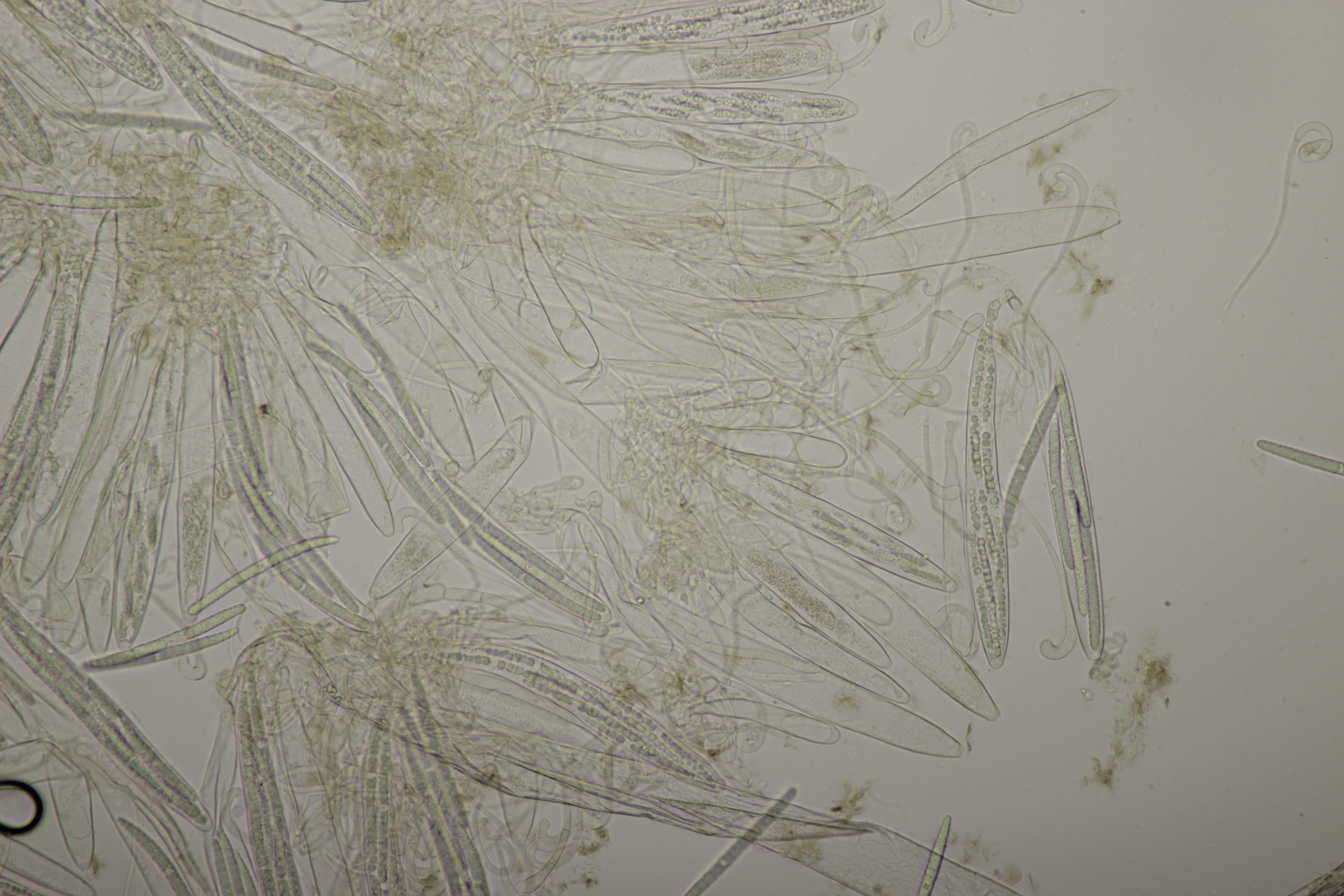 4. Eine weiße Tricholoma unter Quercus. Der Geruch war eher angenehm, so daß ich den Fund unter Tricholoma album ablegen würde. Sporengröße (6.1+-0.4) µm x (3.8+-0.2) µm, Q=1.6+-0.1 bzw. (5.3-6.8) µm x (3.4-4.2) µm, Q=1.4-1.7