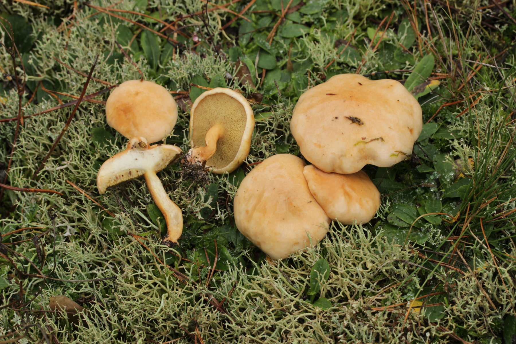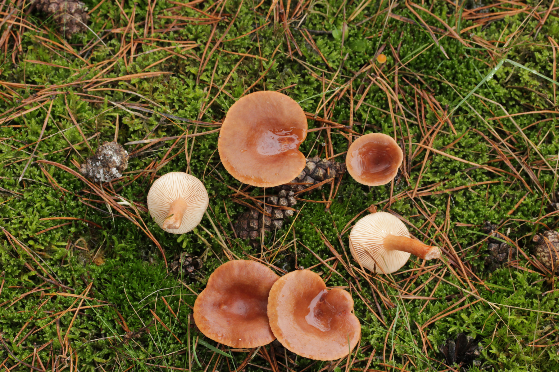 11. Unter Pinus sylvestris, milder Geschmack, gilbende Milch. Da lande ich bei Lactarius hepaticus