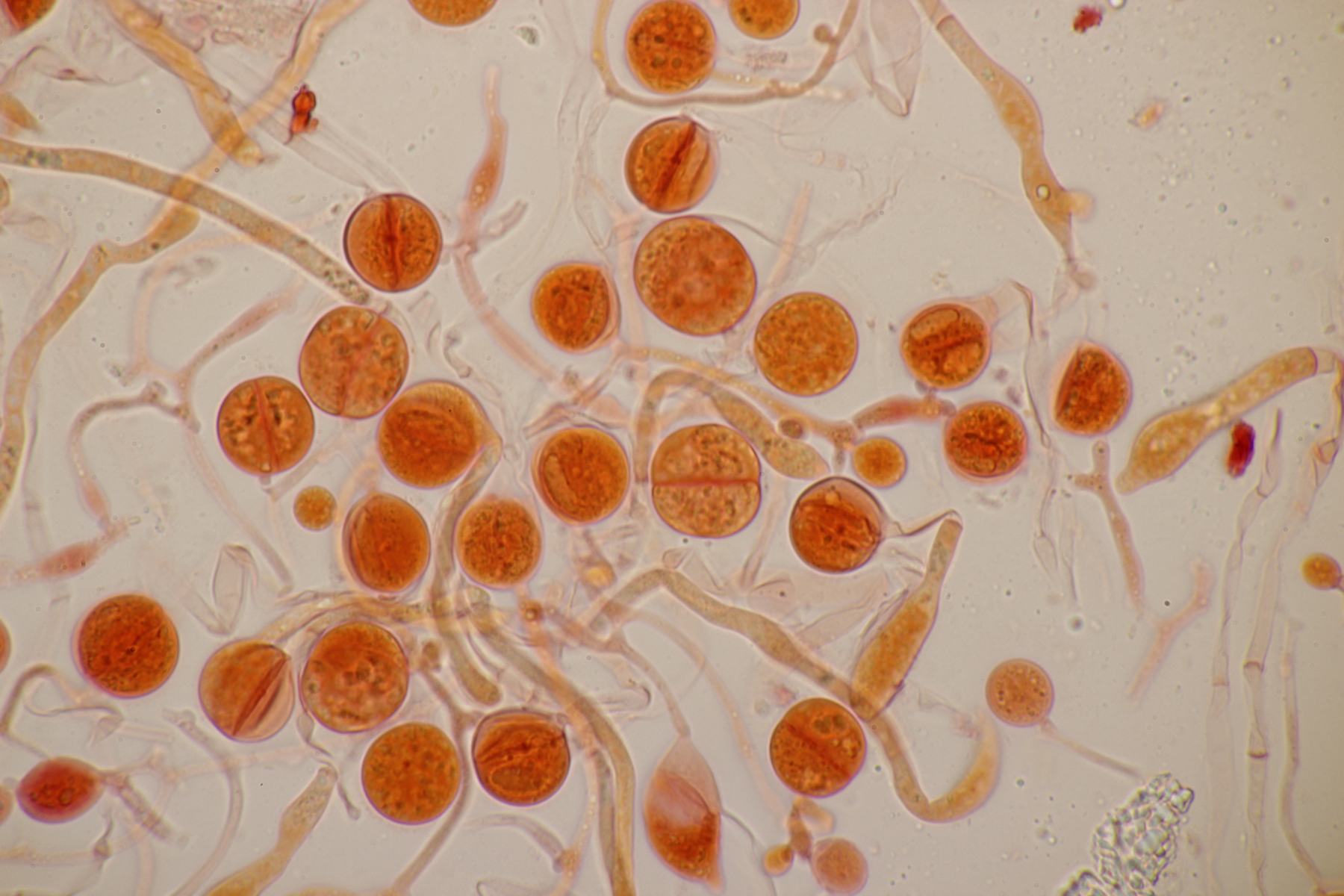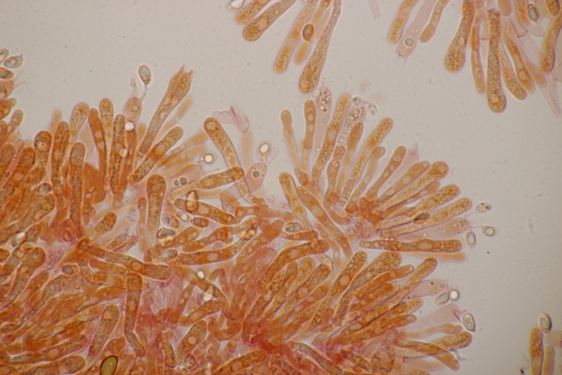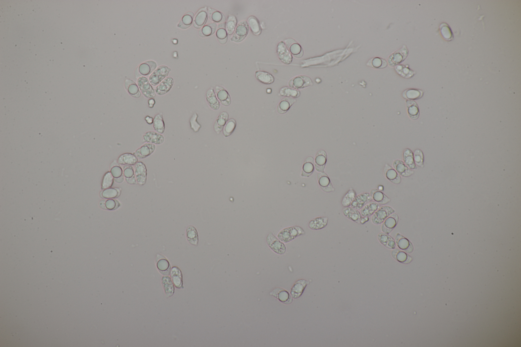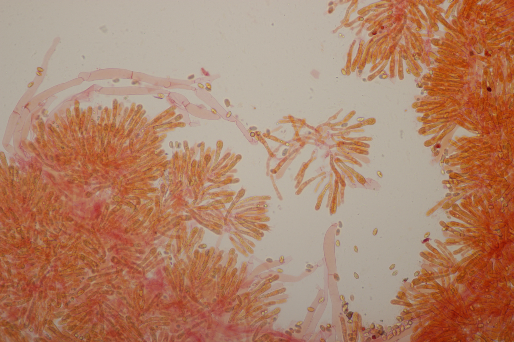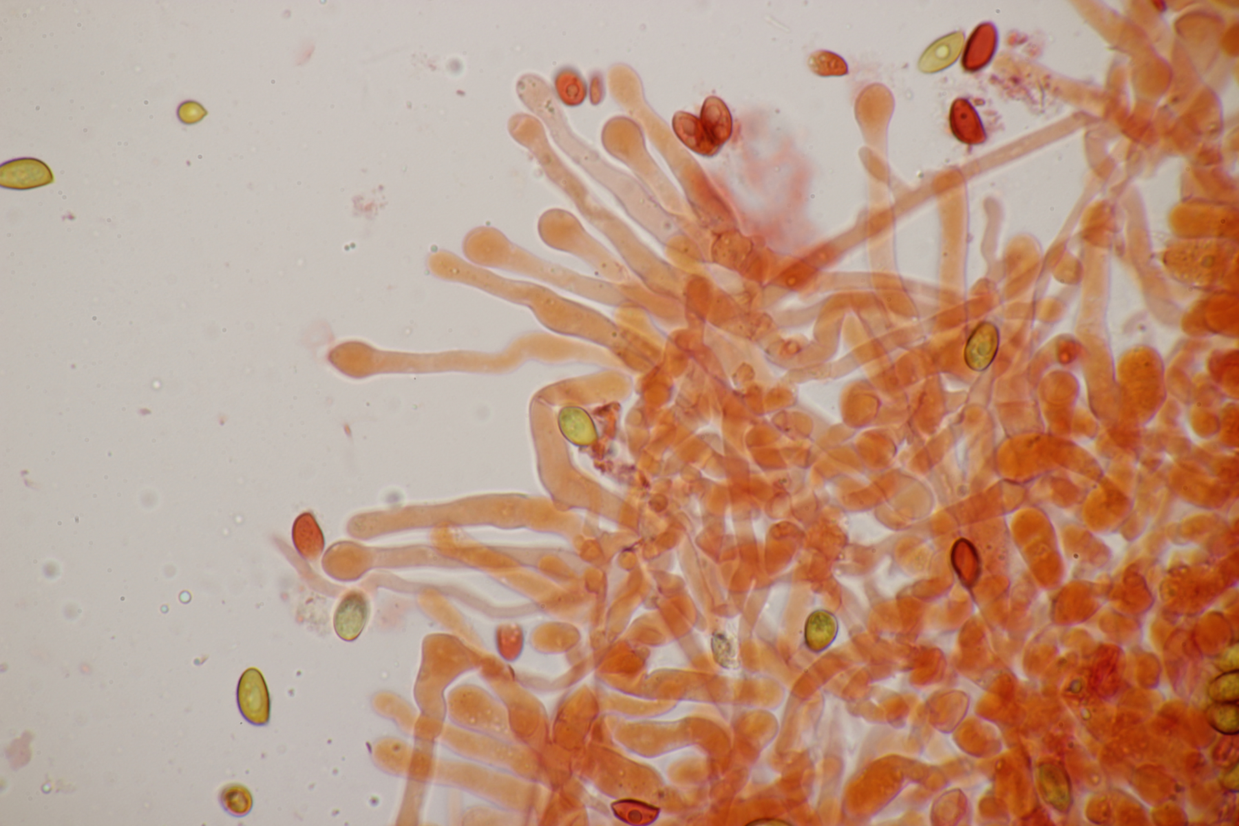 1. Calocera furcata an Pinus sylvestris, Sporen (12.3+-0.9) µm x (4.3+-0.2) µm, Q=2.9+-0.2 bzw. (10.7-13.7) µm x (3.9-4.7) µm, Q=2.6-3.4