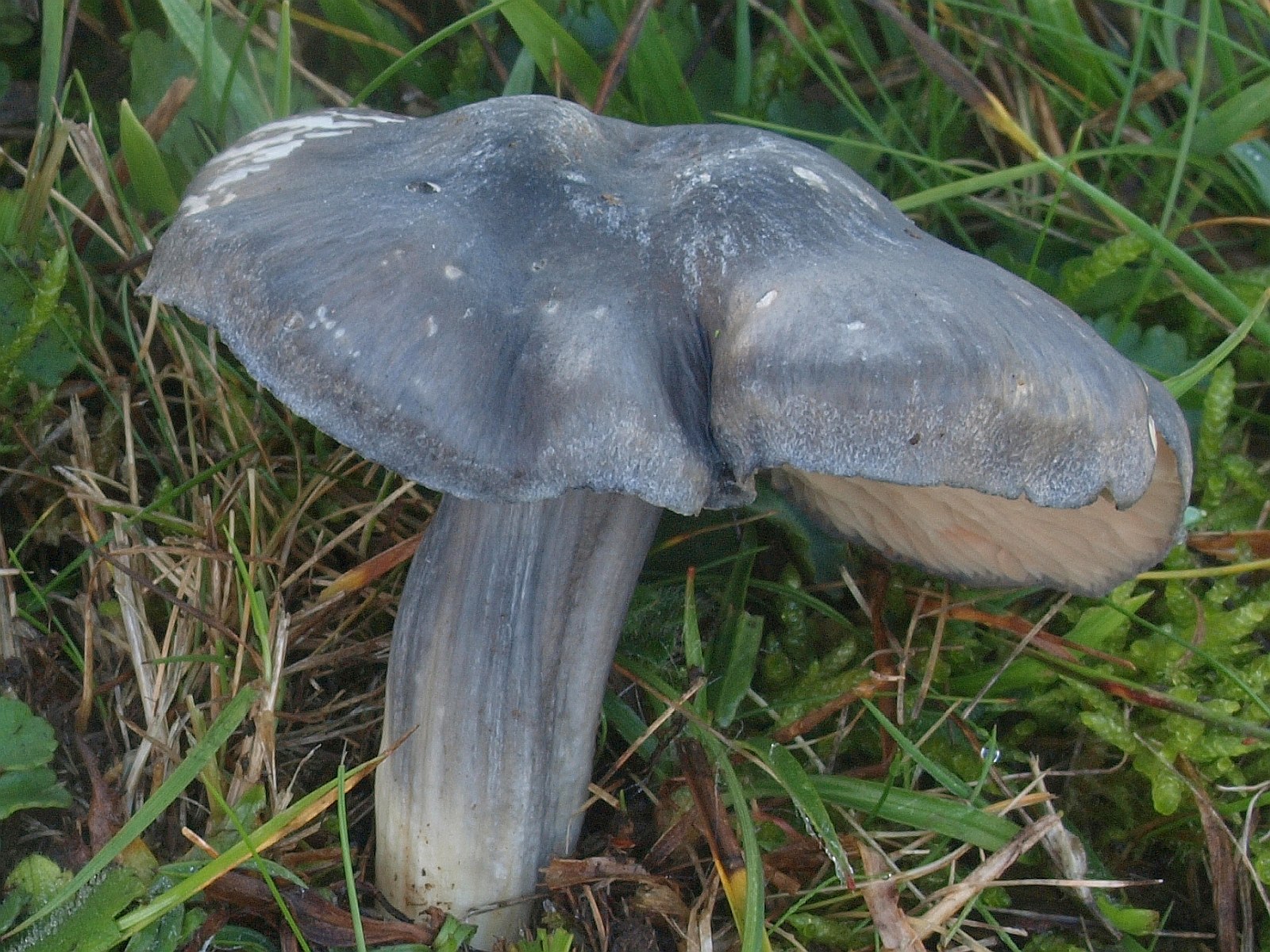 Große Freude beim Anblick des Blauen Rötlings (Entoloma bloxamii) Nach erneutem Fund 2021 an gleicher Stelle und genauer Untersuchung E. atromadidum