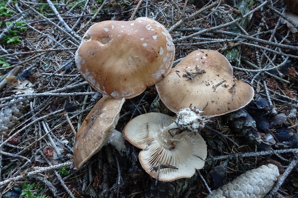 danke Dir für die Bestätigungen. Zu Nr.2 kann ich noch sagen, dass beim jüngeren Fruchtkörper mit den blauen Lamellen etwas von der Knolle im Boden geblieben ist. Ich hätte den Rest wohl doch herausbuddeln sollen um letzte Gewissheit über die Knollenform zu haben.