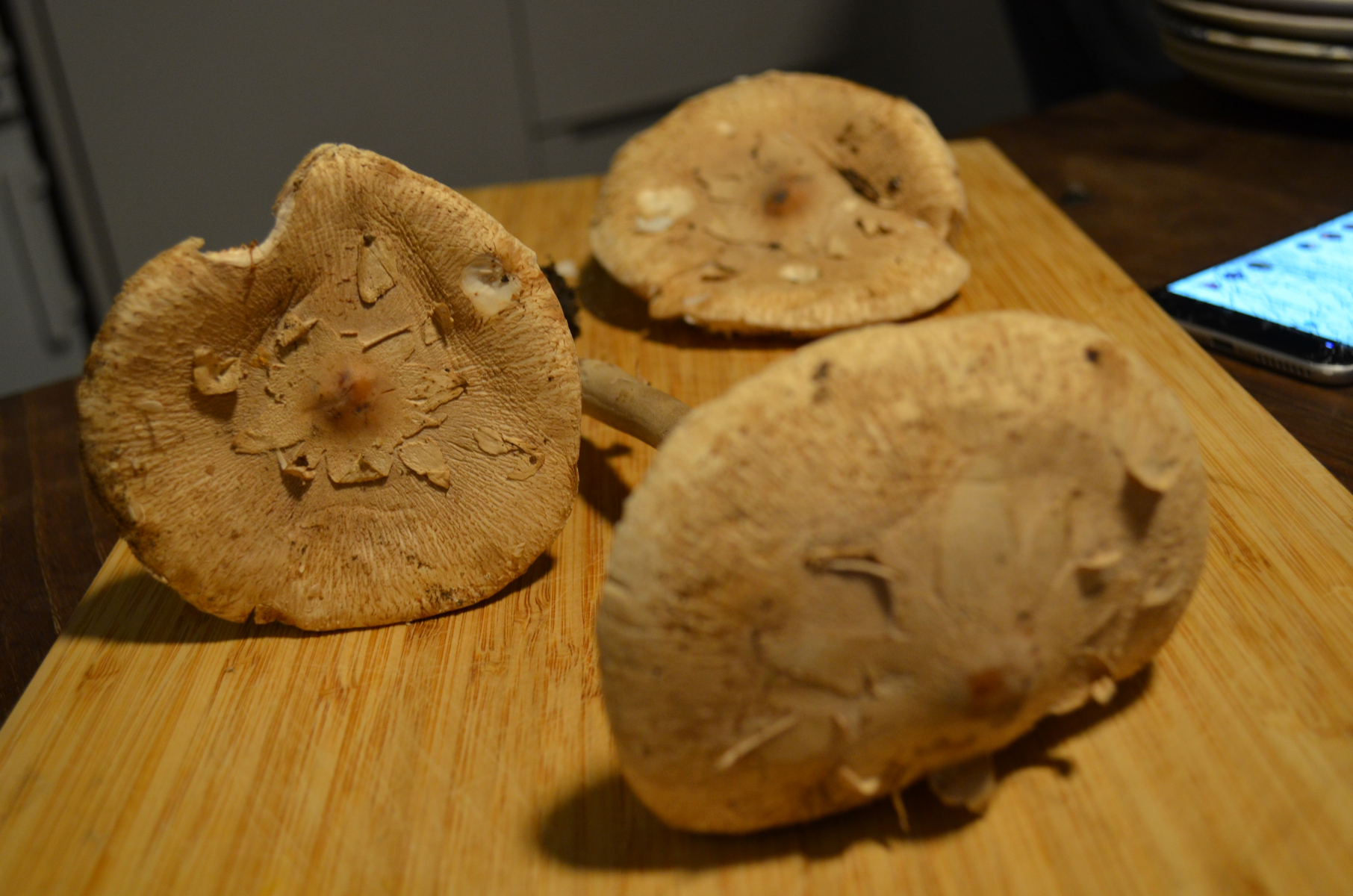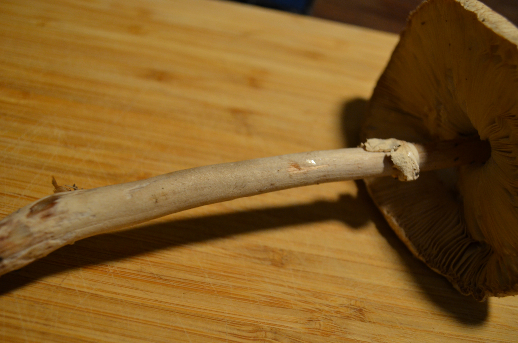 Wir haben heute zum einen Parasolpilze gesammelt. Diese färben sich nach Anschnitt wie beschrieben nicht an, allerdings fehlt die typischerweise beschriebenene Natterung.
