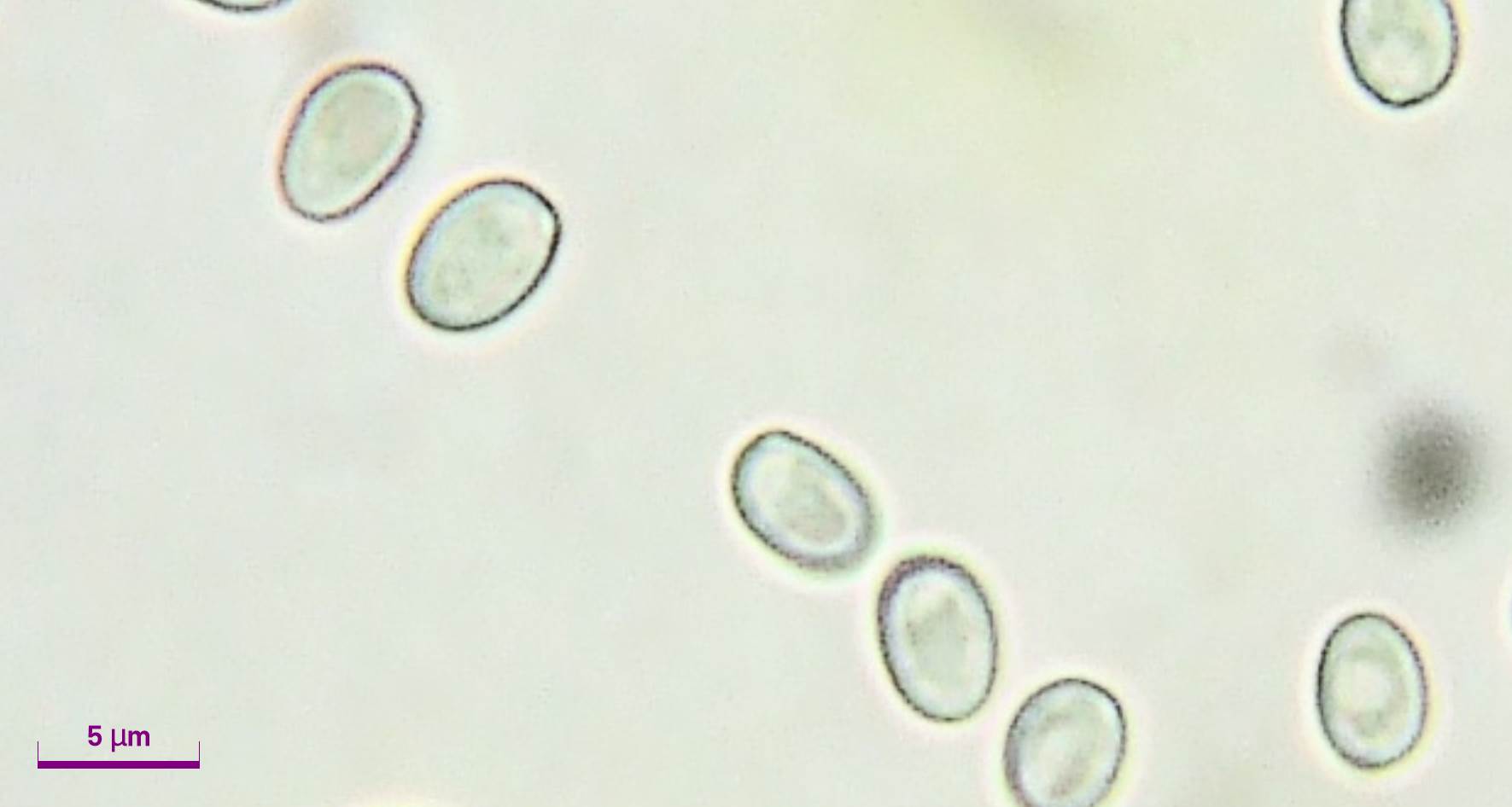 Die Sporen sind farblos, dextrinoid und messen: 5.4 × 3.7 µm ; Q = 1.4
