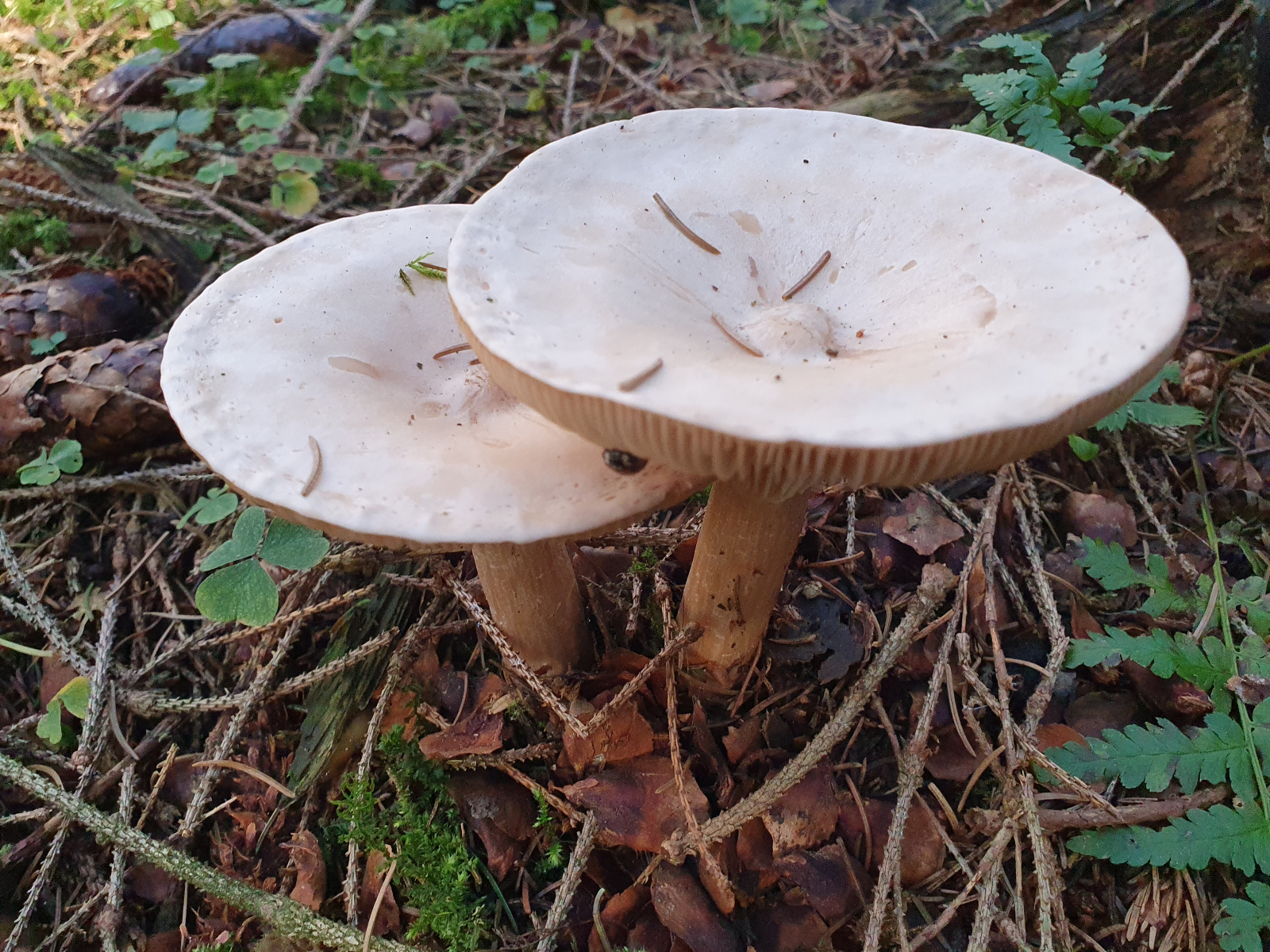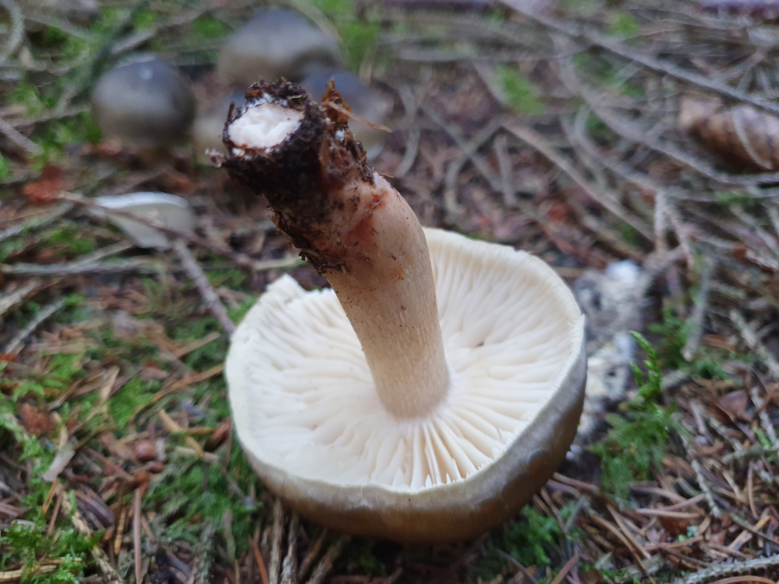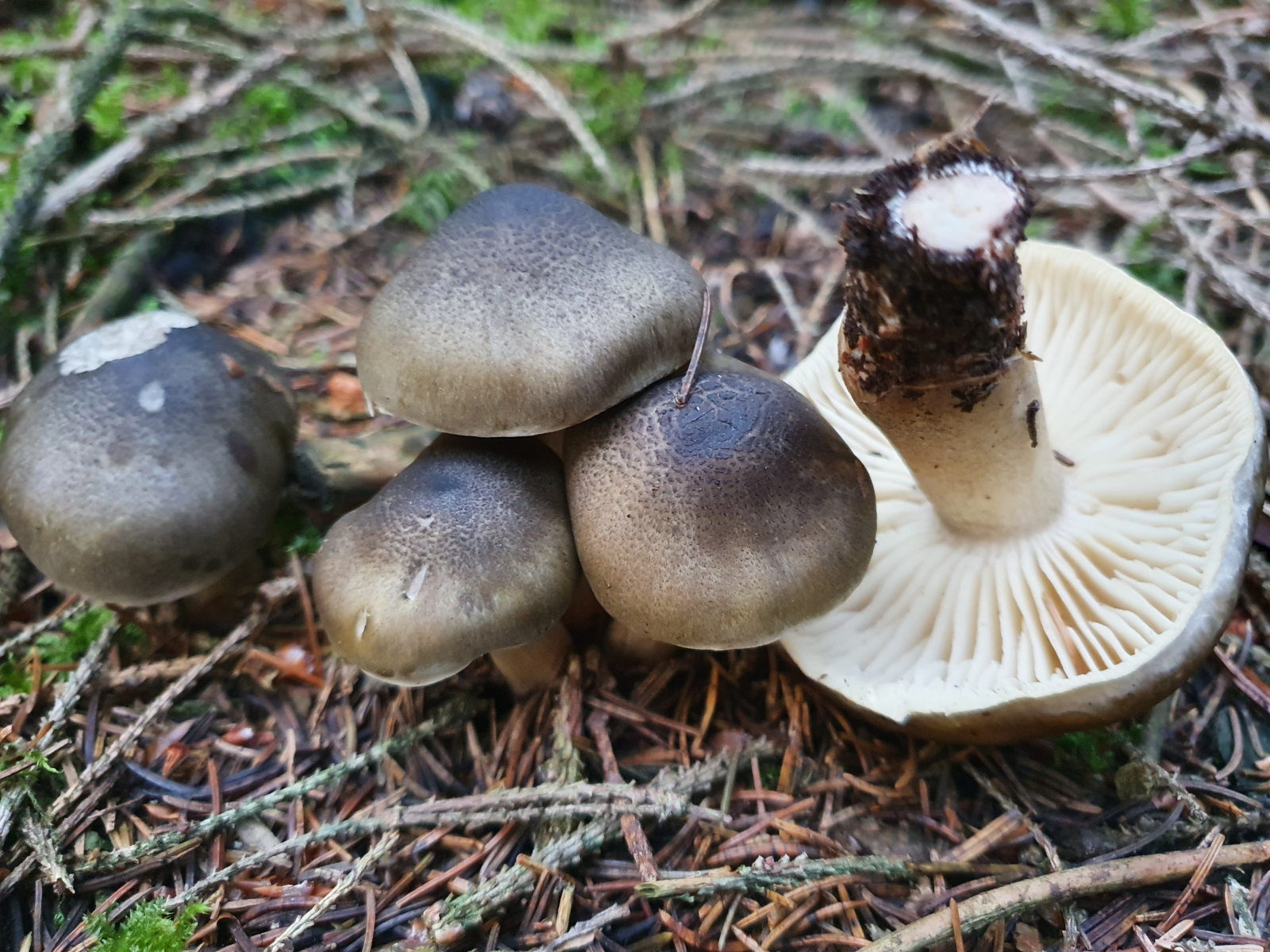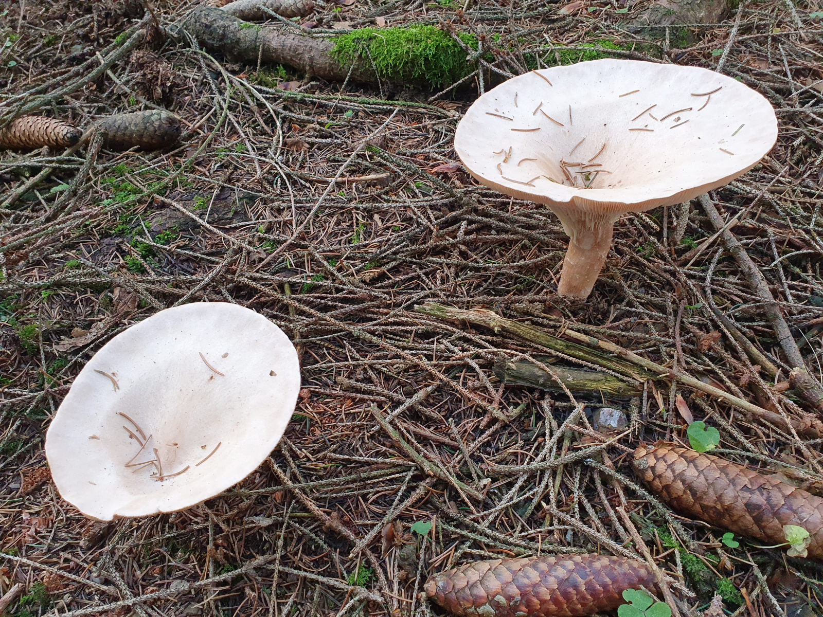 1) Unter Fichten, dort hab ich so einen noch nie gesehen. Denke an Tricholoma, evtl. Erdritterling? Geruch keinen wahr genommen.