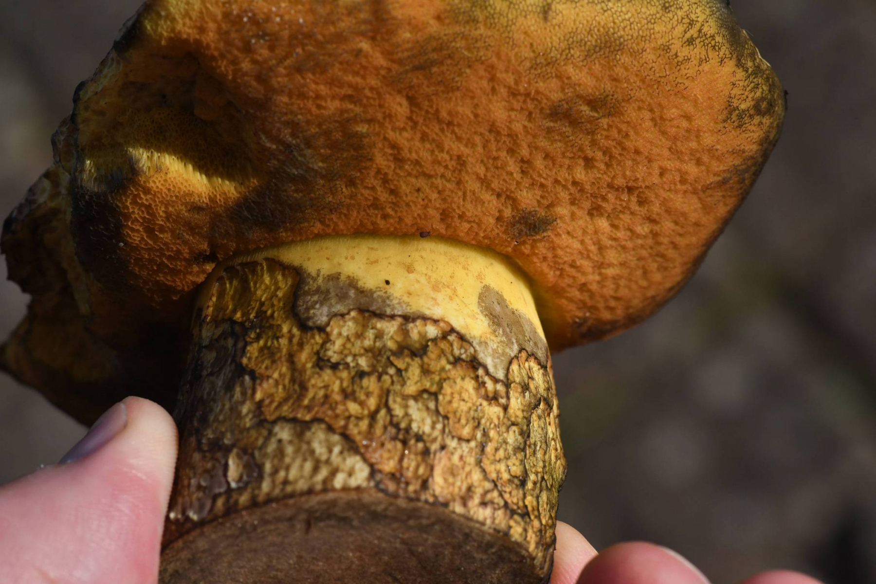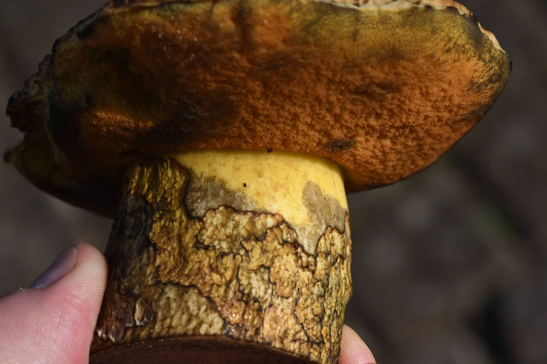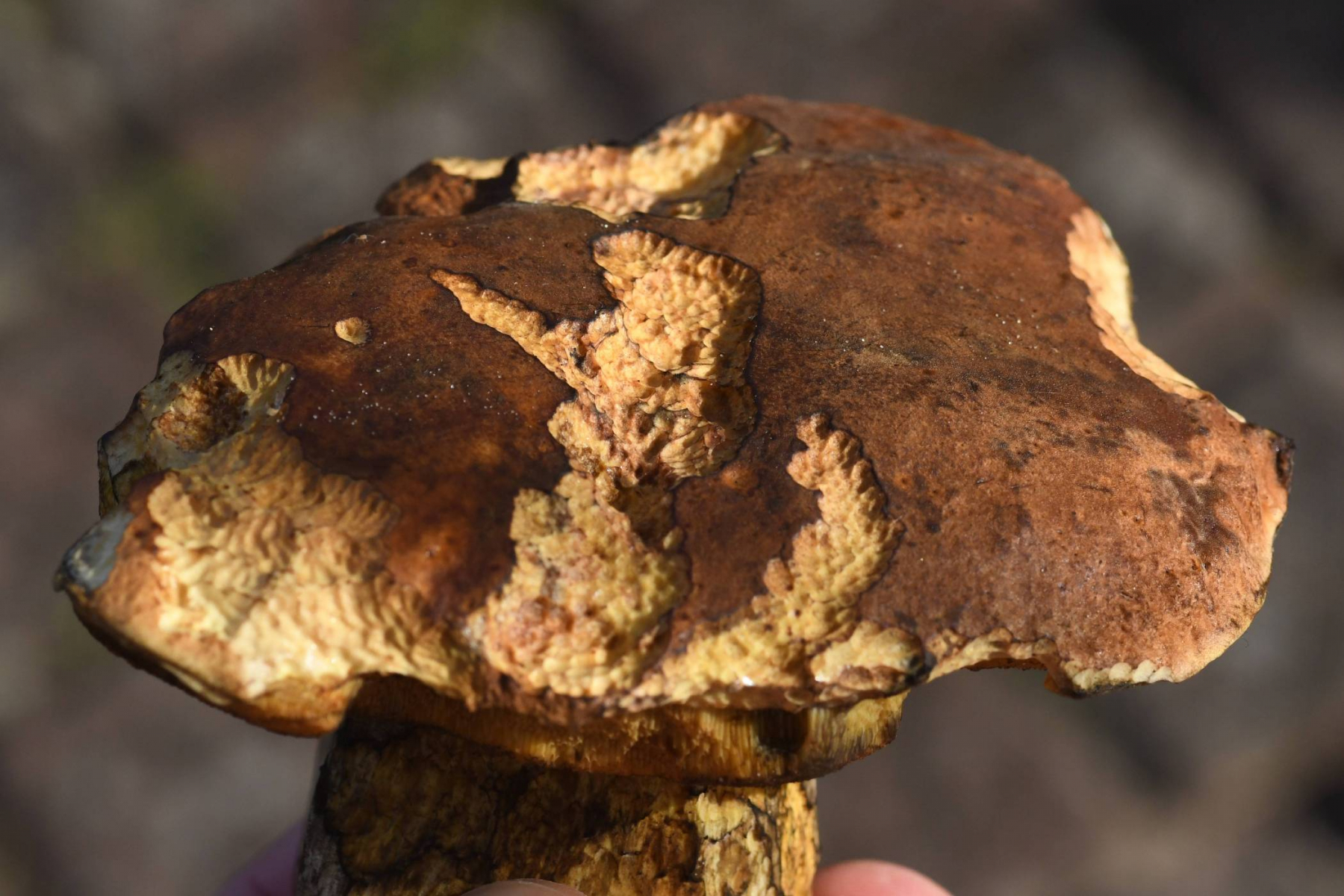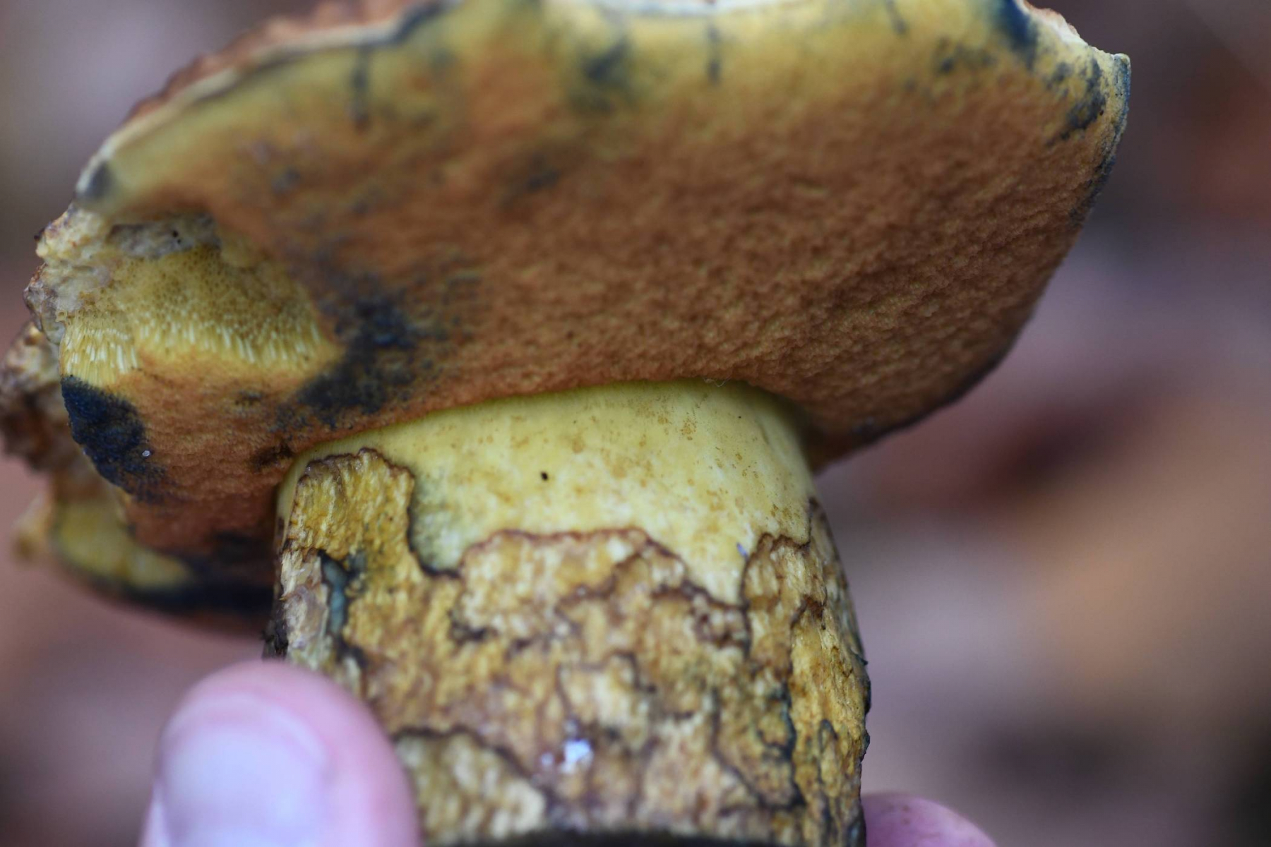 Diesen kann ich nicht bestimmen. In der Nähe (etwa 100 m weiter) stand auch ein recht typisch ausgeprägter Neoboletus erythropus, aber dies scheint eine andere Art zu sein.