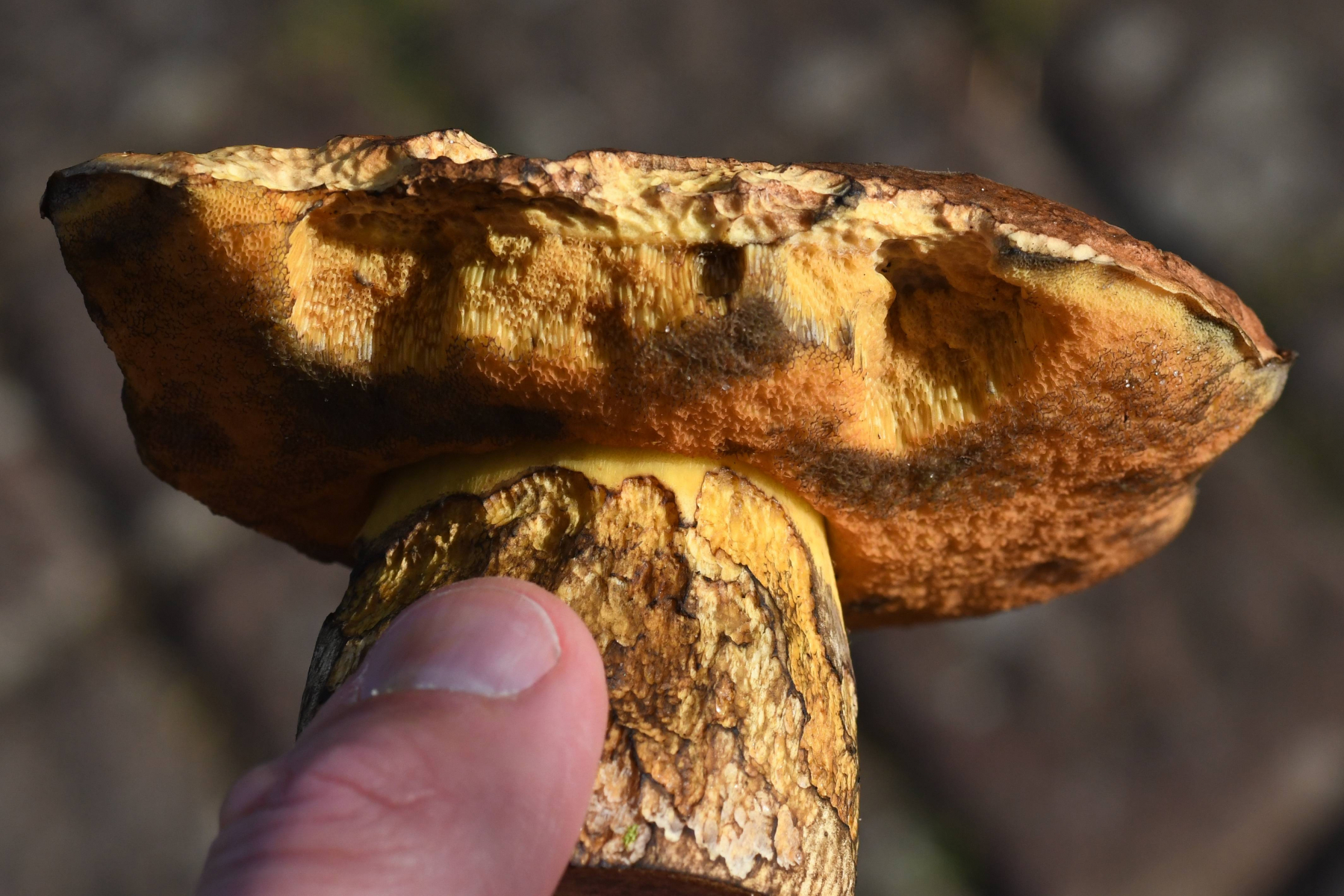 habe das Thema jetzt erst gesehen... Ich denke hier auch eher an Neoboletus xanthopus (bei beiden gezeigten Fruchtkörpern). Wie ist bei dir das Klima? Eher warm/trocken oder kalt/nass oder ...?