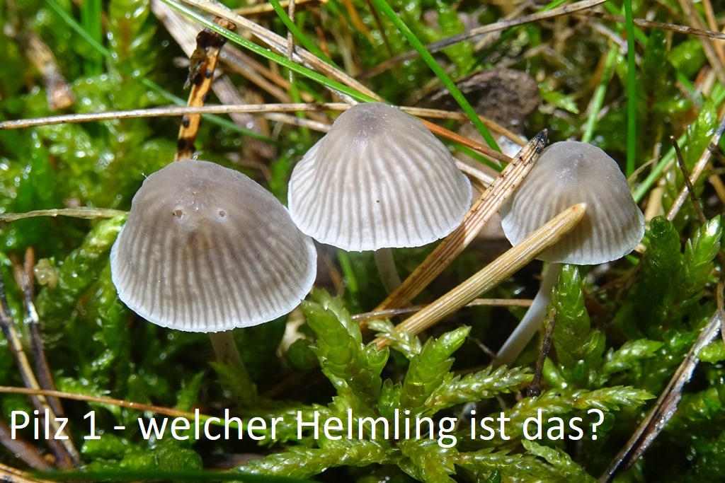 auch ohne Mikro, der Helmling ist eine typische Mycena cinerella. Wenn man die mal kennt, bekommt man die außer bei sehr atypischen Exemplaren eigentlich ohne größere Probleme hin. Im Zweifel kann man dran riechen, der mehlige Geruch enttarnt die Art dann normalerweise sehr schnell. Ansonsten sind herablaufende Lamellen (halbwegs im zweiten Bild zu erahnen), die starke Streifung, weder Hut noch Stiel schleimig und oft (aber nicht immer) eine leicht weißliche Bereifung am Hut (hier nicht klar zu sehen) typisch.