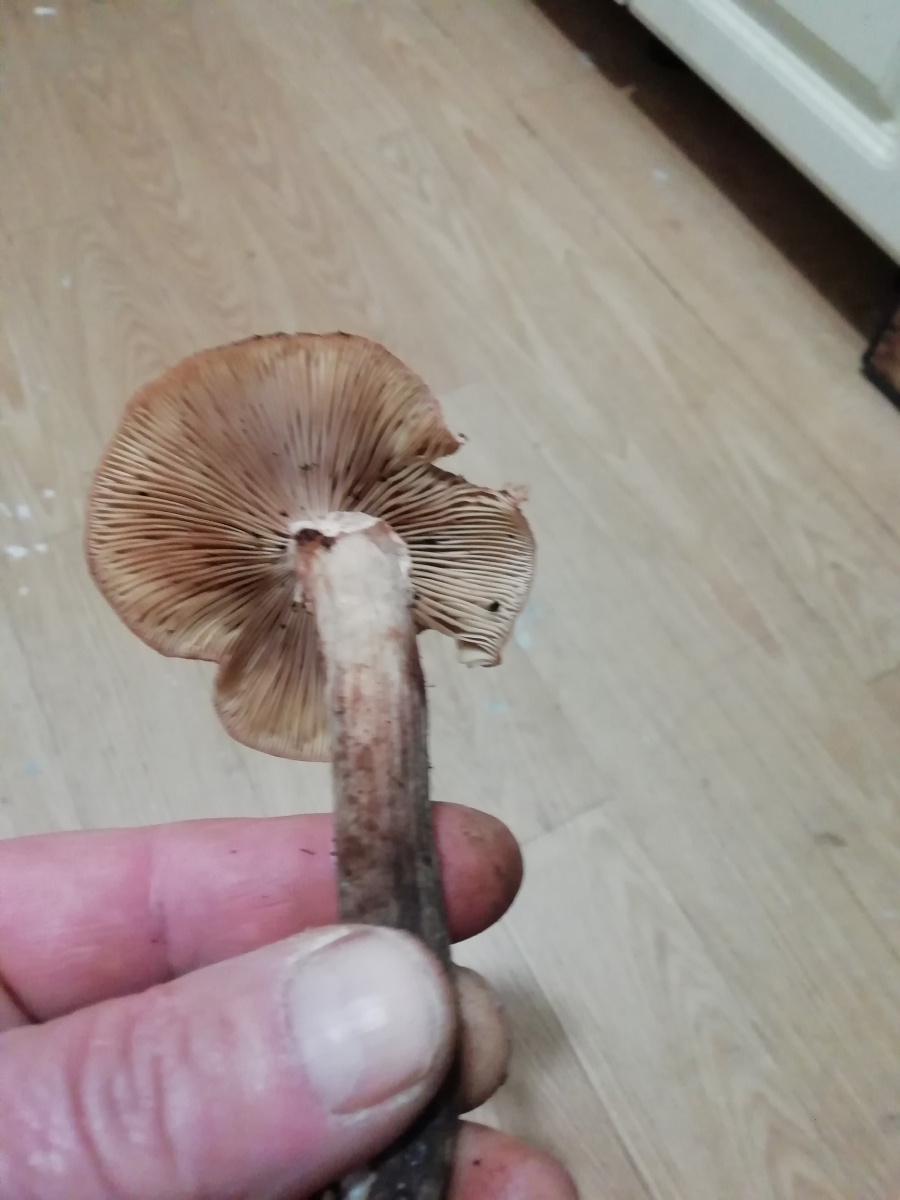Armillaria cf ostoyae; deine App ist Mist. Die angezeigten Pilze sind nicht mal annähernd ähnlich oder nahe verwandt mit deinem Fund.