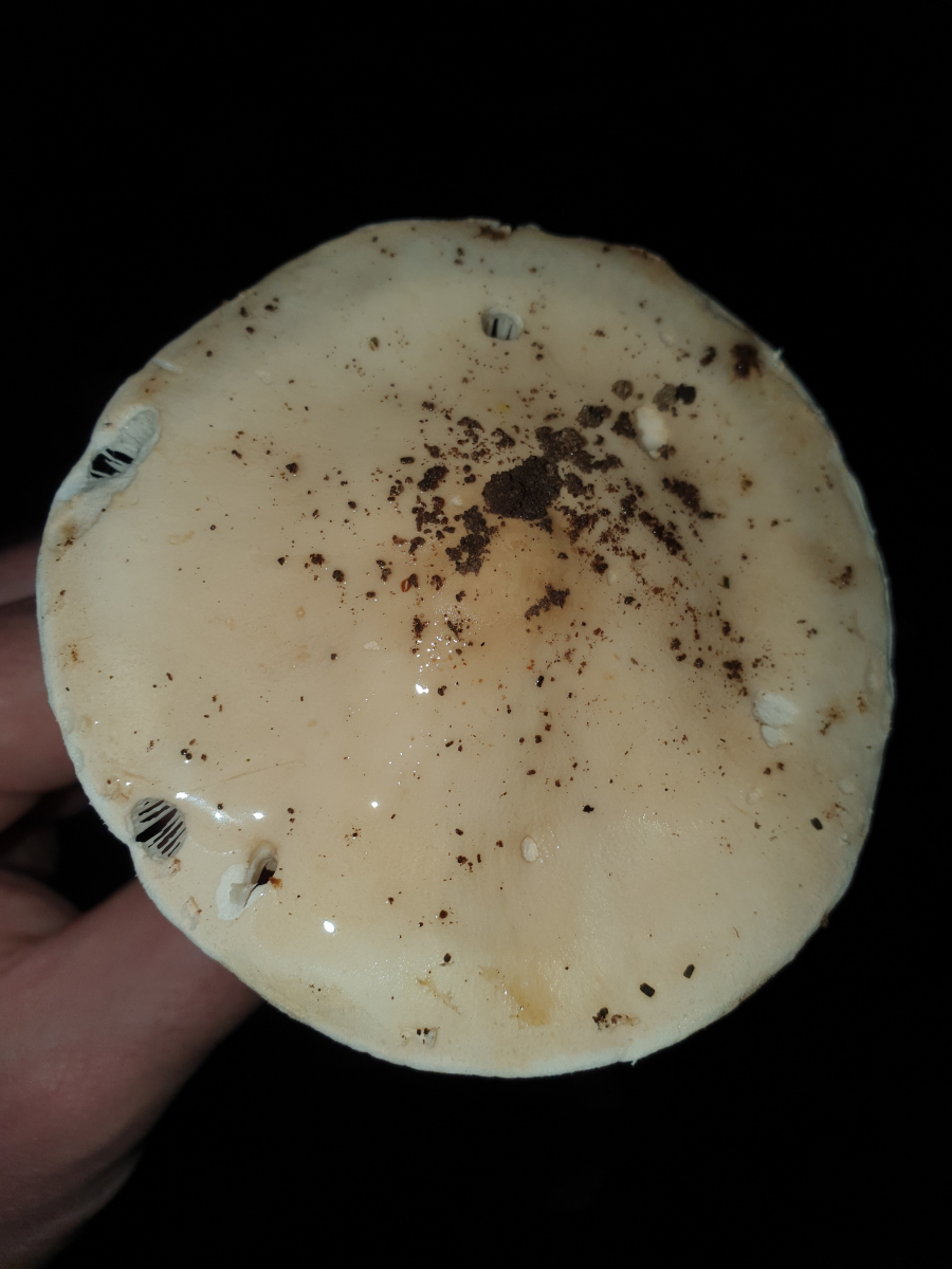 Hallo zusammen, habe eine sehr schöne, stattliche Amanita gefunden. Die bekomme ich nicht unter. Dachte im Feld an den Isabellfarbenen Wulstling, der ist mir noch nie untergekommen. Der Blick in Ludwig lässt jedoch zweifeln. Kein geriefter Hutrand. Die Farben sind eher rosalich. Ganz blass, sonst fast weiß. Das Bild gibt das richtig wieder. Auch fällt auf, das der Hut seeehr schleimig ist.