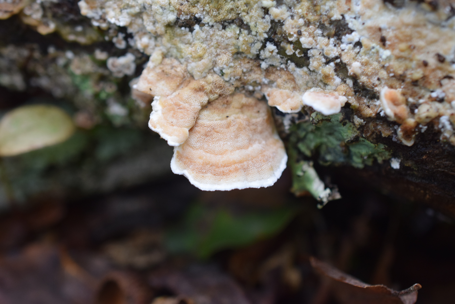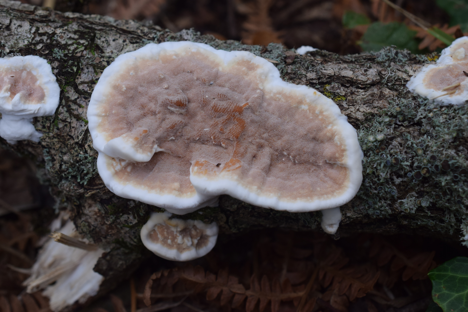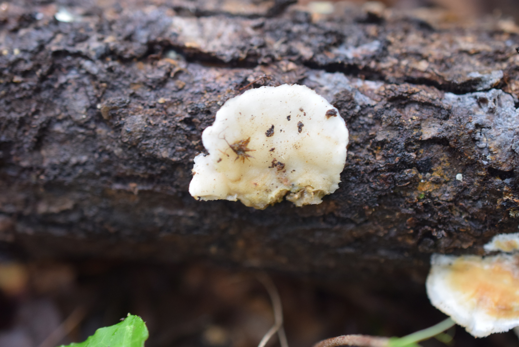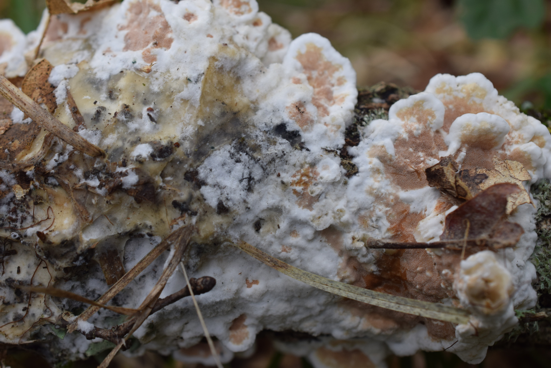 5. Leider nicht optimale Bilder . Interessante Pilz . An tote liegende Laubast ( meine das um Eichenast gehet ) gefunden . Keine Lamellen wie bei Crepidotus sp , auch keine harte Unterseite wie bei Stereum sp. Hab auch keine Poren wie bei Tramete gesehen . vielleicht junge Frk mit noch nicht formierte Unterseite . Frk weich ohne besondere Geruch