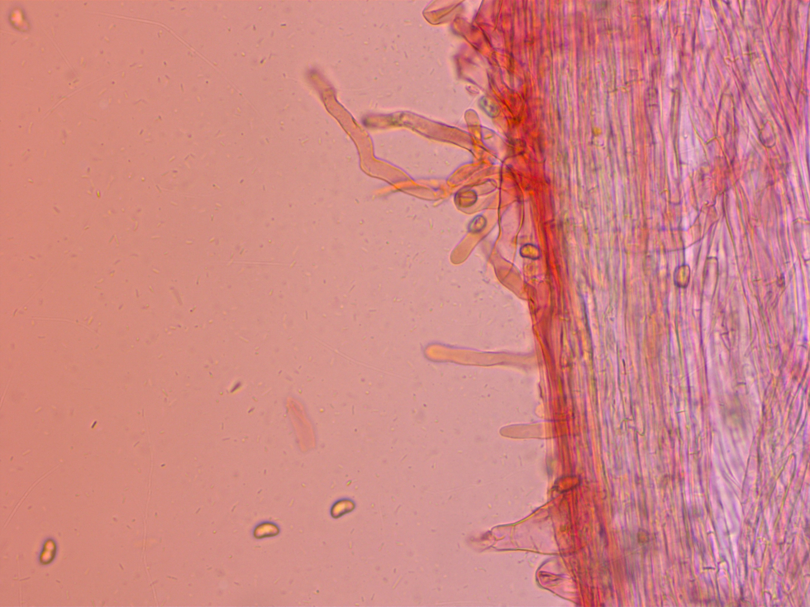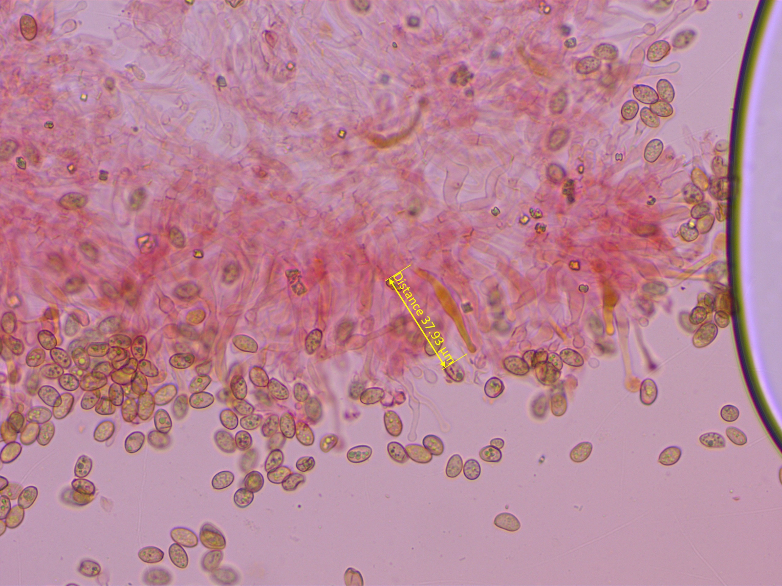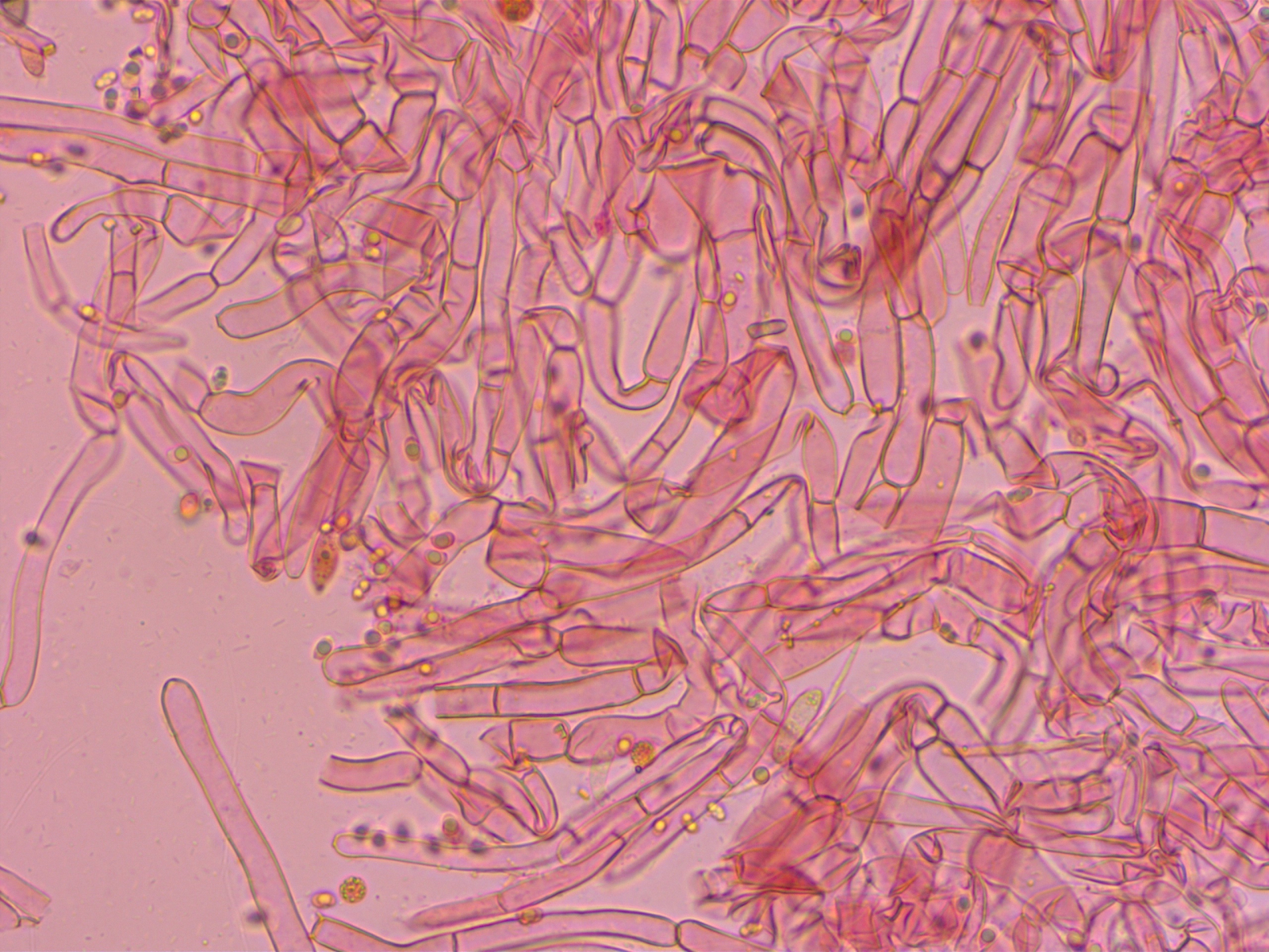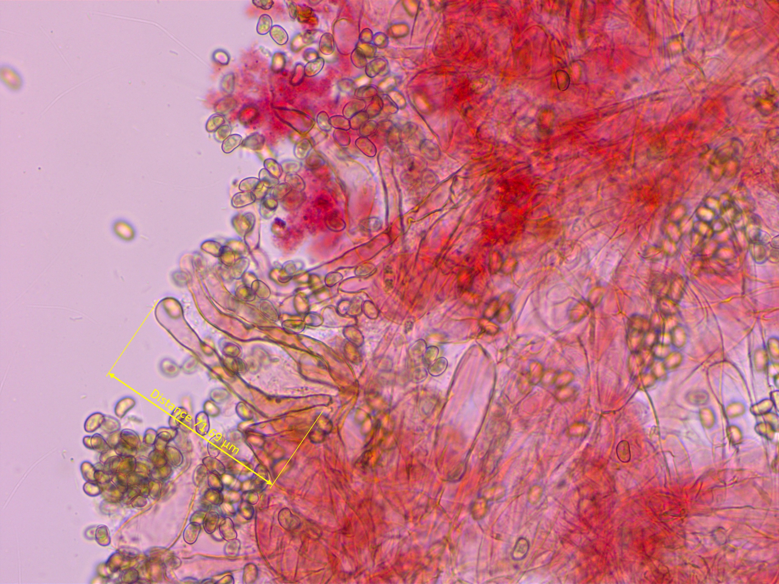 Ein kleiner Häubling im Moos. Neben der Zystidenform halfen mir die recht breiten, fast glatten, nicht dextrinoiden und leicht kollabierenden Sporen bei der Bestimmung.