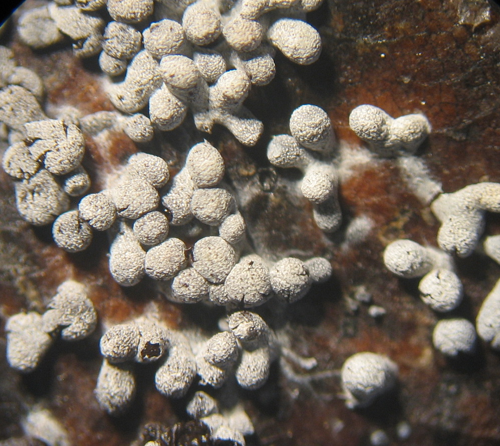 Mucilago crustacea ist sicher und leicht kenntlich.