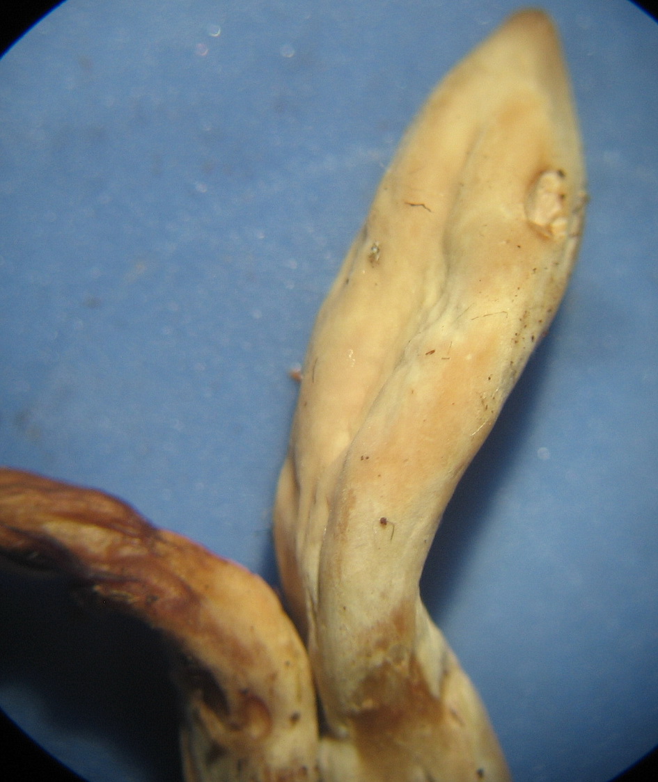 • Ich hab solche Basidien noch nie in/bei Clavaria-Clavulina-Ramaria-Ramariopsis oder Clavulinopsis/Clavulina gesehen - deshalb meine Vermutung. Die Basidienbasen sind bei Diesen ohne Schnallen bei den