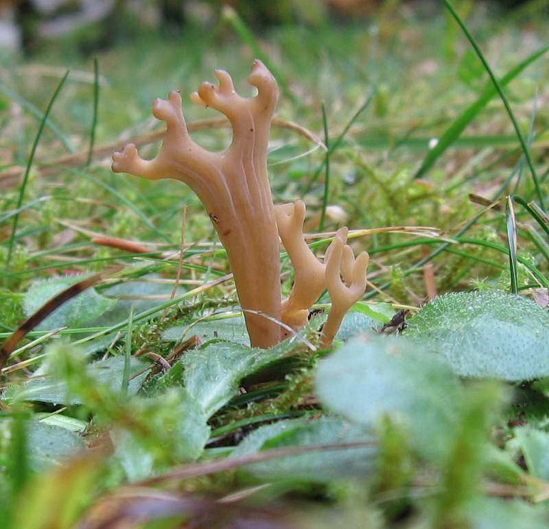 3 cm hoch, verzweigt hellbräunlich, 4-sporige Basidien, sehr kleine (ornamentierte ??) Sporen