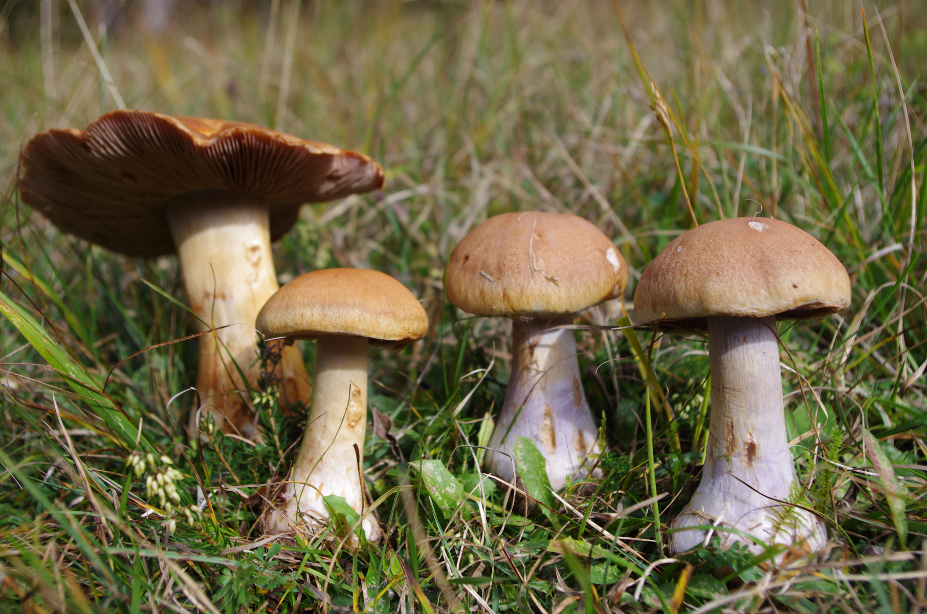 Jetzt zu einer aufregenden Entdeckung, vergaben in hohem Gras einer Magerwiese. Es war mir irgendwie klar, dass es sich um eine Art aus der Sektion Riederi handeln müsste. Ich hatte nur nicht damit gerechnet, dass es sich dabei auch um solche Oschis handeln kann. Aufgrund des Standortes auf Kalk und wahrscheinlich Fichte als Baumpartner und vor allem der Sporengröße und -form, bin ich mit Hilfe des Artikels in J.E.C. 2019 bei fulvoochrascens gelandet. Für mich das Highlight des Pilzjahres, weil die Schwammerln echt wunderschön und irgendwie sehr besonders daherkamen: