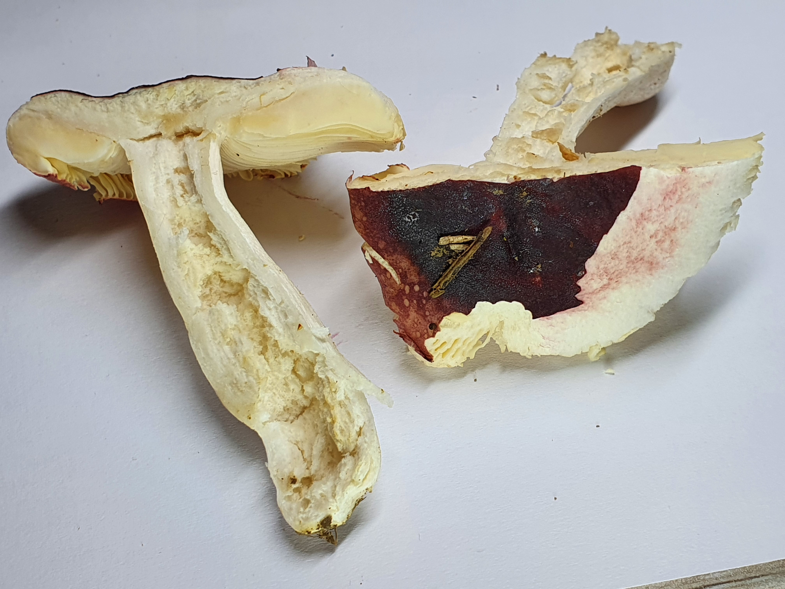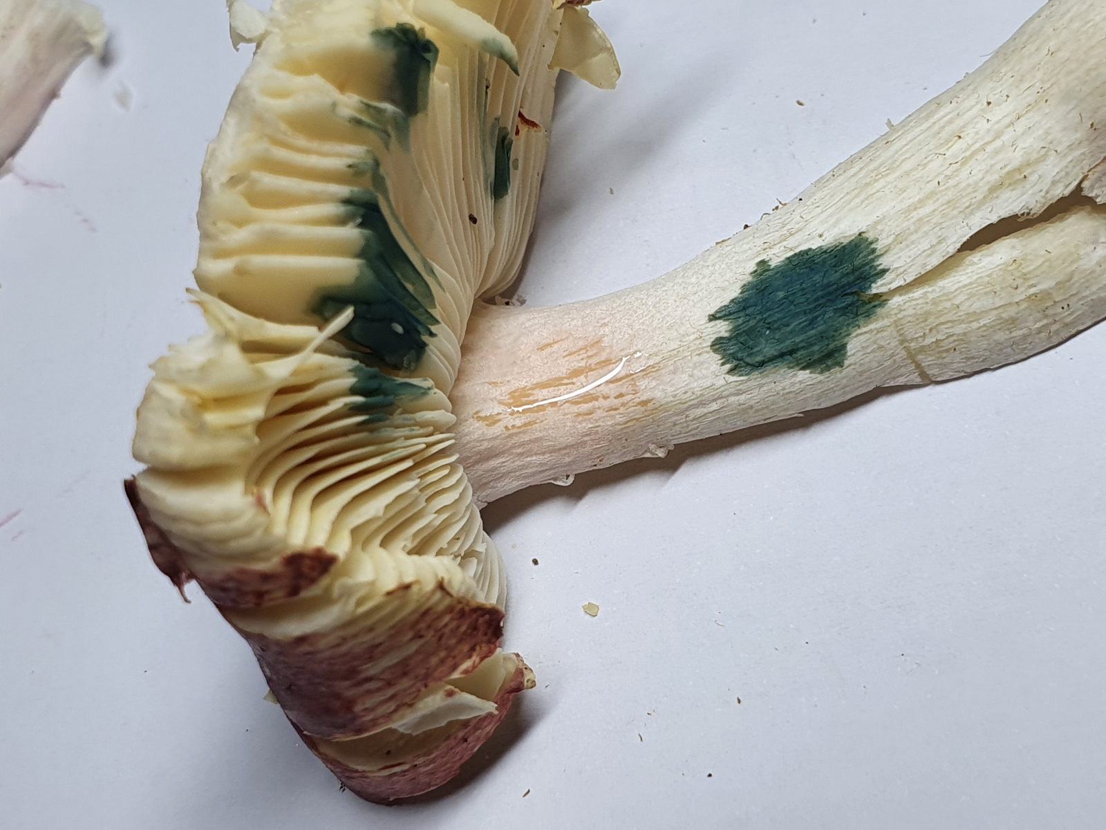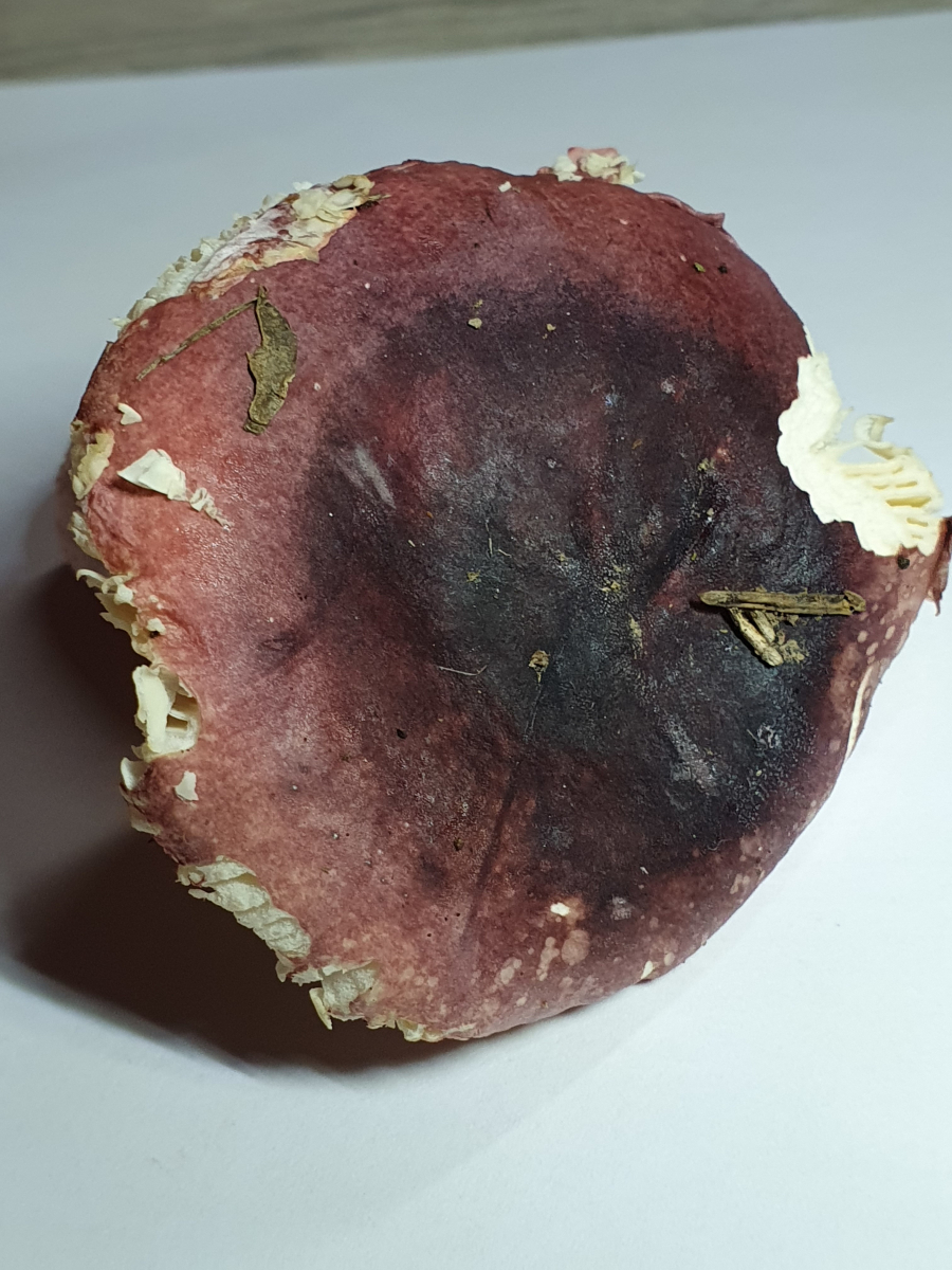Gestern dann doch auch nochmal eine Russula. Diese unter Fichte. Falls R. turci auch unter Fichte vorkommt (MXM erwähnt als Vorliebe nur die Kiefer im Textteil)? , gehe ich eigentlich eher von R. turci als von amethystina aus.