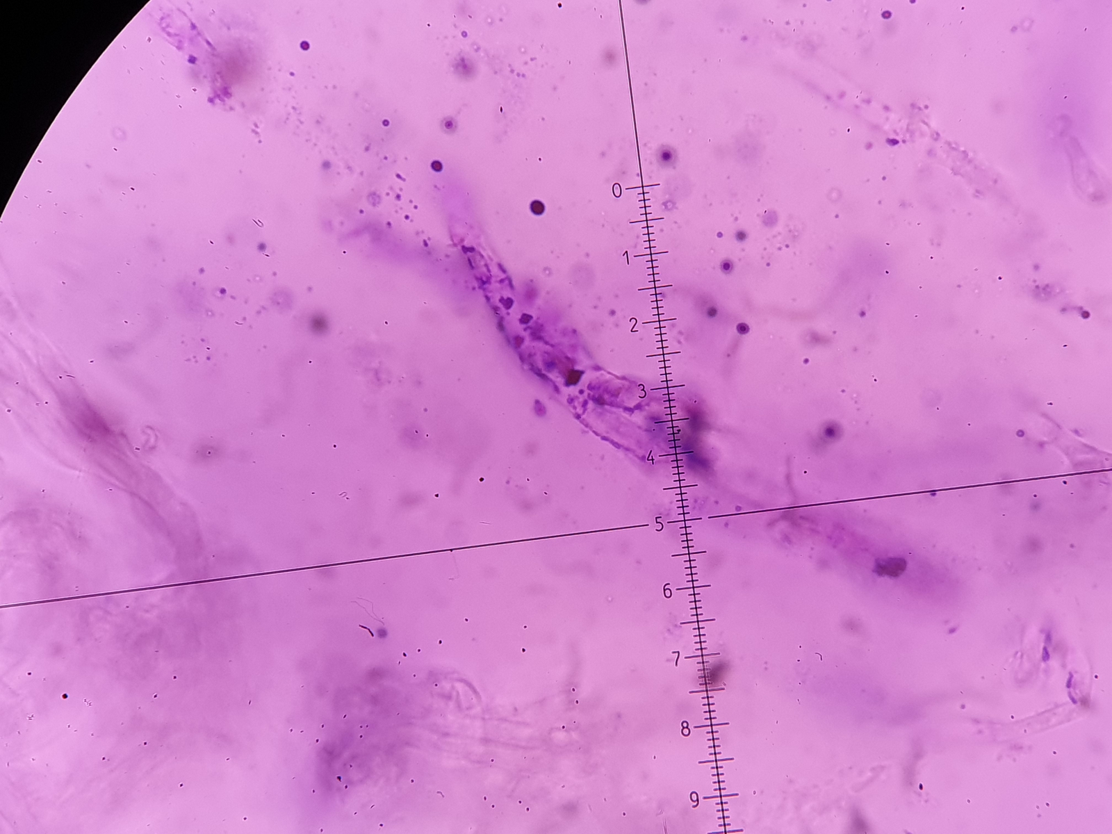 Deine SV Untersuchung würde ich nochmals wiederholen. Für mich ist das reine Kontamination, überhaupt, keinerlei Hyphen zu erahnen? Vielleicht dazu noch in der falschen Schärfeebene? Vorher mit KF hantiert? etc...